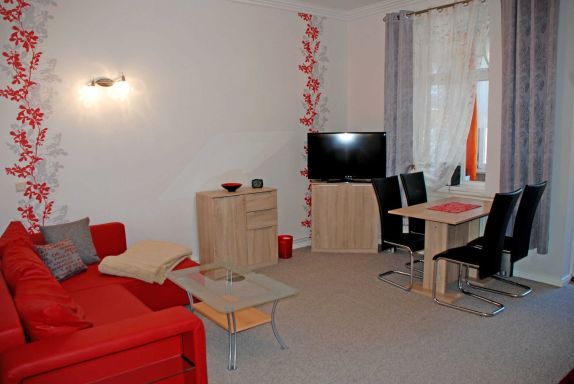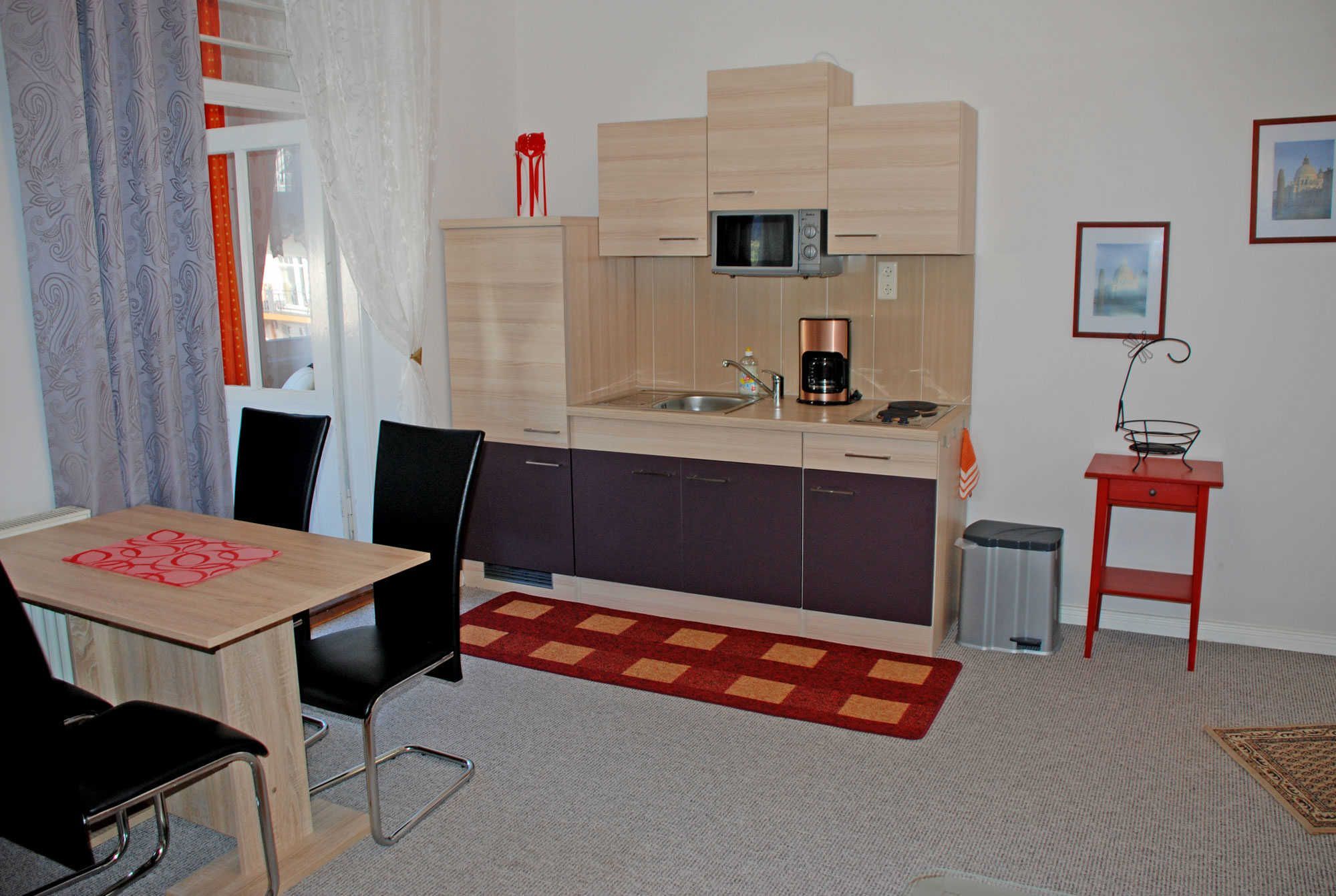 Unsere Ferienwohnung 02 (35 qm) befindet sich in der ersten Etage der Villa und verfügt über einen separaten Eingang. Die 2015 komplett neu eingerichtete Ferienwohnung bietet Platz für maximal 2 Erwachsene und 1 Kind bis 16 Jahre.