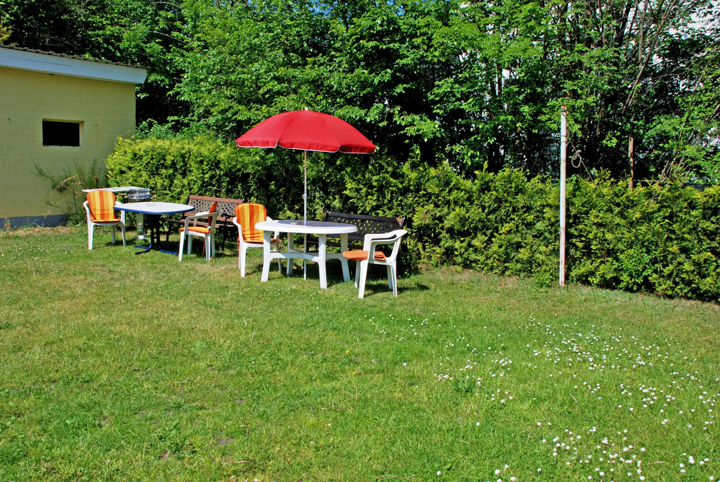 Hinter der Villa können Gäste dieser Ferienwohnung einen Platz mit Gartenmöbeln und Grillmöglichkeit mit nutzen.