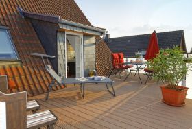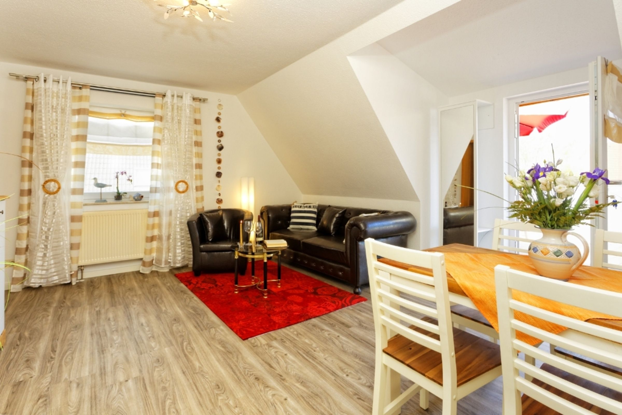 Die freundliche und helle Ferienwohnung befindet sich in einem Doppelhaus in der oberen Etage und verfügt über eine große Terrasse über die auch der Zugang erfolgt.