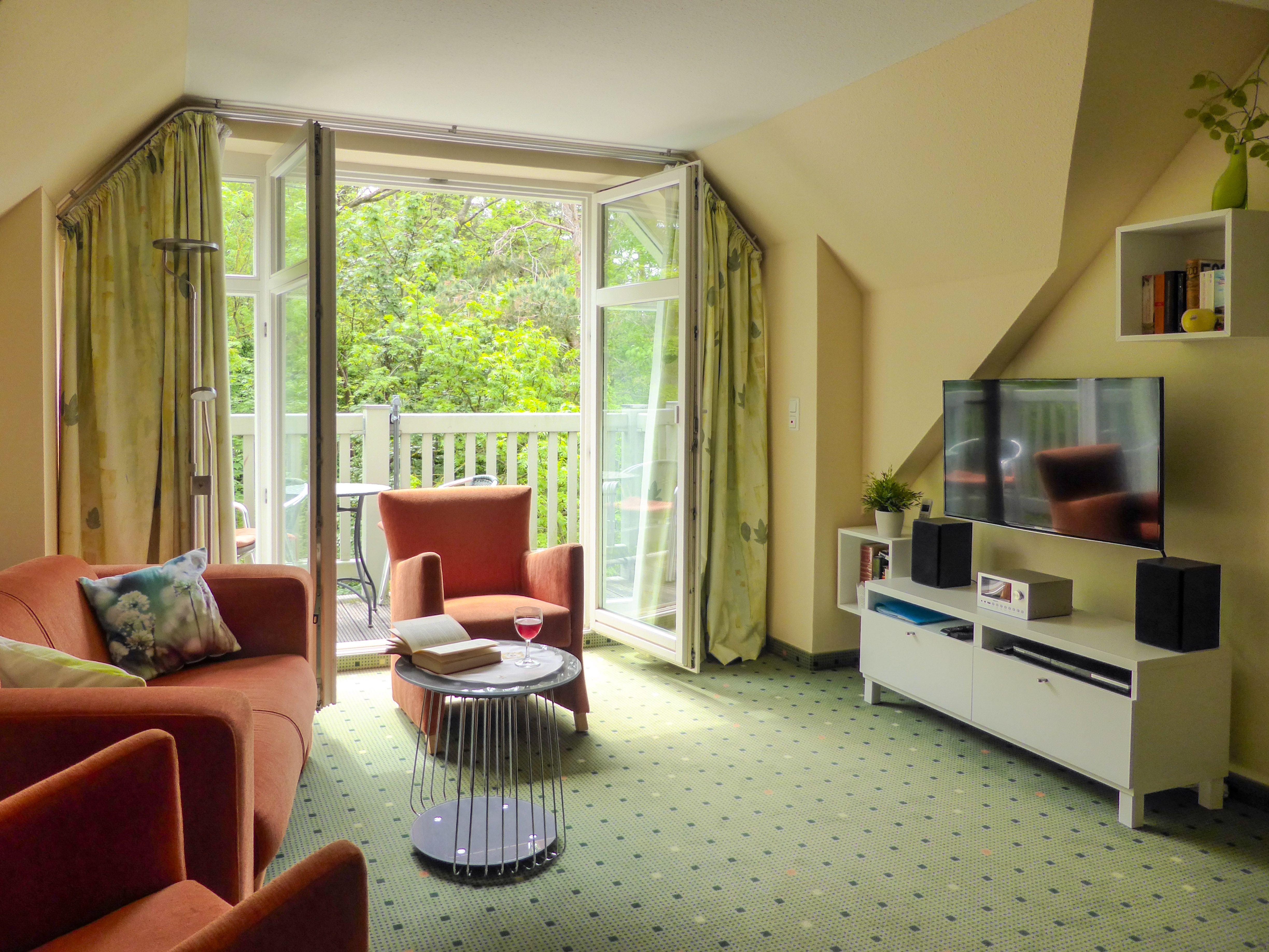 Die ideale Lage des -Apartment am Strand -, zum Strandzugang 15 sind es nur ca. 50 m und der ruhige Standort in der 4. Etage des Apartmenthauses Waldeck, auch Haus B des Hotels am Weststrand, bietet beste Voraussetzung für einen entspannten Wohlfühlurlaub. Der Südbalkon des Apartments B44 ermöglicht einen herrlichen Blick über den Stadtwald. Genießen Sie dort bereits das Frühstück oder entspannen Sie sich hier nach einem schönen Urlaubstag. In der Nähe finden Sie Restaurants, Einkaufsmöglichkeiten, Boutiquen, Friseur, Fahrradverleihe, den Konzertgarten-West, den Molli-Bahnhof und Souvenirshops.