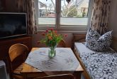 Vor dem Bungalow lädt eine Terrasse mit Sitzmöglichkeiten zum Durchatmen und Verweilen ein. Auf dem Grundstück befinden sich außerdem ein weiterer Bungalow sowie das Wohnhaus des Vermieters.