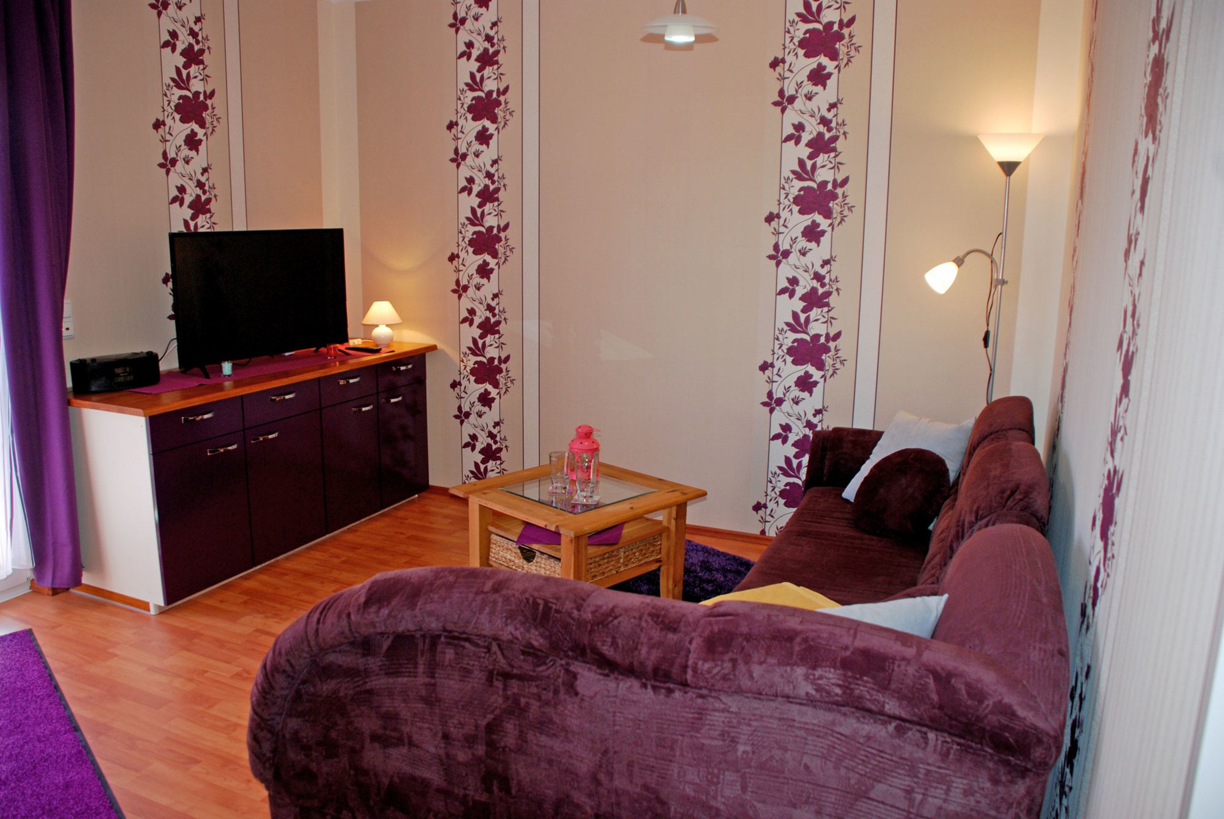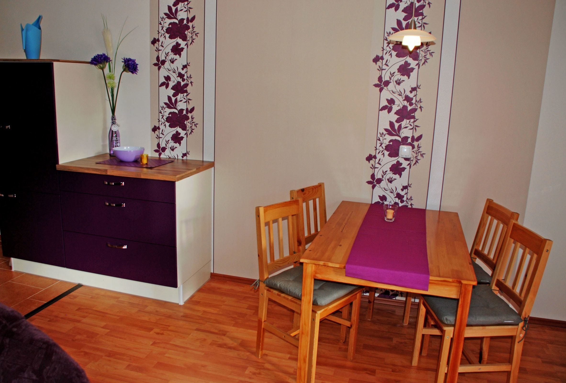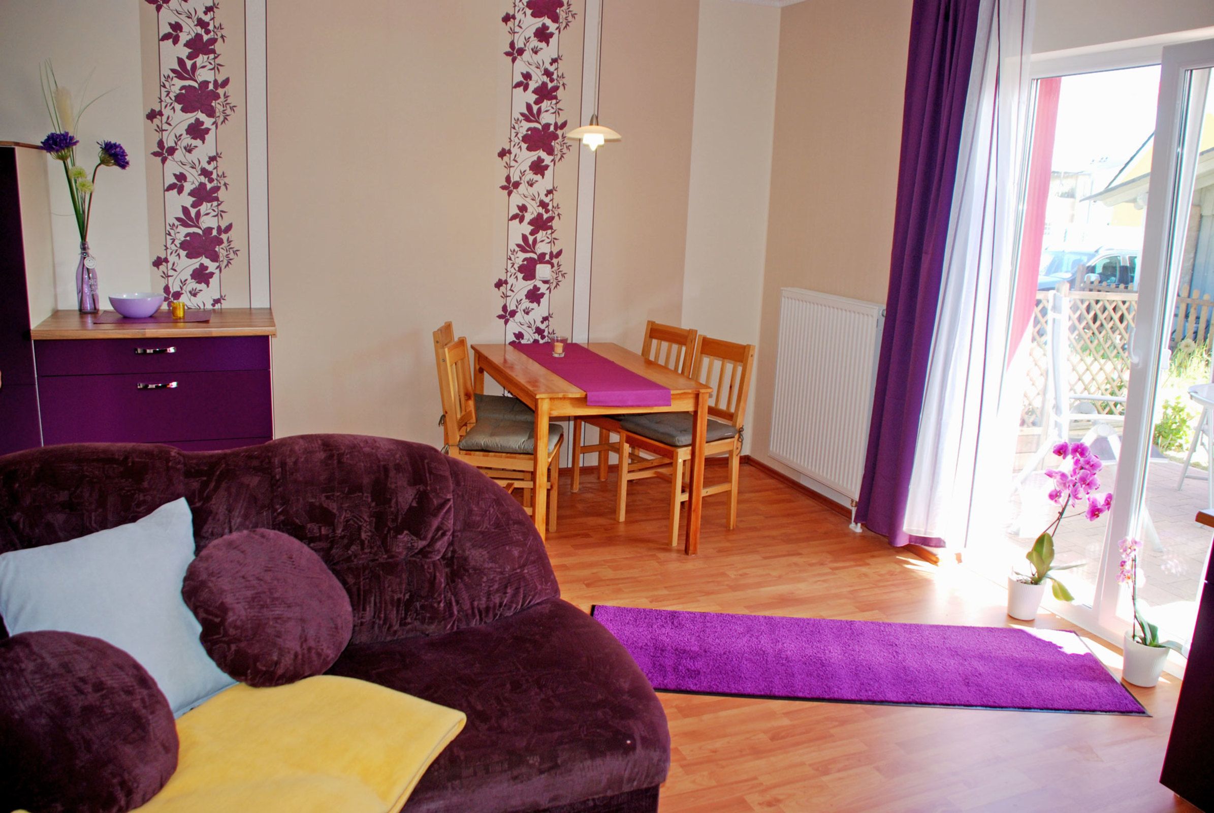 Unser modern und liebevoll eingerichtetes Ferienappartement ist ca. 50 qm groß und bietet Platz für maximal 4 Gäste und bietet kostenloses WLAN. Im Wohnraum, der sich im Erdgeschoss befindet, steht eine bequeme Sitzcouch mit Tisch, ein Schrank , Esstisch mit Stühlen und ein Flachbild-TV.