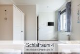 Das Obergeschoss bietet drei weitere Schlafräume, die ebenfalls Anfang 2023 renoviert wurden. Der eine Schlafraum ist ausgestattet mit zwei Einzelbetten und einem kleinen Fernseher, in den beiden anderen Räumen steht jeweils ein Doppelbett. In dem zweiten Bad im Dachgeschoss finden Sie sogar eine Badewanne.