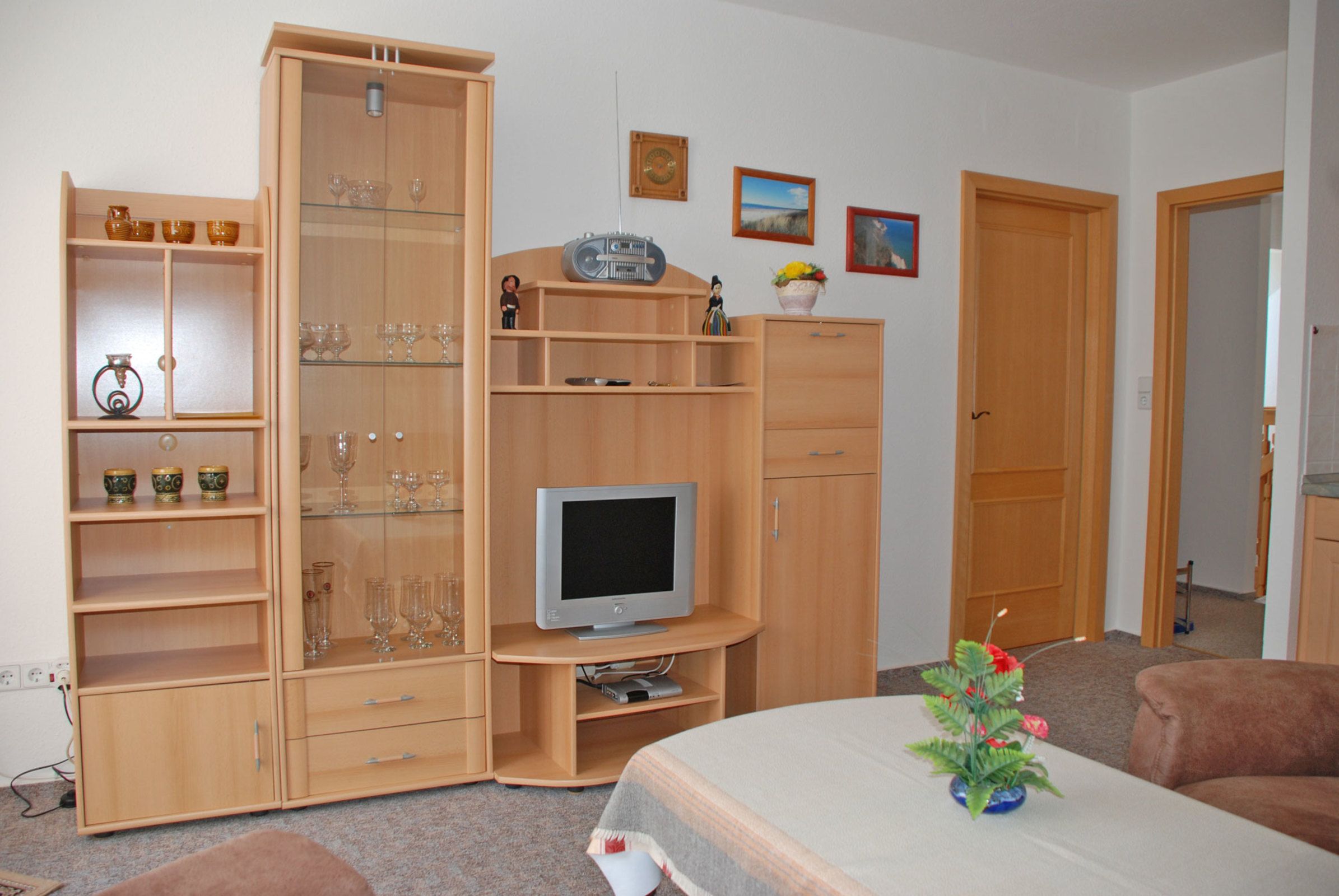 Im Wohnraum befinden sich eine bequeme Sitzcouch mit Tisch, Sesseln und ein modernes Flachbild-TV-Gerät und Radio. Die moderne Küchenzeile ist mit einem Cerankochfeld, Abzugshaube, Geschirrspüler, Wasserkocher, Kaffeemaschine, Toaster und Kühlschrank komplett ausgestattet. Auf dem Balkon mit Gartenmöbeln können Sie die Sonne genießen oder bei einem Gläschen Wein entspannen.