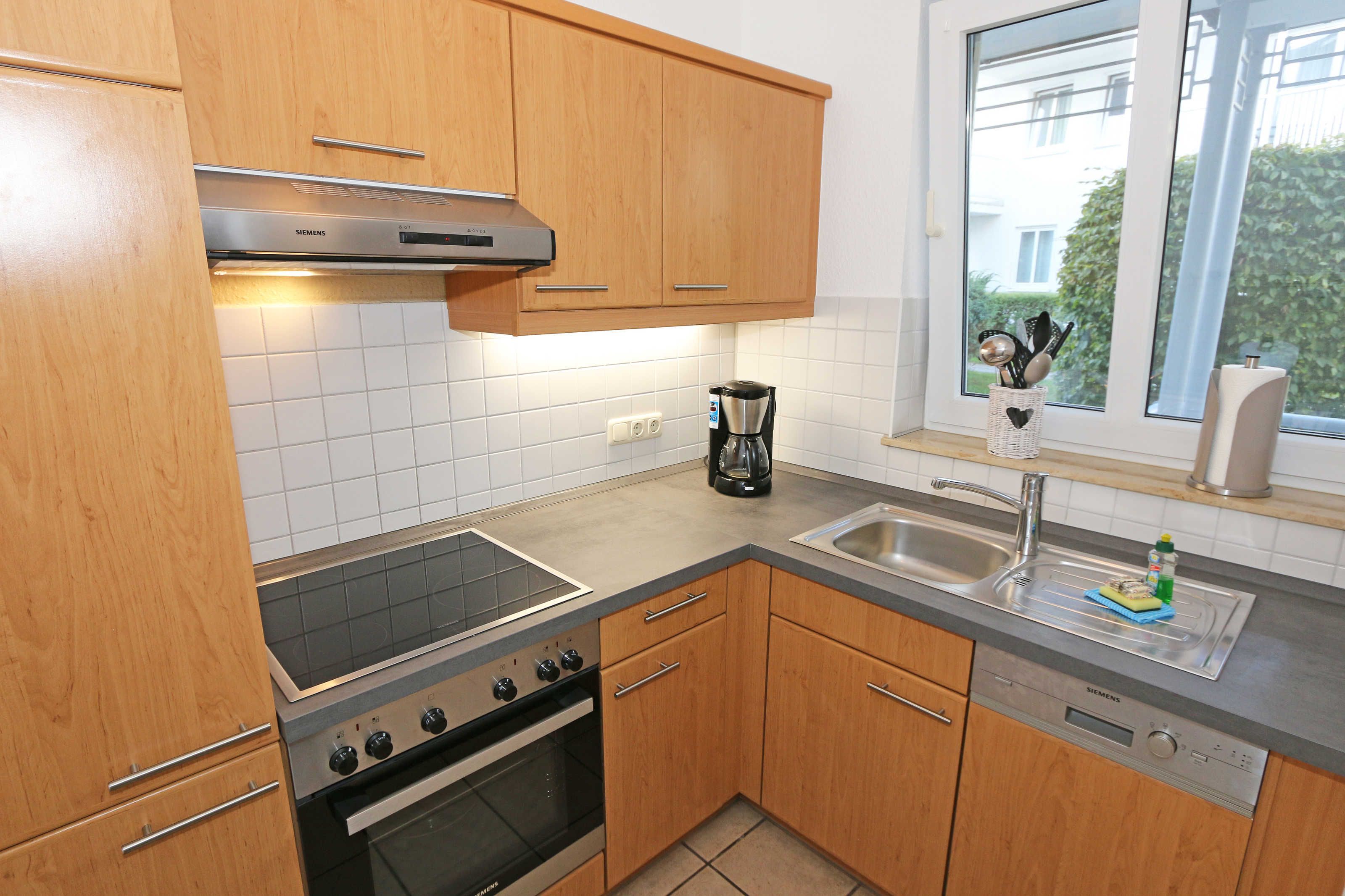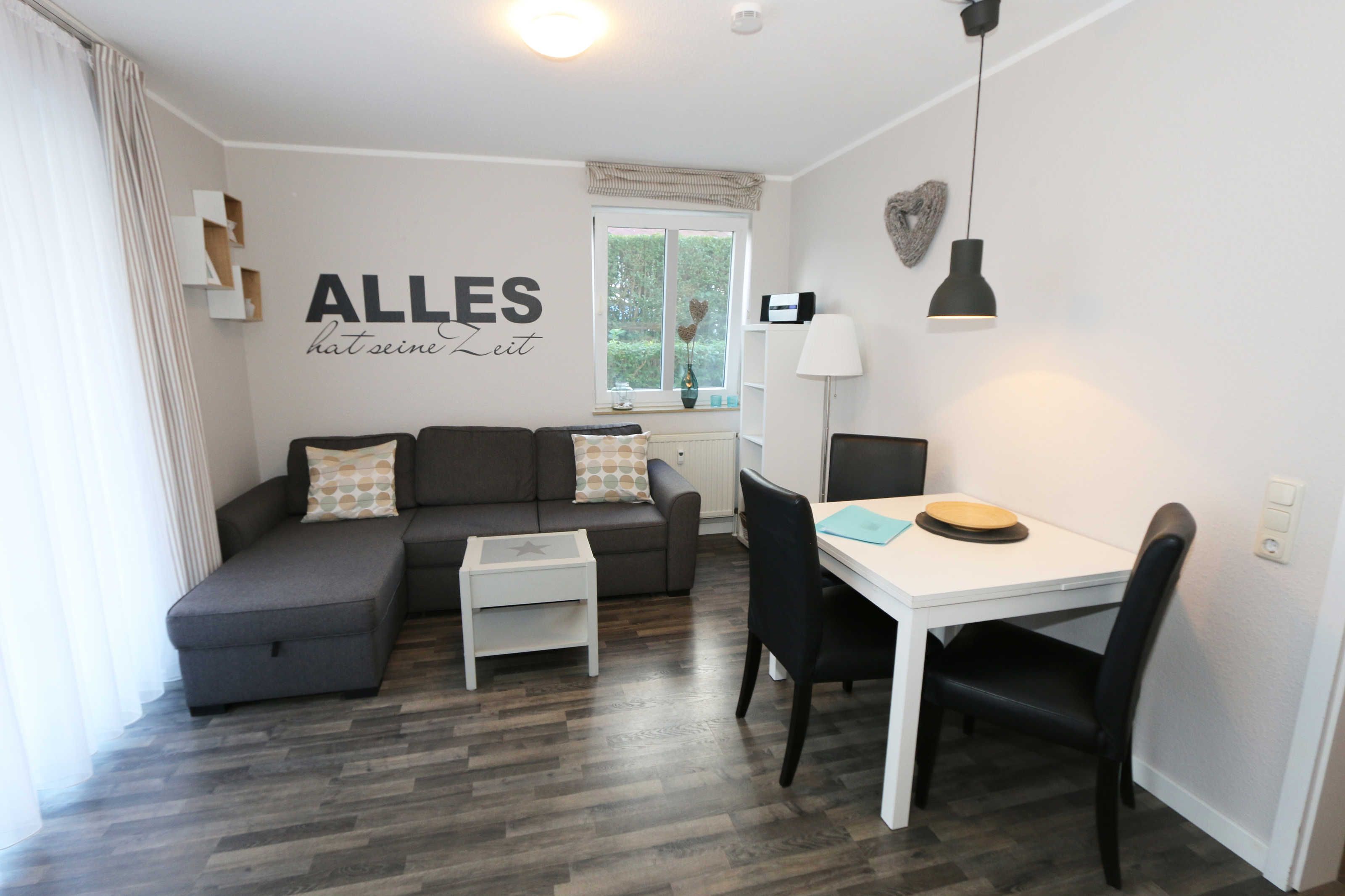 Die Nichtraucherferienwohnung mit 42 m² befindet sich im Erdgeschoss der Villa Buskam. Zu der Wohnung, die für 2 bis 4 Personen ausgelegt ist, gehört ein geräumiger und bestuhlter Südbalkon, auf dem Sie ab mittags die Sonne genießen können. Zu erreichen ist der Balkon über den Wohnbereich der Ferienwohnung. Im Wohnbereich gibt es eine gemütliche Eckcouch, die zu einem Doppelbett (1,40m x 2,00m), für die 3. und 4. Person umgebaut werden kann sowie ein Couchtisch und eine Leselampe ist ebenfalls vorhanden. Für Ihre Unterhaltung sorgt ein Smart-TV und eine Bluetooth Stereoanlage mit CD-Player (MP3-fähig mit USB-Anschluss) mit DAB-Radio und ein Blu-Ray- Player. Der Wohnraum wird durch einen Essplatz mit Tisch (ausziehbar) und 4 Stühlen komplettiert. Auch im Urlaub brauchen Sie auf einen WLAN-Zugang nicht zu verzichten, denn der ist für Sie inklusive vorhanden. Die separate Küche ist mit einer Küchenzeile mit Cerankochfeld, Dunstabzugshaube, Backofen, Geschirrspüler, Kühlschrank mit Eisfach, Kaffeemaschine, Wasserkocher, Toaster und diversen Küchenutensilien ausgestattet. Das Schlafzimmer ist mit einem Boxspringbett (1,60m x 2,00m) und Nachttischkonsolen ausgestattet. Ein Kleiderschrank befindet sich im Eingangsbereich der Wohnung. Das geflieste Badezimmer ist ausgestattet mit einer ebenerdigen Dusche, Waschplatz, WC, Handtuchheizkörper, Kosmetikspiegel und Fön. Alle Räume sind mit Heizkörpern versehen. Im Wohnbereich und Küche wurde die Fenster mit Insektenschutz versehen. Haustiere sind nicht erlaubt. Die Wohnung verfügt über einen eigenen abschließbaren Fahrradkeller im Haus wo Sie auch gegen Gebühr eine Waschmaschine und Trockner nutzen können. Ein immer verfügbarer Parkplatz ist für Sie in der Schulstrasse Nr. 12 reserviert und ist in knapp 3 Minuten leicht zu Fuß erreichbar. Die Erstausstattung eines Wäschepaketes (komplette Bettwäsche, 1 Duschhandtuch, 2 kleine Handtücher, 2 Geschirrhandtücher) können Sie bis 14 Tage vor Anreise gegen einen Aufpreis dazu buchen oder durch eigene ergänzen.