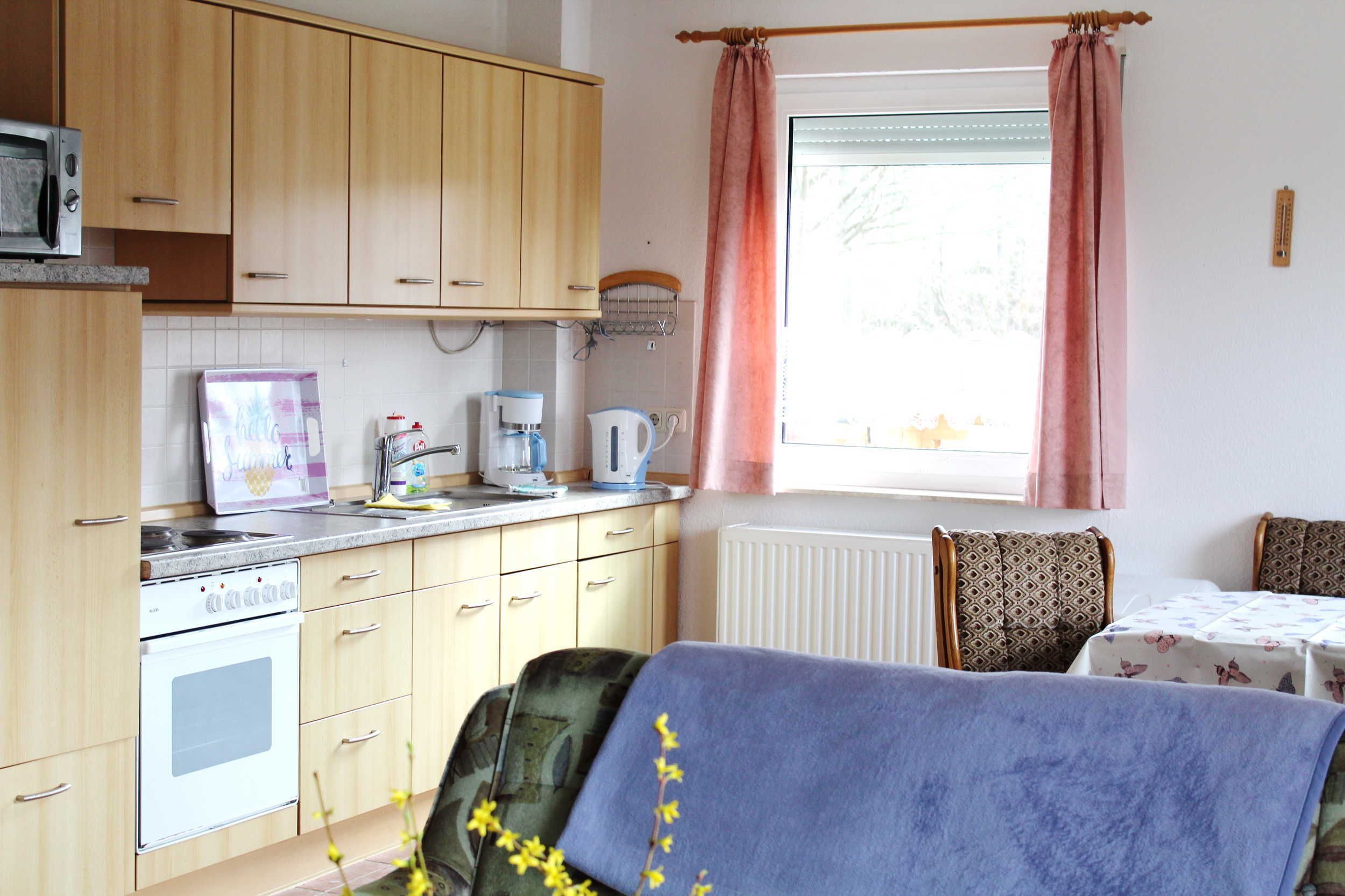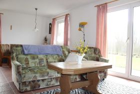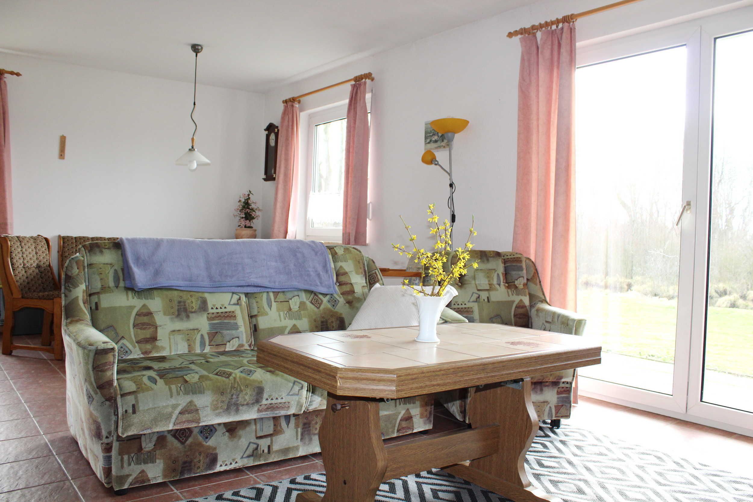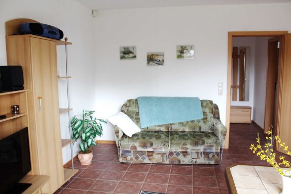 Die Ferienwohnung befindet sich im Haus 3 in der unteren Etage auf der linken Seite. Sie ist 70 m² groß und besteht aus einem Wohnzimmer mit Kamin und integrierter kompletter Küchenzeile und Essplatz, einem Schlafzimmer mit Doppelbett und Etagenbett, einem Bad mit Badewanne/WC und einer Terrasse. Ein PKW-Stellplatz steht Ihnen am Haus zur Verfügung.