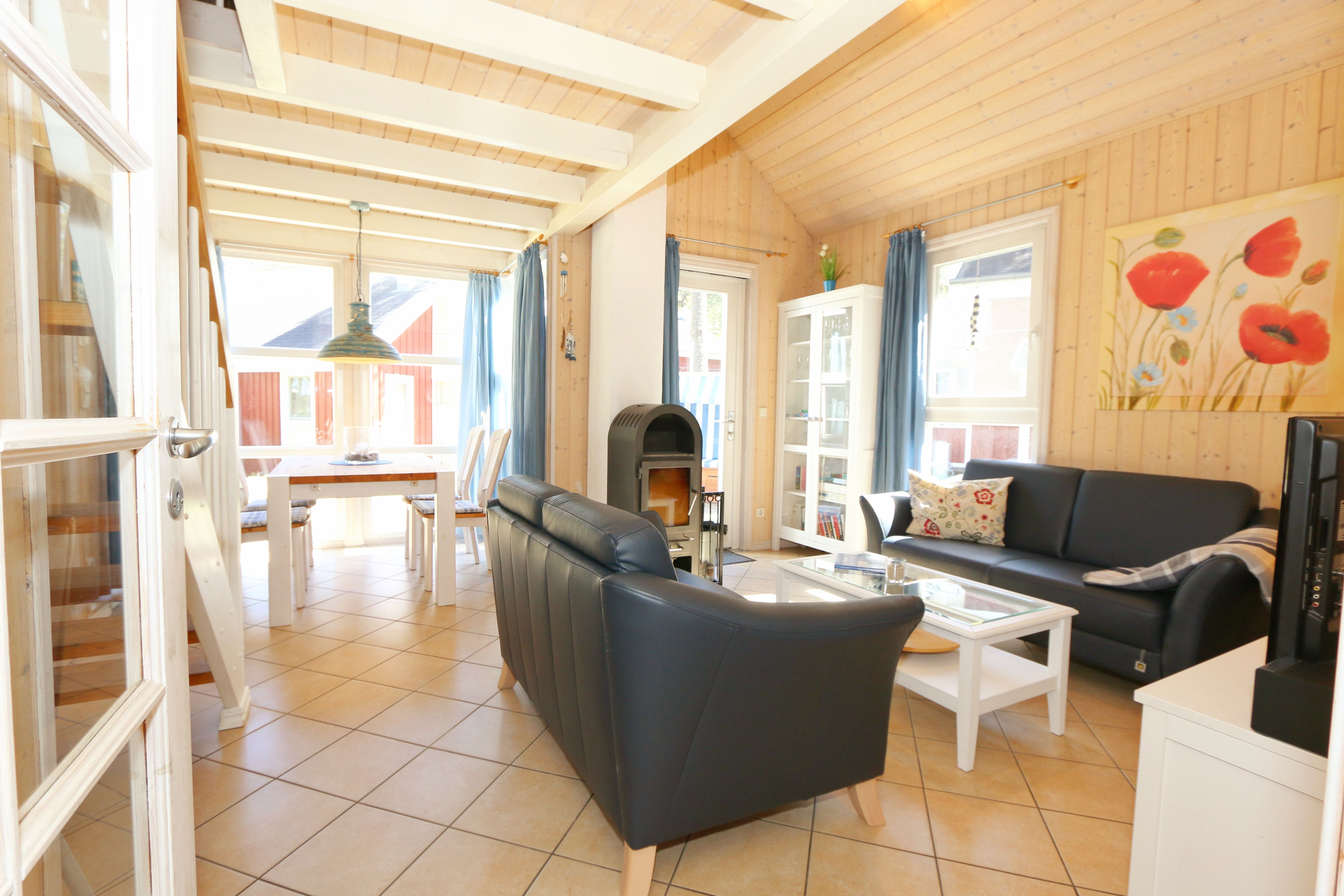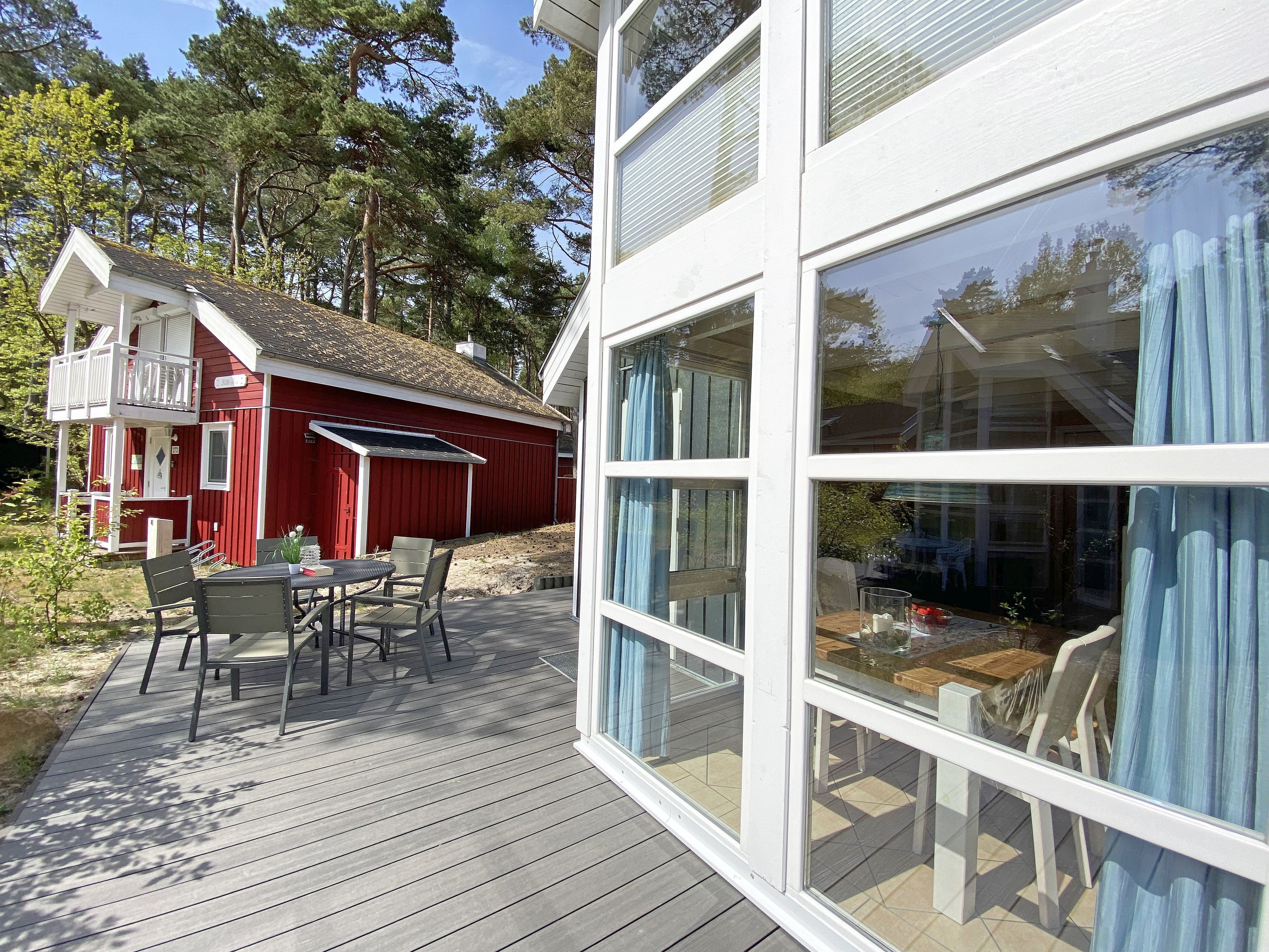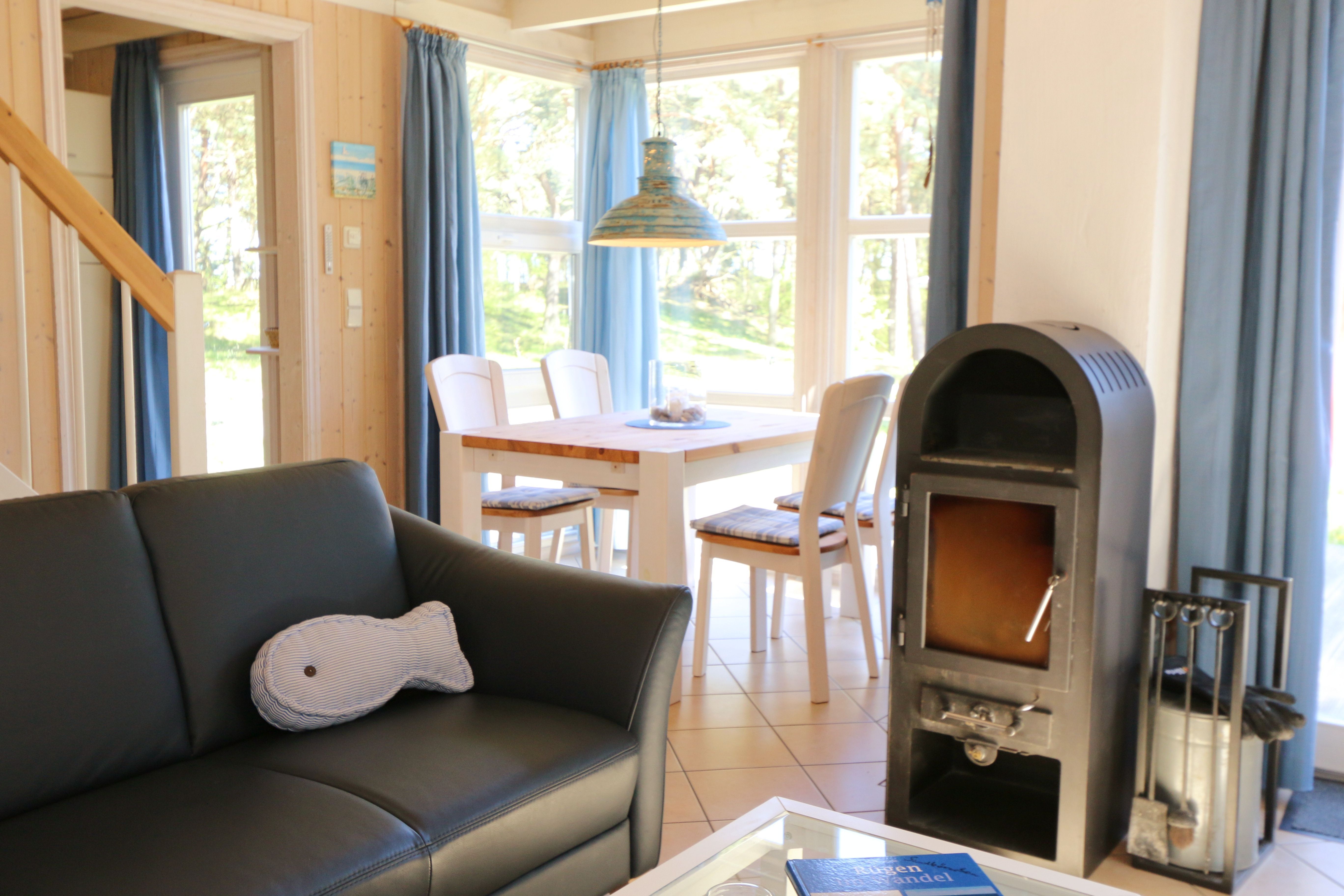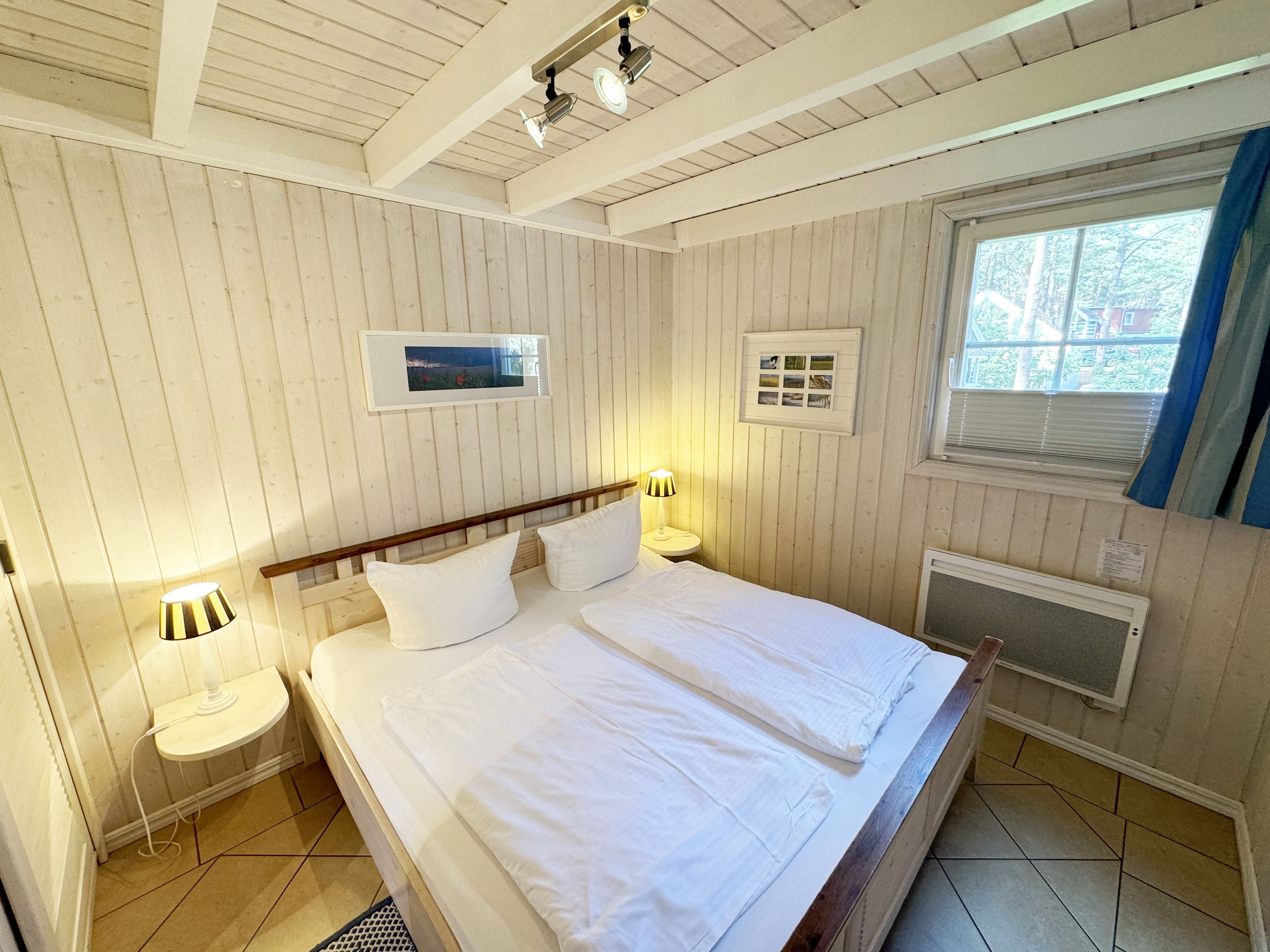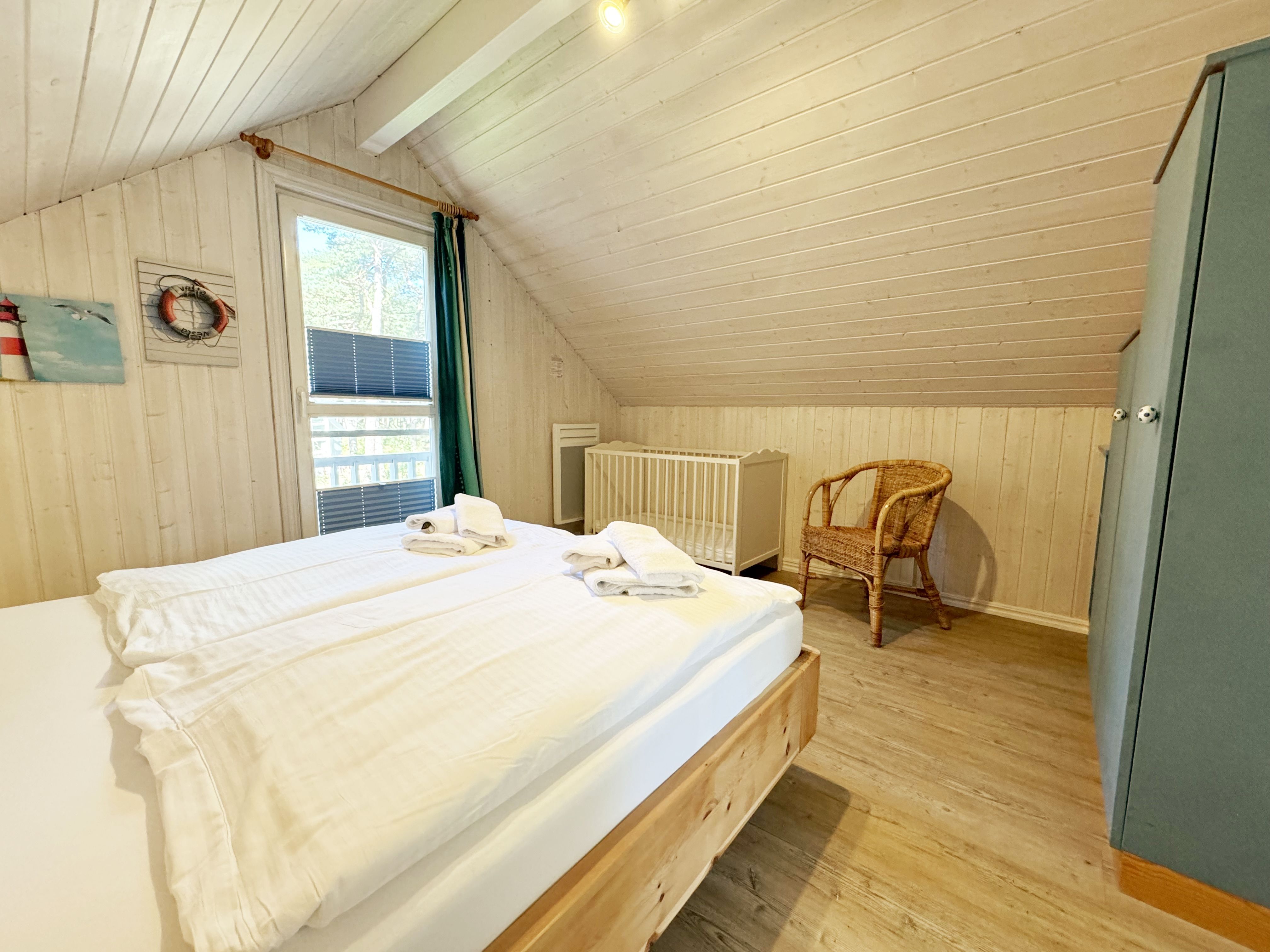 Das haustierfreie Nichtraucherferienhaus „Sandkörnchen“ bietet ausreichend Platz für 4 Erwachsene und 1 Kleinkind bis 3 Jahre im Kinderbett. Das 80 qm große Holzhaus in typisch skandinavischem Stil ist sehr liebevoll ausgestattet und bietet eine hochwertige Einrichtung auf zwei Etagen. Es erwartet Sie im Erdgeschoss ein großer Wohn- und Essbereich mit Kaminofen und Smart-TV, Blu Ray-Player sowie ein DAB-Radio-CD-Player. Auch auf einen Internetanschluss über WLAN brauchen Sie im Urlaub nicht verzichten. Dieser ist für Sie inklusive. Zwei gemütliche Ledercouchen mit Couchtisch und einem Sideboard garantieren entspannende Abende. Insektenschutzgitter befinden sich im Erdgeschoss sowie der Terrassentür. Der lichtdurchflutete stilvolle Essbereich mit Vollholzmöbeln bietet Ihnen ausreichend Platz für 4 Personen. Die moderne Einbauküche ist ausgestattet mit allem was man für das alltägliche Leben braucht. Deshalb gehören ein Kühlschrank mit Gefrierfach, ein Backofen mit Ceranfeld und Dunstabzug, eine Mikrowelle, eine Spülmaschine, ein nickelfreier Wasserkocher, eine Kaffeemaschine, eine Senseo Padmaschine, ein Toaster, ein Mixer, Teekannen, reichlich Geschirr und Gläser sowie selbstverständlich alle weiteren Utensilien zum Kochen und Essen zum Inventar. Ebenfalls Teil des Erdgeschosses ist ein Schlafzimmer mit einem Doppelbett (1,80 m x 2,00 m) mit hochwertigen Kaltschaummatratzen und verstellbaren Lattenrosten, einem Nachtschrank und einer Nachttischablage sowie einem dreitürigen Kleiderschrank mit Spiegel. Insektenschutzgitter und Verdunklungsplissees sorgen hier für einen ruhigen, erholsamen Schlaf. Das großzügige Bad mit Dusche, Whirlpool, Sauna, Waschmaschine, Handtuchtrockner, Fön und großem Waschtisch wird Sie begeistern. Sie erreichen es vom Flur aus, welcher mit Schuhschrank, Garderobe und Spiegel möbliert ist. Im Wohnbereich sowie im Bad sorgt die Fußbodenheizung für angenehme Wärme. In der 1. Etage befindet sich eine helle Galerie mit großer Fensterfront und gemütlicher Sitzecke, kleinem Tisch und Leselampe mit Blick zum Meer und in den Kiefernwald. Das zweite Schlafzimmer, gemütlich unter Dachschrägen, ist von hier aus erreichbar. Es ist mit einem Massivholzbett (1,60 m x 2,00 m), verstellbare Lattenroste, 2 Nachttischablagen, einem stabilen Kinderbett sowie einem Kleiderschrank ausgestattet. Das Fenster ist auch hier mit einem Verdunklungsplissees und Insektenschutzgitter versehen. Für unsere kleinen Gäste stehen 1x Hochstuhl und 1x stabiles Kinderbett (ohne Bettinlett) inklusive zur Verfügung. Haustiere sind im Haus nicht erlaubt. Auf der großzügigen bestuhlten Holzterrasse (Südost/West) haben ein Strandkorb (Mai-September), Sonnenliegen und ein Sonnenschirm zusätzlich ihren Platz gefunden. Eine angenehme Wärme wird durch Infrarotheizkörper ausgestrahlt. Für Ihre Räder befindet sich am Haus ein Fahrradständer. Im Anbauschuppen können Sie diverse Strandutensilien unterbringen. Ein PKW-Stellplatz (Nr. 271) befindet sich direkt vor dem Haus. Ab einem Aufenthalt von 7 Nächten, ist ein Sack Kaminholz in der Zeit vom 01.Oktober bis 30. April für Sie inklusive. Die Erstausstattung eines Wäschepaketes (komplette Bettwäsche, 1 Duschhandtuch, 2 kleine Handtücher) können Sie bis 14 Tage vor Anreise gegen einen Aufpreis dazu buchen oder durch eigene ergänzen. Ab 2 gebuchten Paketen erhalten Sie einmalig 1 Geschirrhandtuch und 1 Duschvorleger hinzu.