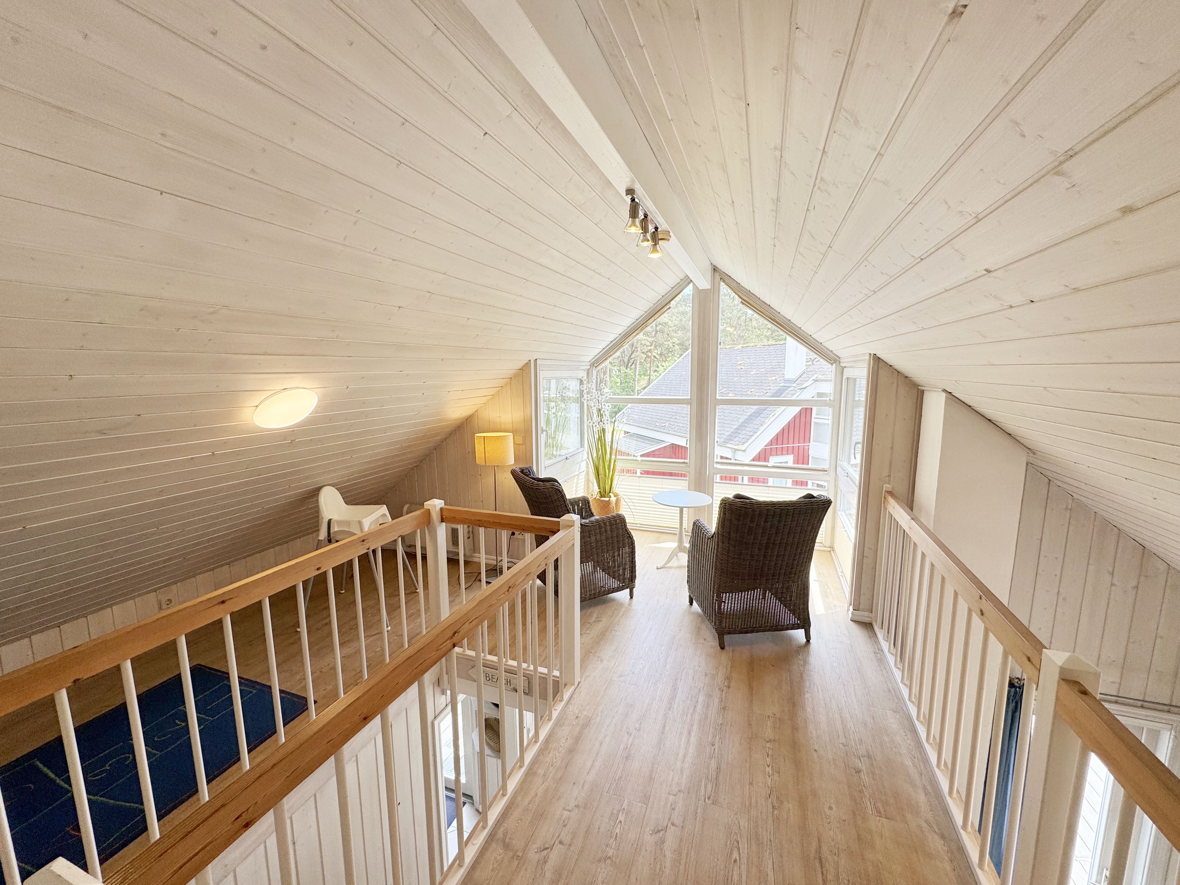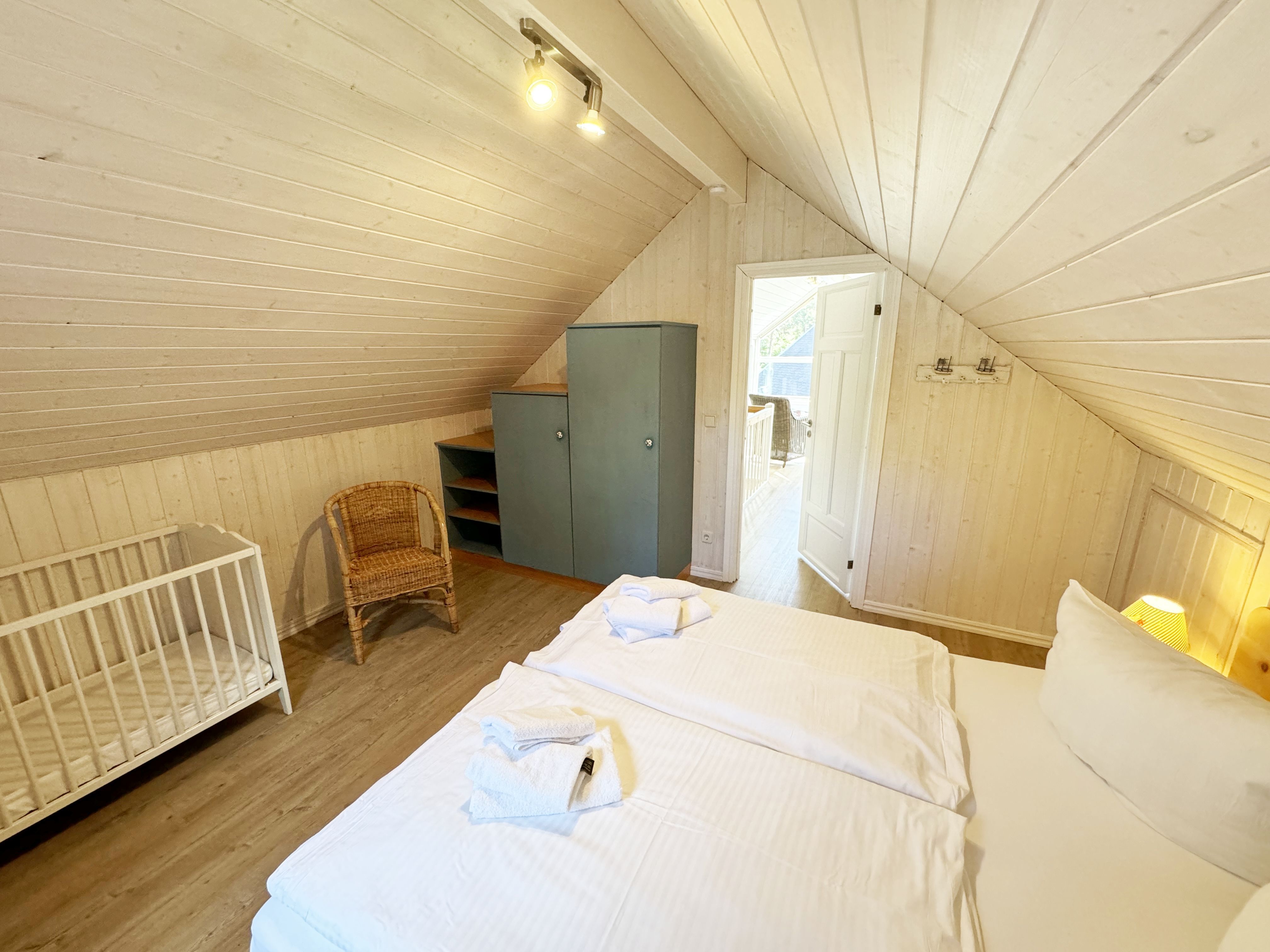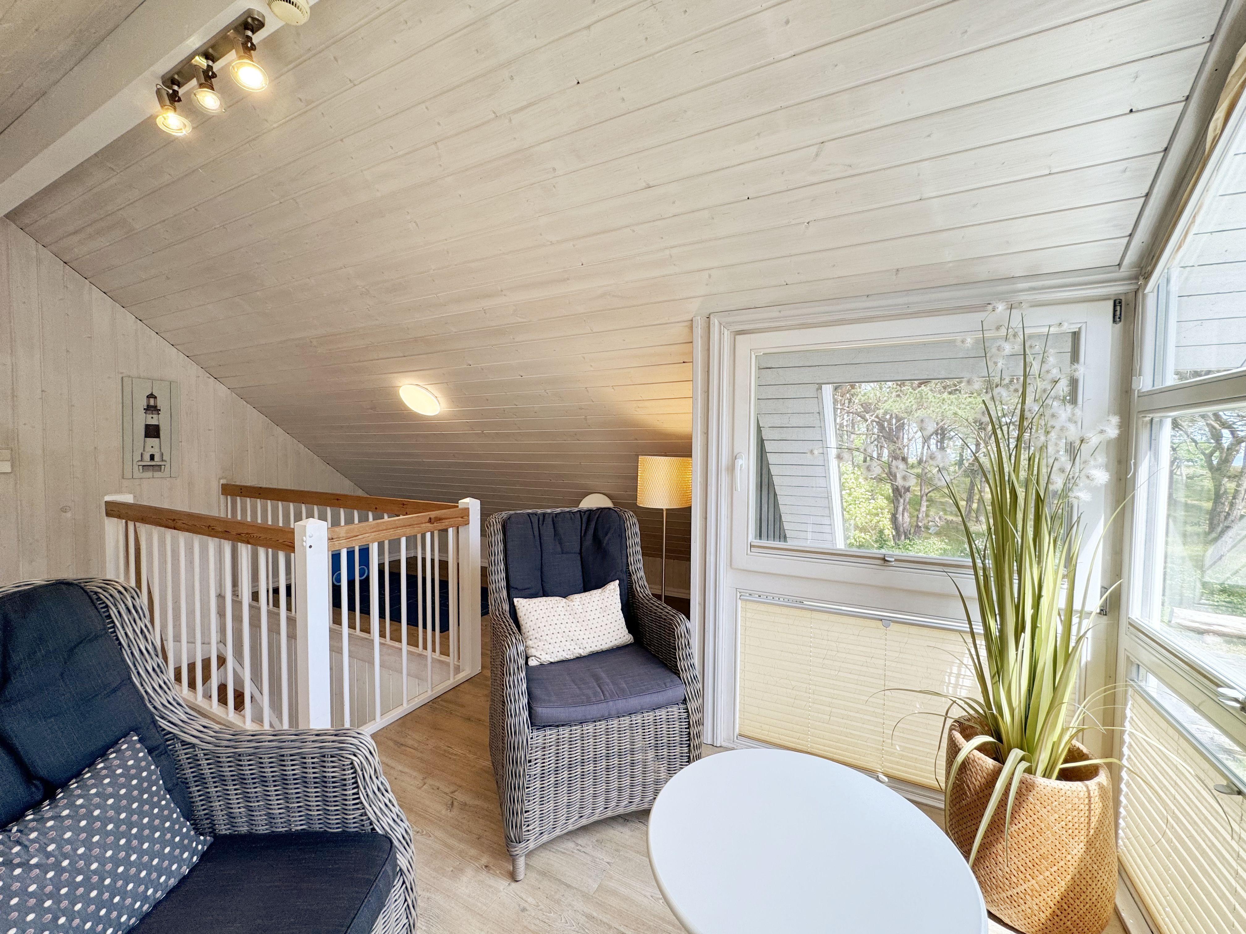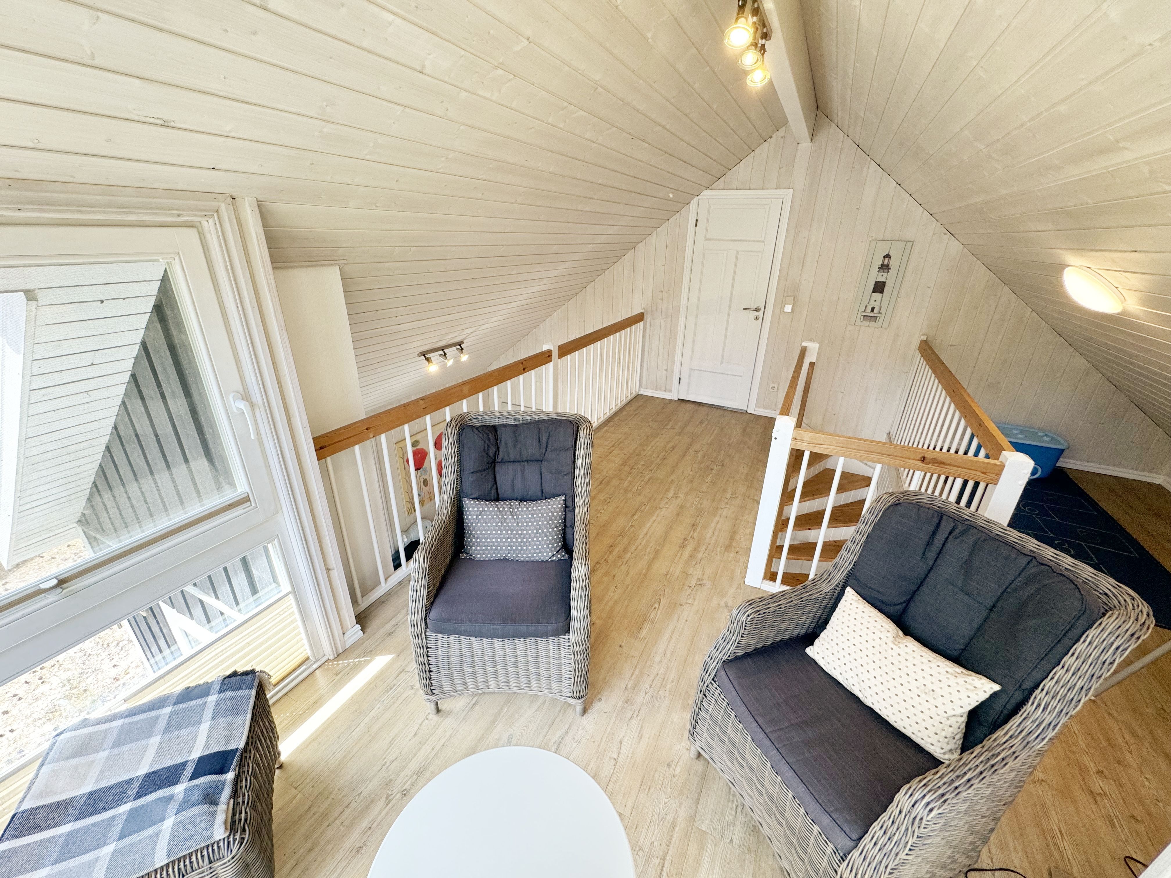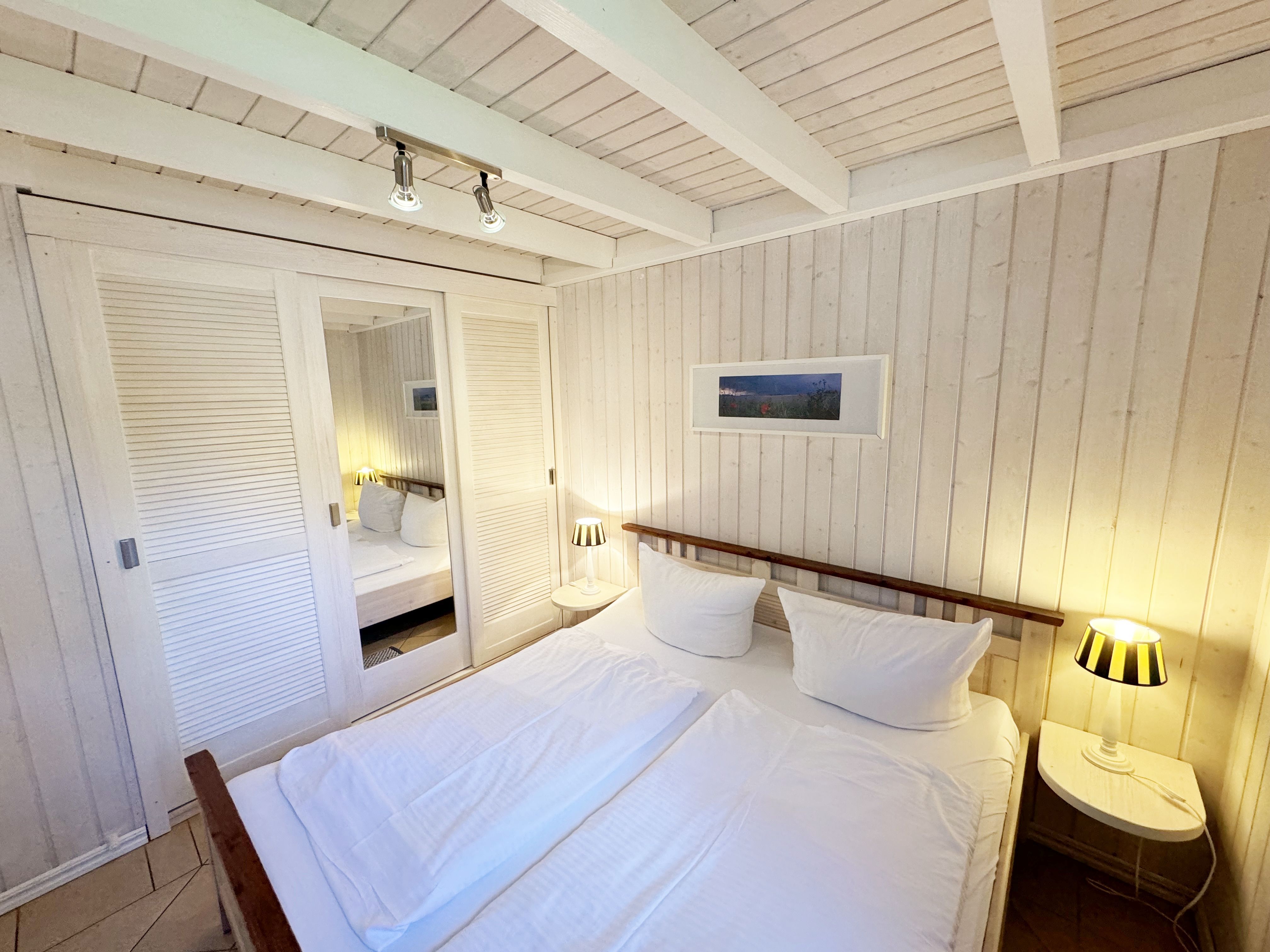 Das haustierfreie Nichtraucherferienhaus „Sandkörnchen“ bietet ausreichend Platz für 4 Erwachsene und 1 Kleinkind bis 3 Jahre im Kinderbett. Das 80 qm große Holzhaus in typisch skandinavischem Stil ist sehr liebevoll ausgestattet und bietet eine hochwertige Einrichtung auf zwei Etagen. Es erwartet Sie im Erdgeschoss ein großer Wohn- und Essbereich mit Kaminofen und Smart-TV, Blu Ray-Player sowie ein DAB-Radio-CD-Player. Auch auf einen Internetanschluss über WLAN brauchen Sie im Urlaub nicht verzichten. Dieser ist für Sie inklusive. Zwei gemütliche Ledercouchen mit Couchtisch und einem Sideboard garantieren entspannende Abende. Insektenschutzgitter befinden sich im Erdgeschoss sowie der Terrassentür. Der lichtdurchflutete stilvolle Essbereich mit Vollholzmöbeln bietet Ihnen ausreichend Platz für 4 Personen. Die moderne Einbauküche ist ausgestattet mit allem was man für das alltägliche Leben braucht. Deshalb gehören ein Kühlschrank mit Gefrierfach, ein Backofen mit Ceranfeld und Dunstabzug, eine Mikrowelle, eine Spülmaschine, ein nickelfreier Wasserkocher, eine Kaffeemaschine, eine Senseo Padmaschine, ein Toaster, ein Mixer, Teekannen, reichlich Geschirr und Gläser sowie selbstverständlich alle weiteren Utensilien zum Kochen und Essen zum Inventar. Ebenfalls Teil des Erdgeschosses ist ein Schlafzimmer mit einem Doppelbett (1,80 m x 2,00 m) mit hochwertigen Kaltschaummatratzen und verstellbaren Lattenrosten, einem Nachtschrank und einer Nachttischablage sowie einem dreitürigen Kleiderschrank mit Spiegel. Insektenschutzgitter und Verdunklungsplissees sorgen hier für einen ruhigen, erholsamen Schlaf. Das großzügige Bad mit Dusche, Whirlpool, Sauna, Waschmaschine, Handtuchtrockner, Fön und großem Waschtisch wird Sie begeistern. Sie erreichen es vom Flur aus, welcher mit Schuhschrank, Garderobe und Spiegel möbliert ist. Im Wohnbereich sowie im Bad sorgt die Fußbodenheizung für angenehme Wärme. In der 1. Etage befindet sich eine helle Galerie mit großer Fensterfront und gemütlicher Sitzecke, kleinem Tisch und Leselampe mit Blick zum Meer und in den Kiefernwald. Das zweite Schlafzimmer, gemütlich unter Dachschrägen, ist von hier aus erreichbar. Es ist mit einem Massivholzbett (1,60 m x 2,00 m), verstellbare Lattenroste, 2 Nachttischablagen, einem stabilen Kinderbett sowie einem Kleiderschrank ausgestattet. Das Fenster ist auch hier mit einem Verdunklungsplissees und Insektenschutzgitter versehen. Für unsere kleinen Gäste stehen 1x Hochstuhl und 1x stabiles Kinderbett (ohne Bettinlett) inklusive zur Verfügung. Haustiere sind im Haus nicht erlaubt. Auf der großzügigen bestuhlten Holzterrasse (Südost/West) haben ein Strandkorb (Mai-September), Sonnenliegen und ein Sonnenschirm zusätzlich ihren Platz gefunden. Eine angenehme Wärme wird durch Infrarotheizkörper ausgestrahlt. Für Ihre Räder befindet sich am Haus ein Fahrradständer. Im Anbauschuppen können Sie diverse Strandutensilien unterbringen. Ein PKW-Stellplatz (Nr. 271) befindet sich direkt vor dem Haus. Ab einem Aufenthalt von 7 Nächten, ist ein Sack Kaminholz in der Zeit vom 01.Oktober bis 30. April für Sie inklusive. Die Erstausstattung eines Wäschepaketes (komplette Bettwäsche, 1 Duschhandtuch, 2 kleine Handtücher) können Sie bis 14 Tage vor Anreise gegen einen Aufpreis dazu buchen oder durch eigene ergänzen. Ab 2 gebuchten Paketen erhalten Sie einmalig 1 Geschirrhandtuch und 1 Duschvorleger hinzu.