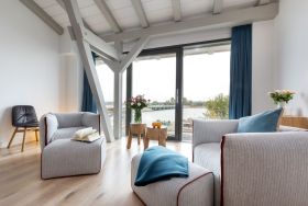 Die Alte Scheune am Focker Strom zieht auf Ummanz die Gäste bereits vom ersten Moment an in ihren Bann. Dafür sorgt der einzigartige Blick auf das Wasser, das zum Greifen nah ist und den Urlaubern ein bisher nicht gekanntes Urlaubserlebnis beschert.