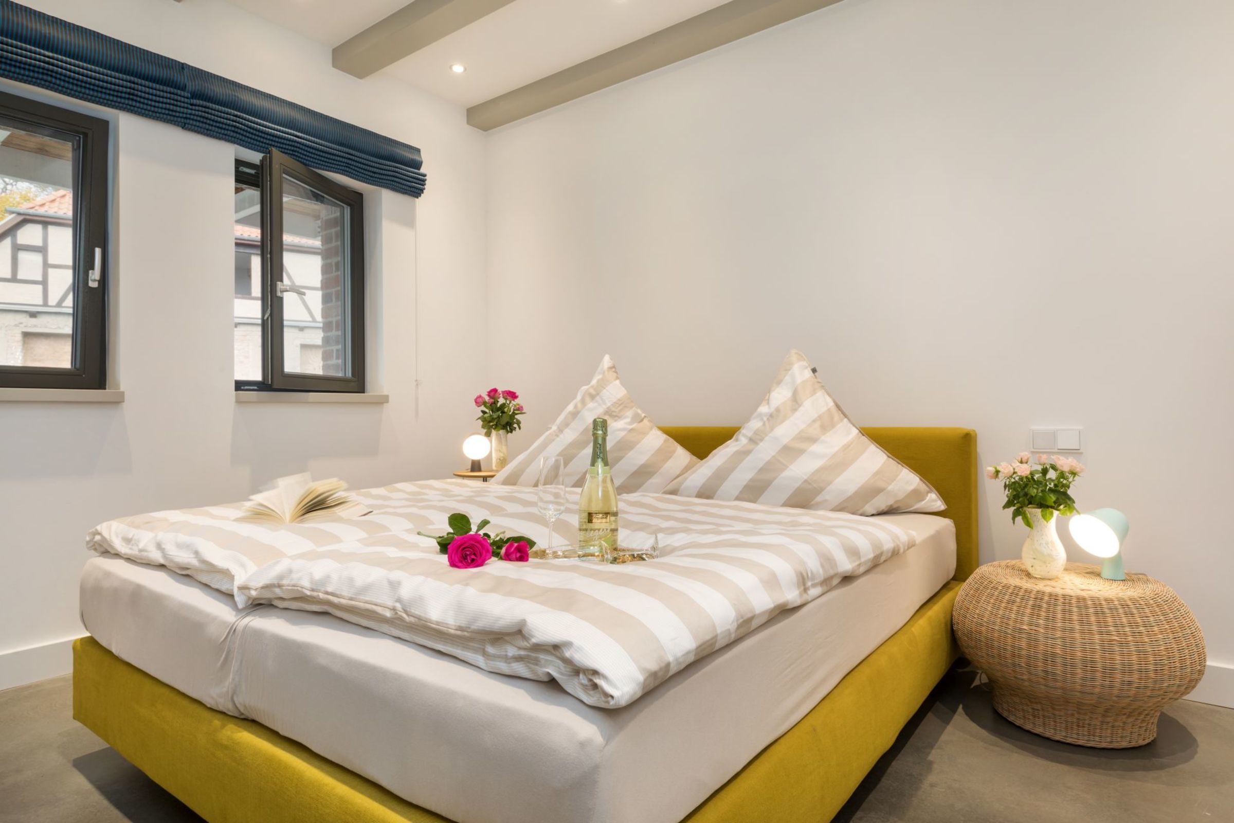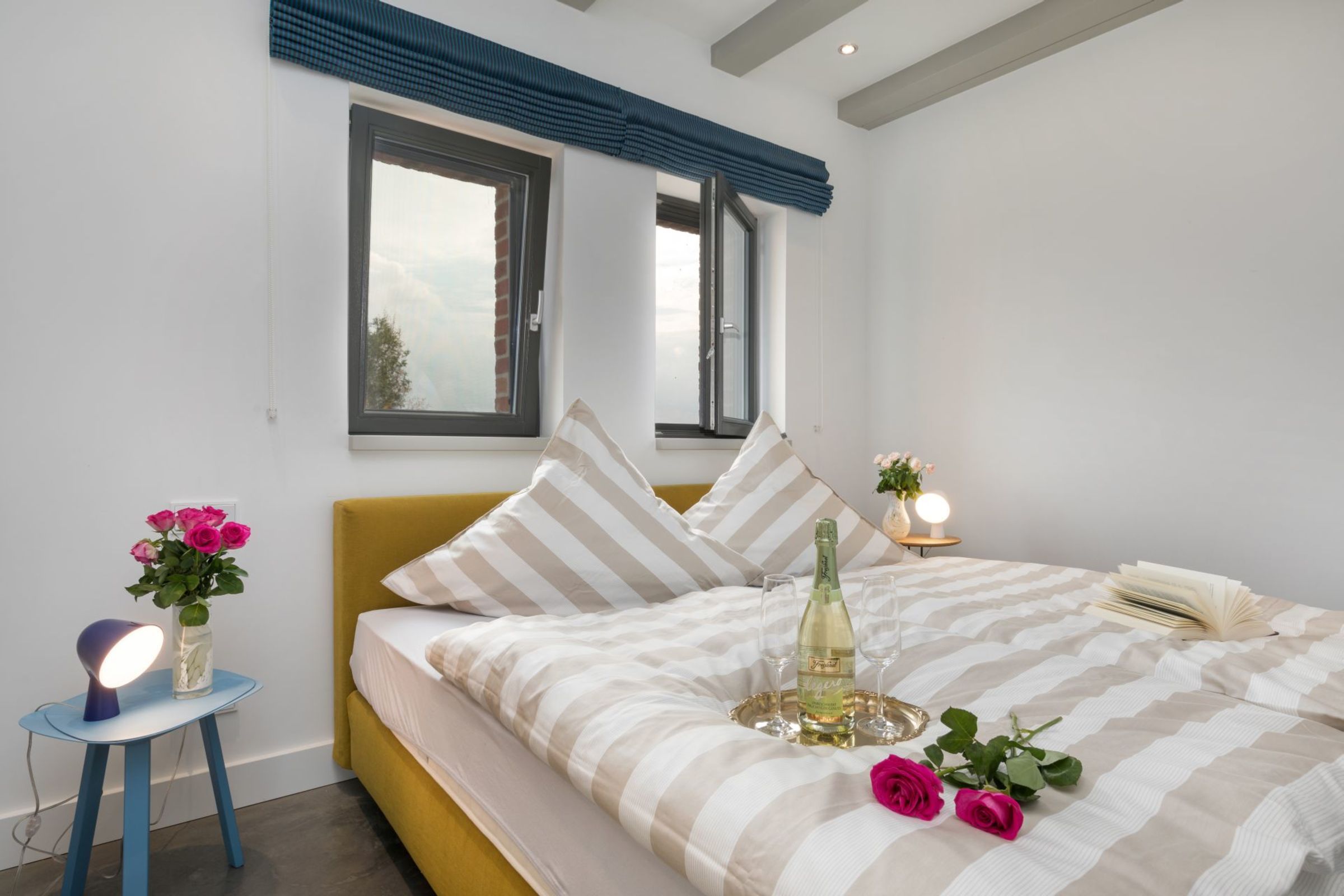 Vor allem aber hat die Aussicht vom Wohnzimmer aus ihren Reiz, denn dort kann man seinen Blick über den Ausläufer der Ostsee schweifen lassen. Der Balkon auf der Westseite lädt darüber hinaus dazu ein, die Sonnenstrahlen ganz entspannt zu genießen.