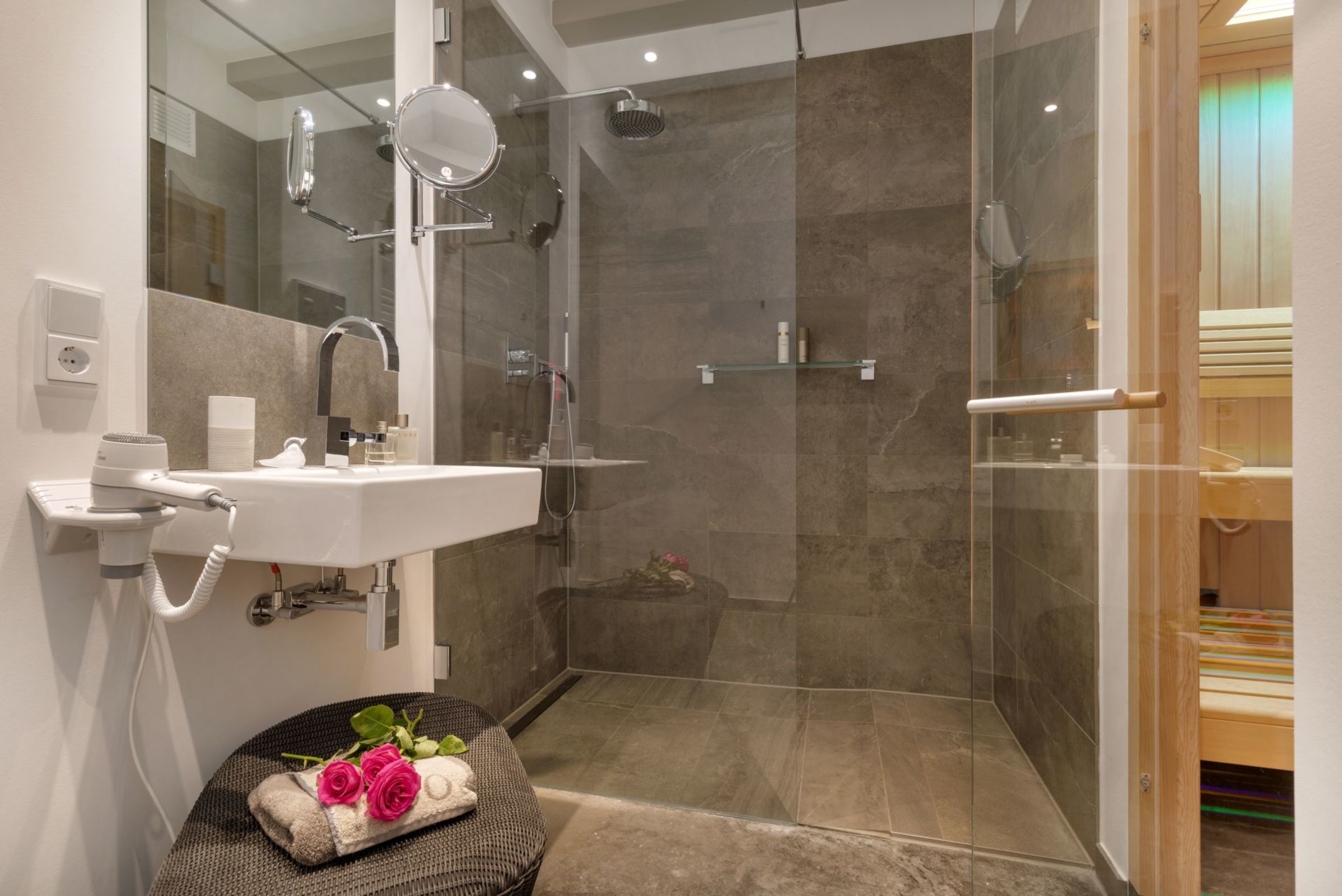 2 Bäder mit schwellenlosem Duscheinstieg und Rainshower-Kopfbrause, Sauna,