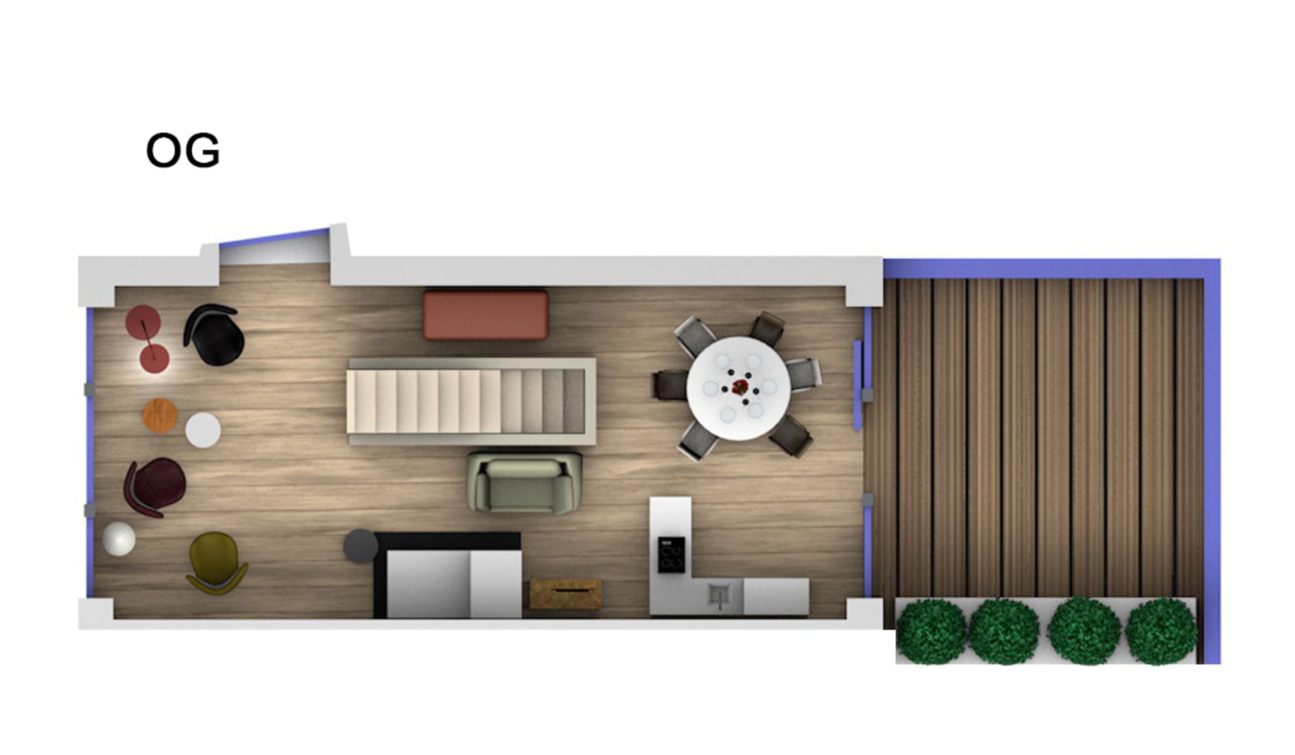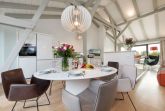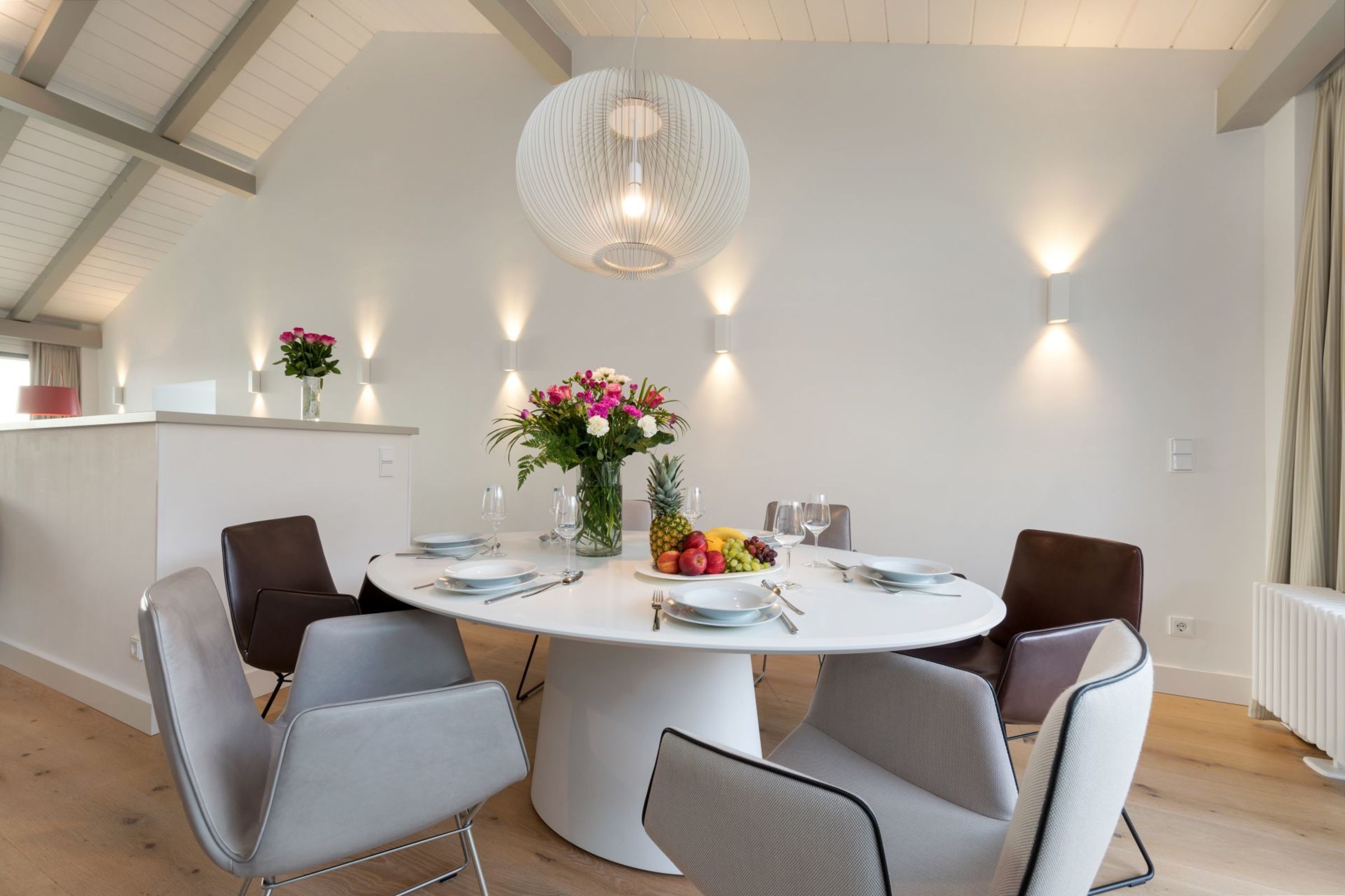 Während sich der großzügige Schlafbereich im Erdgeschoss befindet, beeindruckt der Wohnbereich im Obergeschoss mit bis zu vier Meter hohen Decken. Das luxuriöse Interieur wird durch die komplett ausgestattete Küche, drei HDTV-Fernseher, eine HiFi-Anlage, Designermöbel und natürlich einen Internetzugang per WLAN abgerundet.