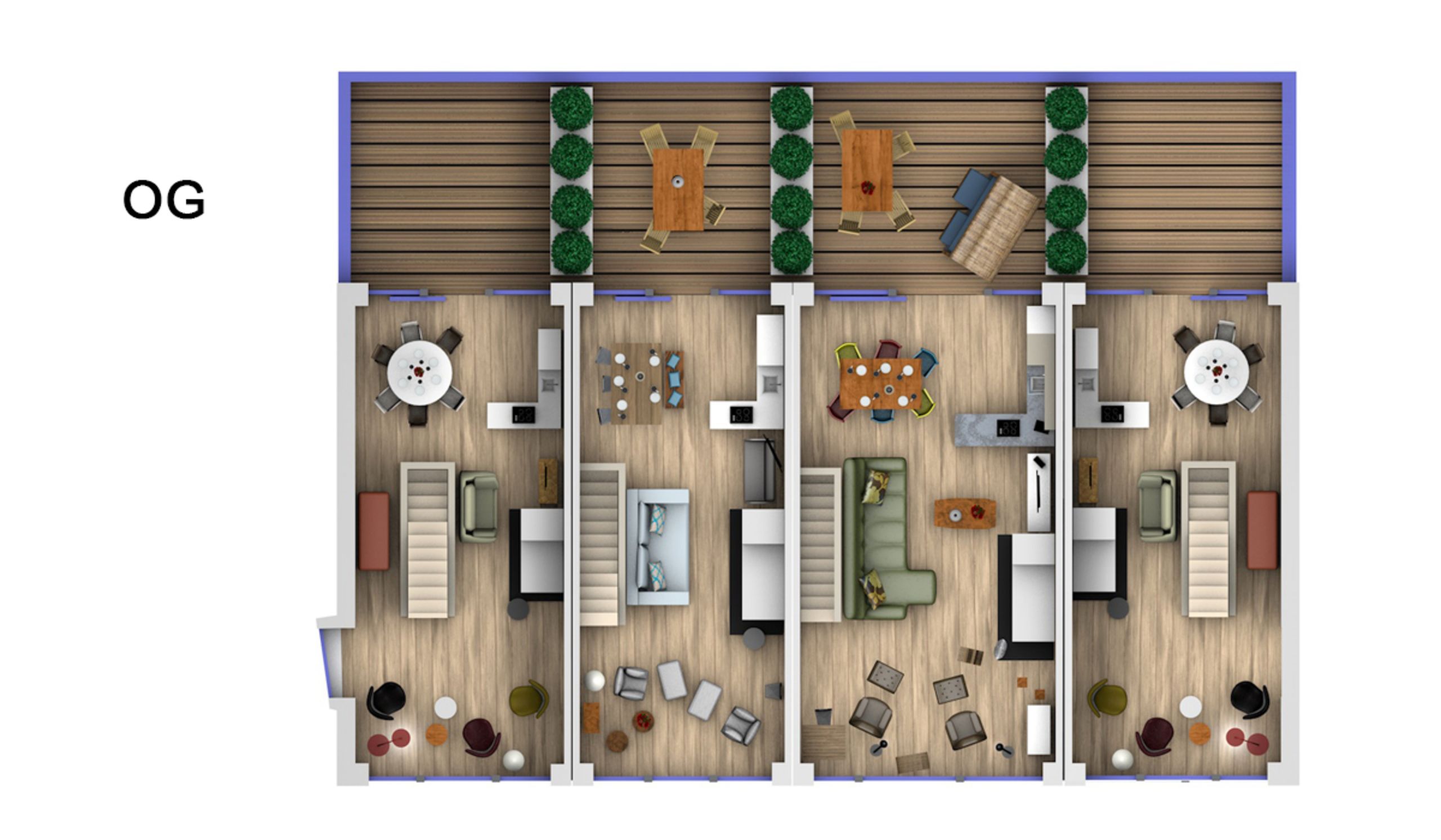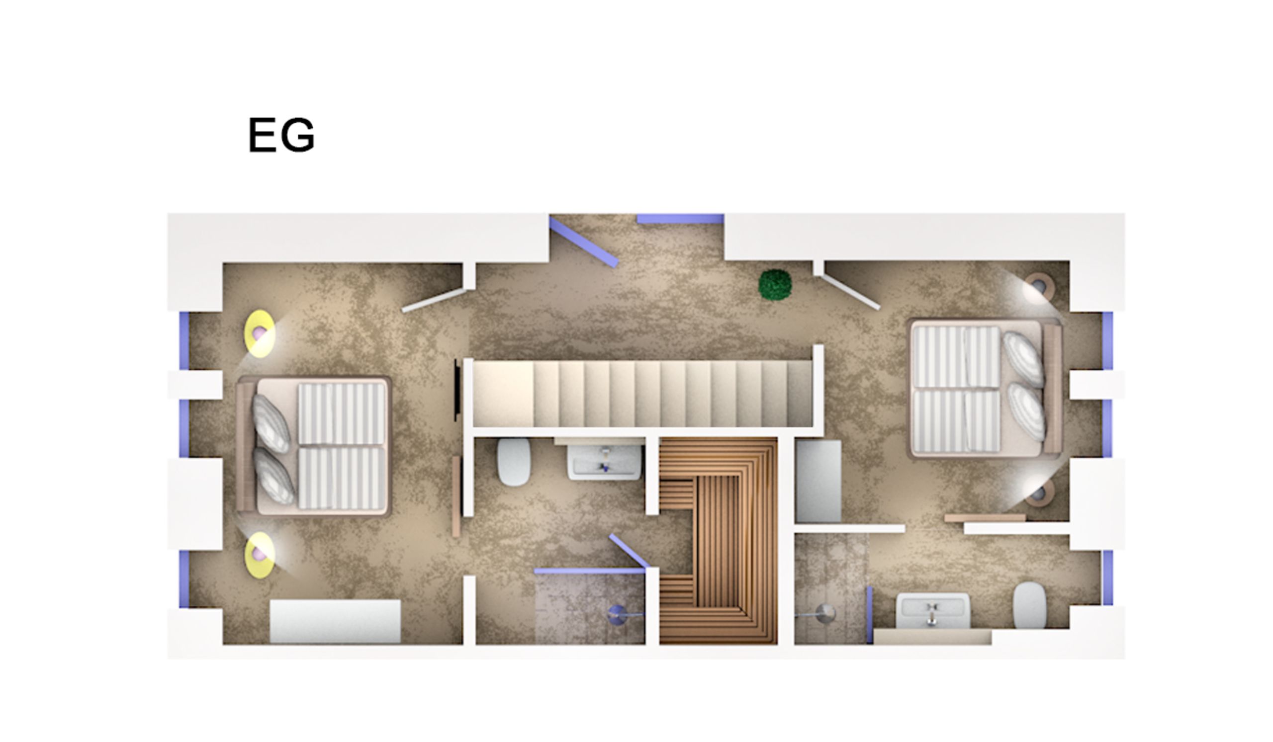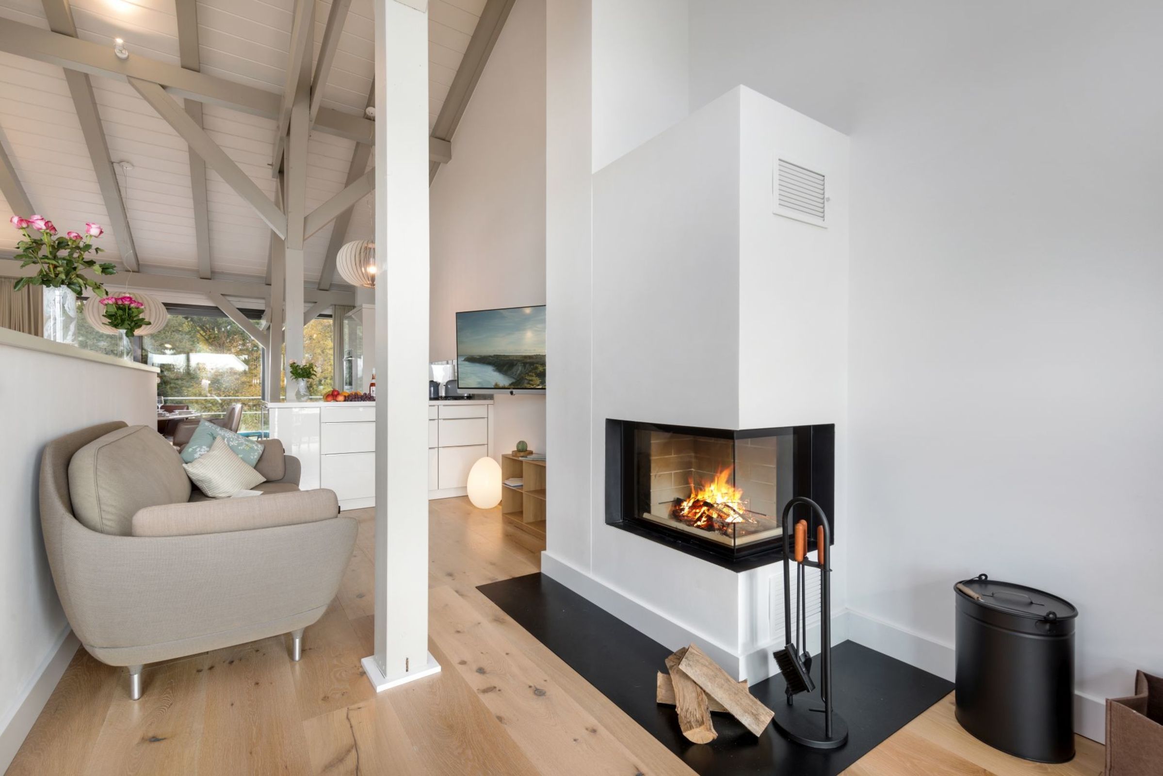 Doch auch auf die „inneren Werte“ kommt es an und diese vier Ferienhäuser mit 110 bis 130 Quadratmeter haben auf zwei Etagen eine ganze Menge zu bieten: Angefangen von den zwei Schlafzimmern und zwei Bädern mit bodentiefen Duschen bis hin zu einer Sauna und einem Kamin, womit der Aufenthalt auf Ummanz zu jeder Jahreszeit seinen Reiz bekommt. Im Sommer genießt man die sanfte Brise, im Winter macht man es sich abends kuschelig und gemütlich.