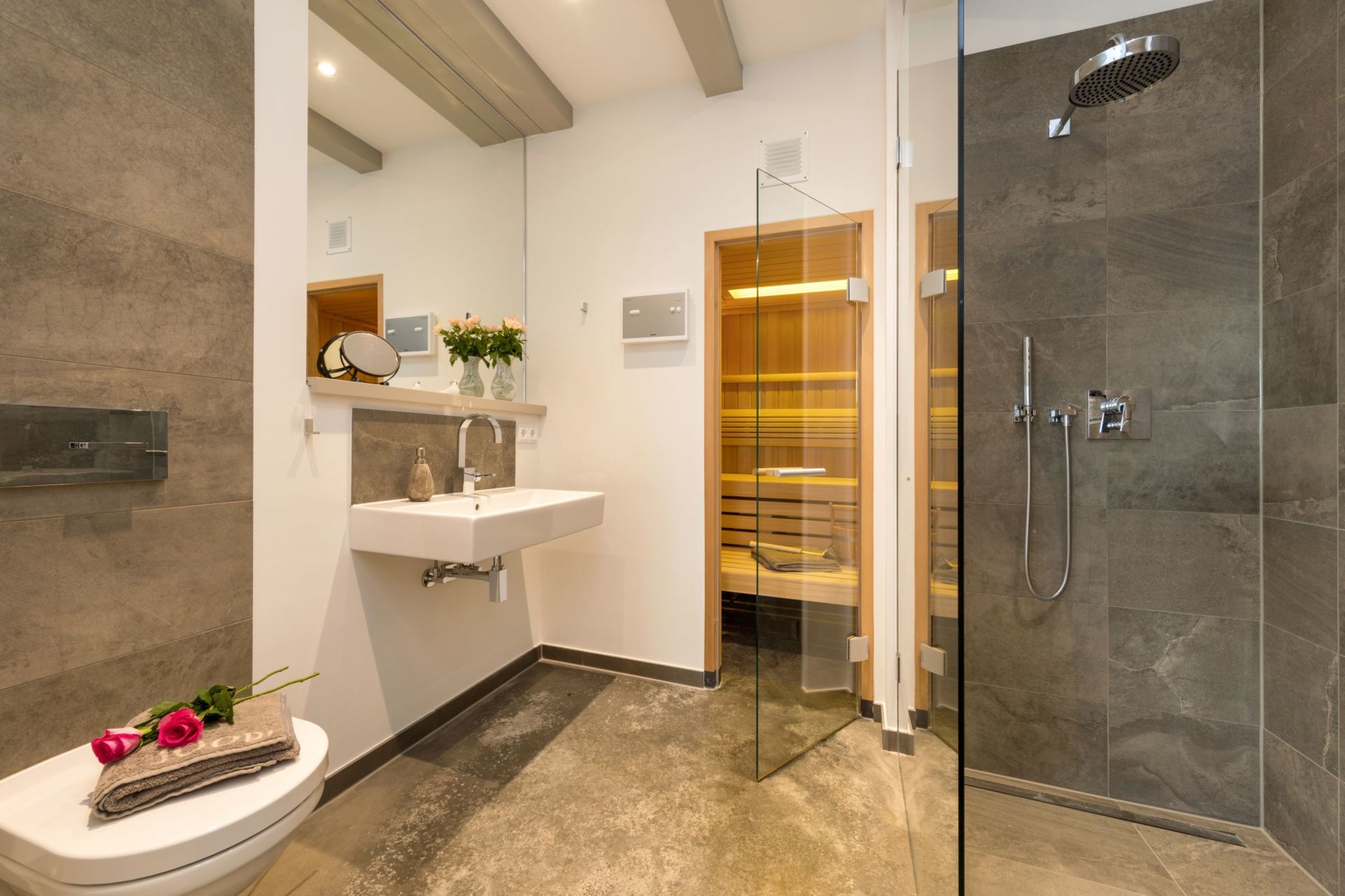2 Bäder mit schwellenlosem Duscheinstieg und Rainshower-Kopfbrause, Sauna,