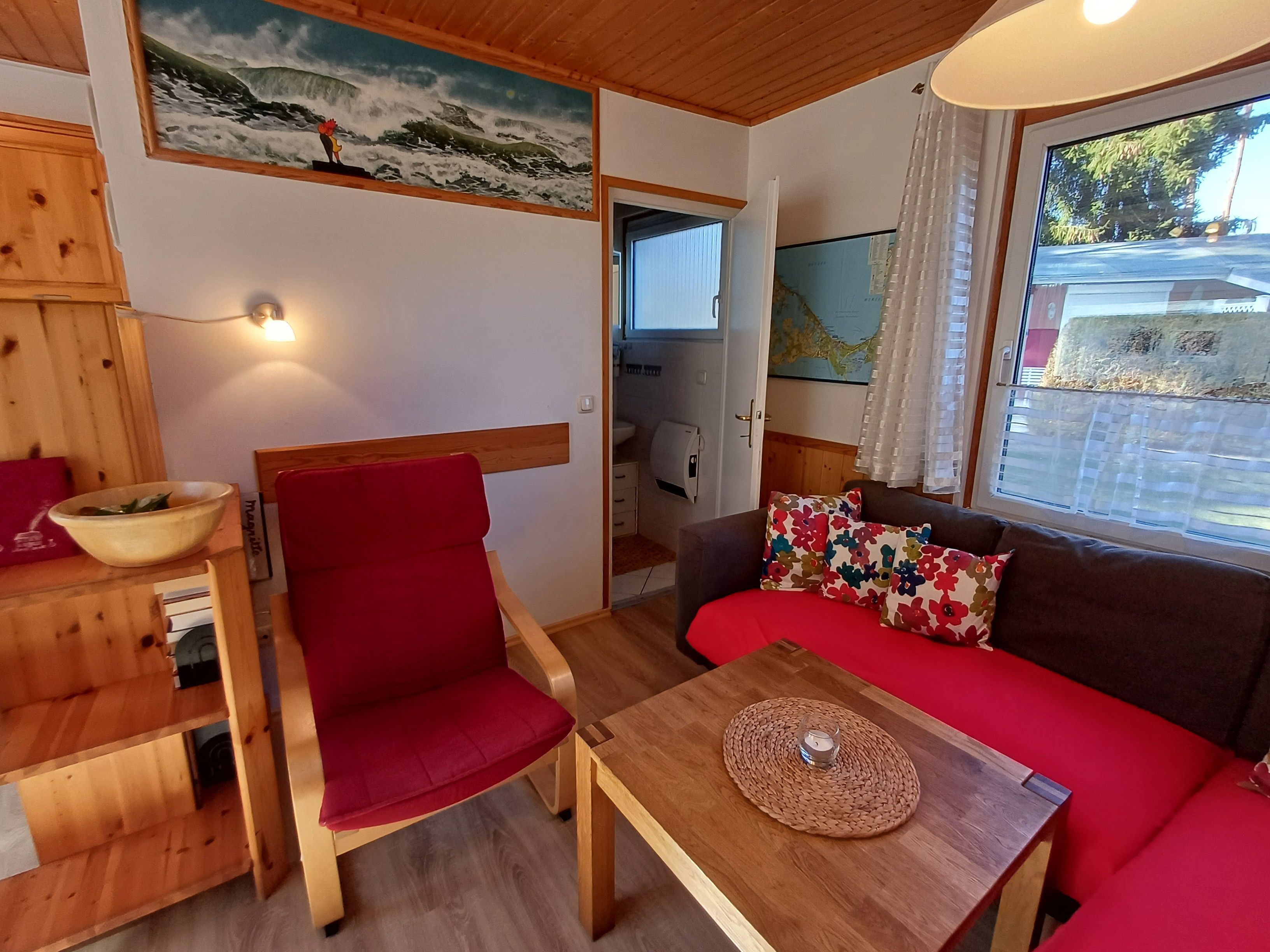 Auf der Terrasse stehen Ihnen Gartenmöbel und ein Sonnenschirm zur Verfügung. Der Bungalow ist eingerichtet und ausgestattet mit Flachbild-TV und Radio.