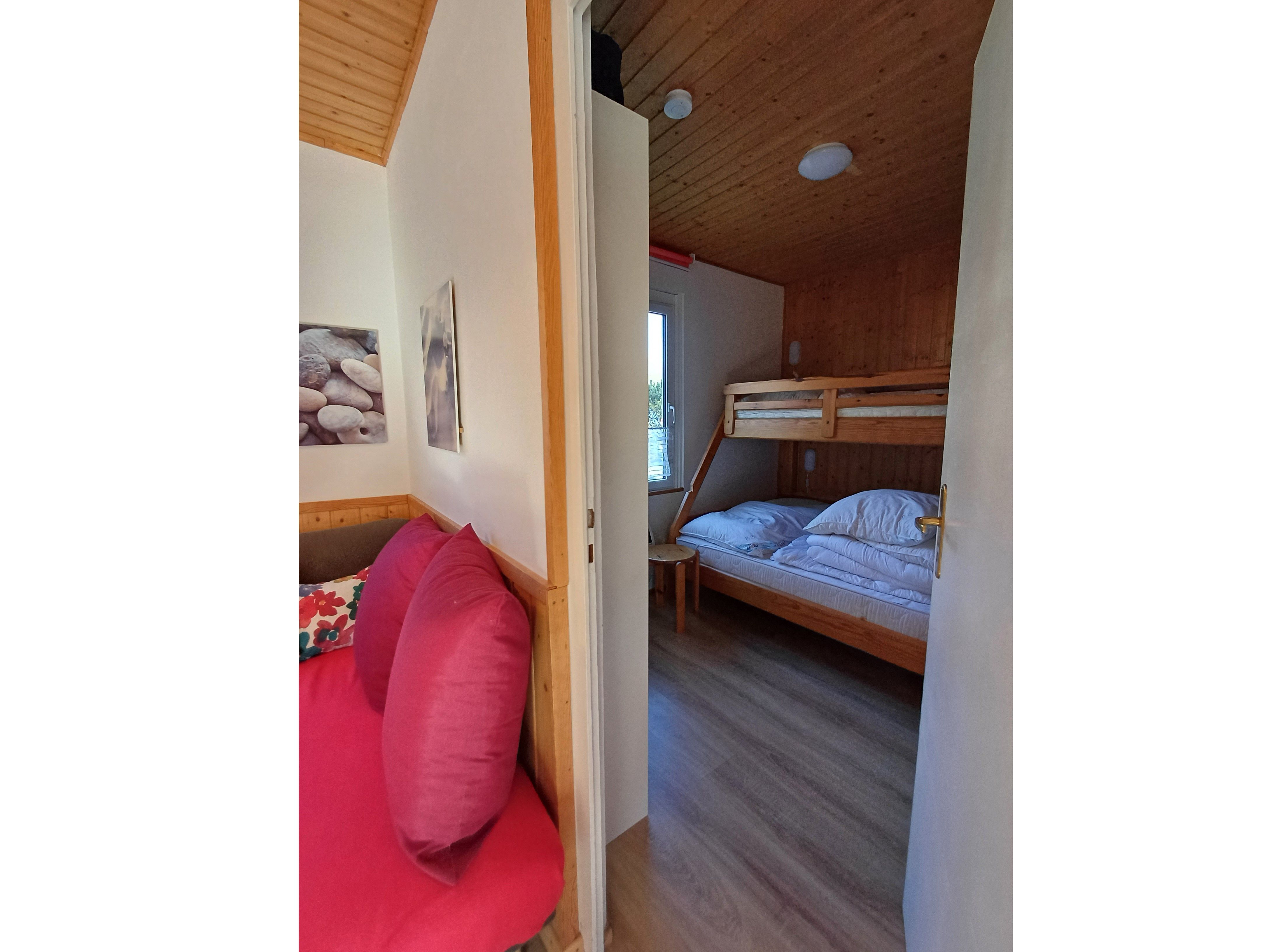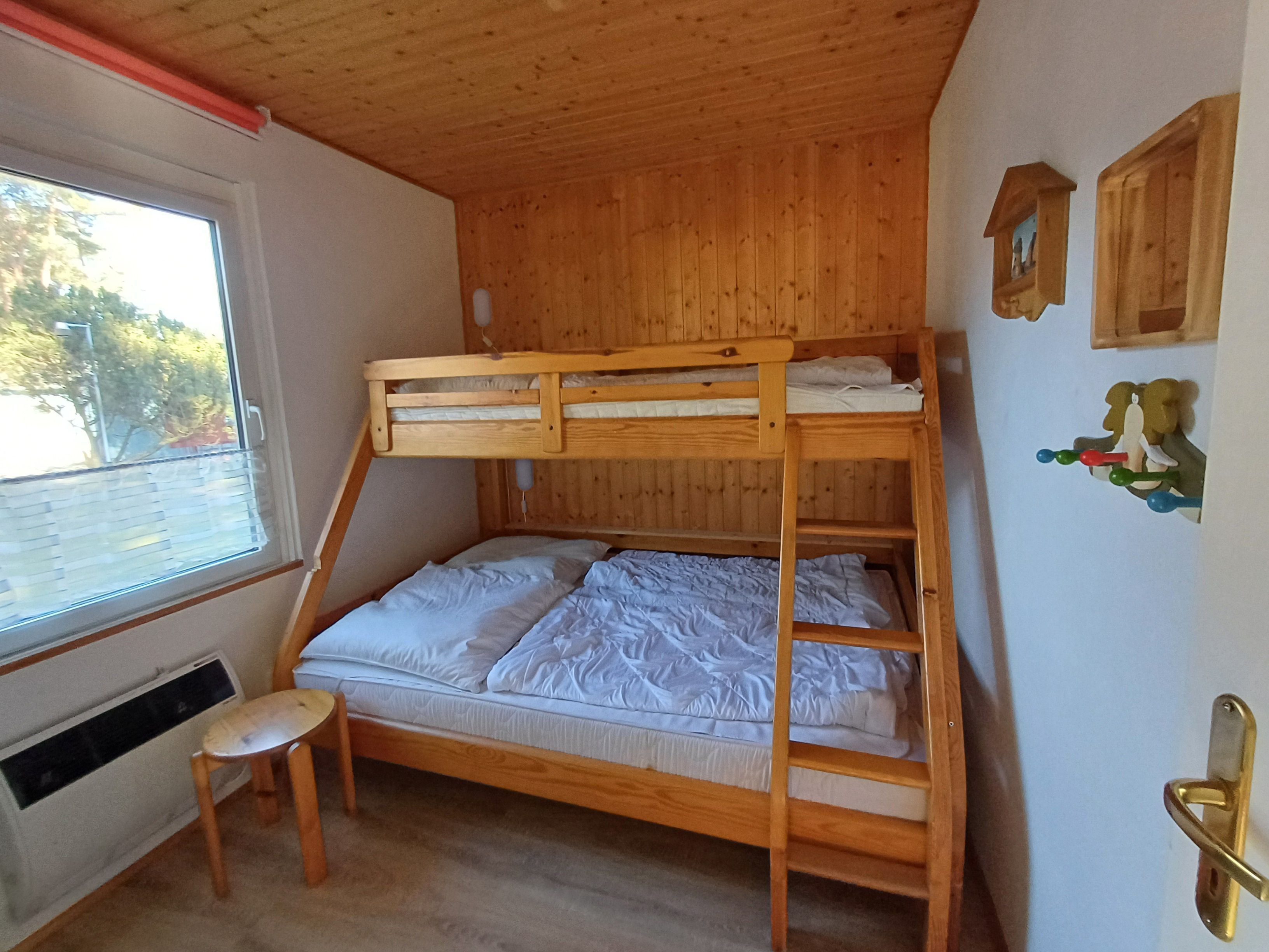1 Gästezimmer mit Regal und Stockbett 140 x 200 und 90 x 200