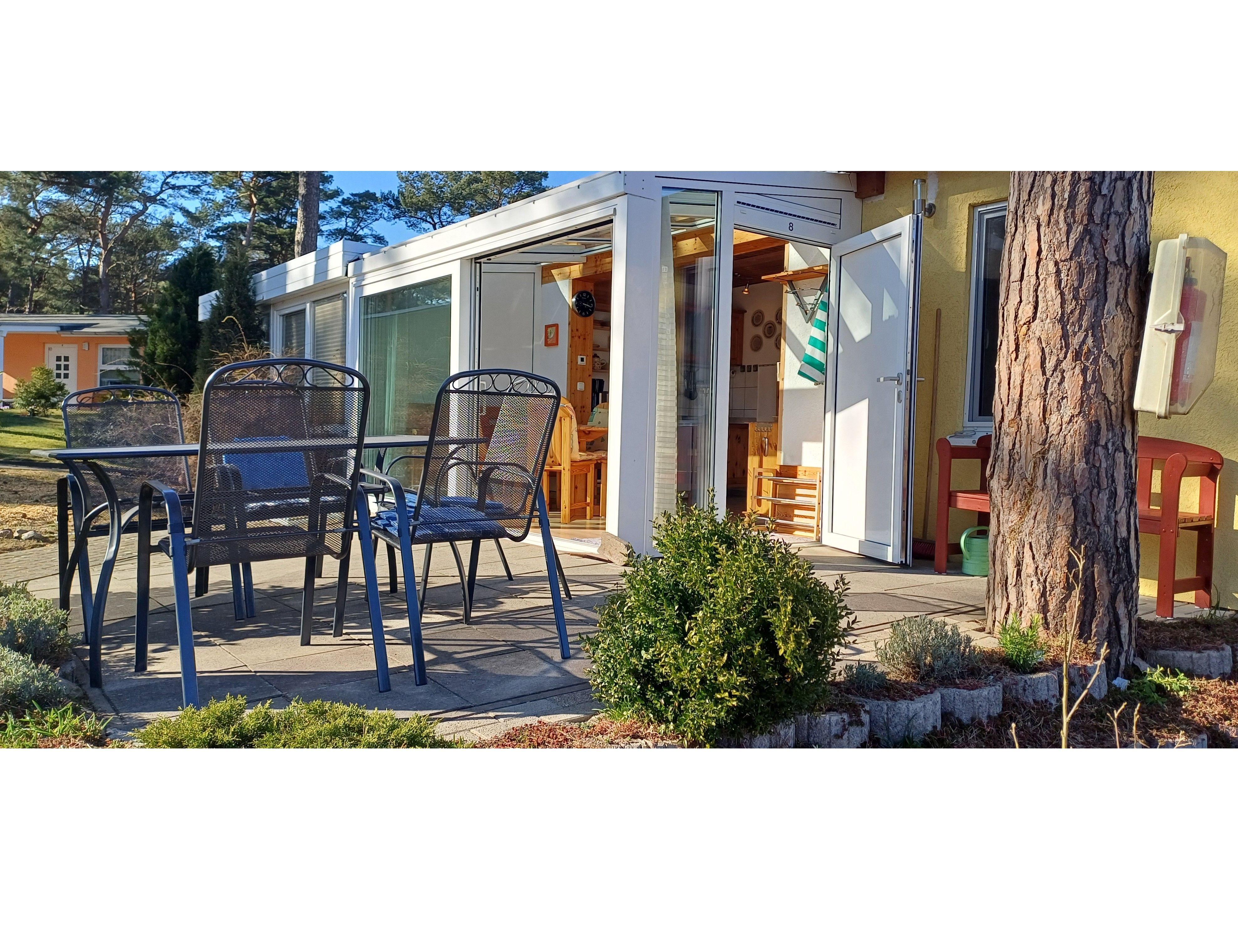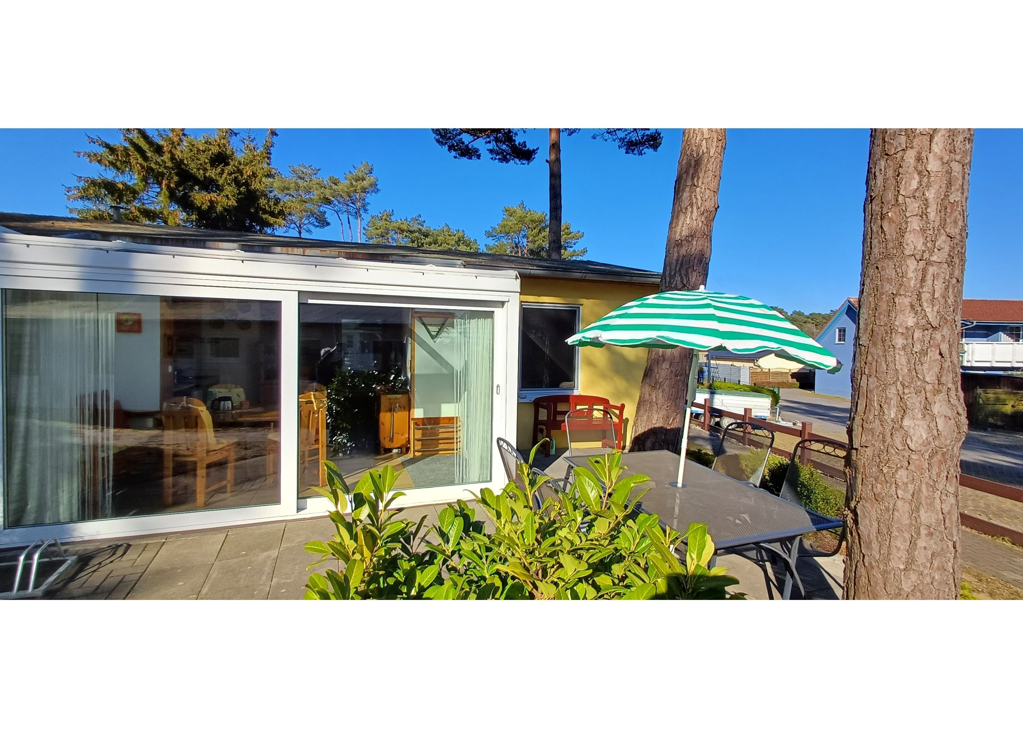 Ausgebauter Bungalow mit hellem, geräumigem Wohnraum, Essplatz im Wintergarten, Küchenzeile, 2 Schlafzimmer sowie Dusche/ WC.