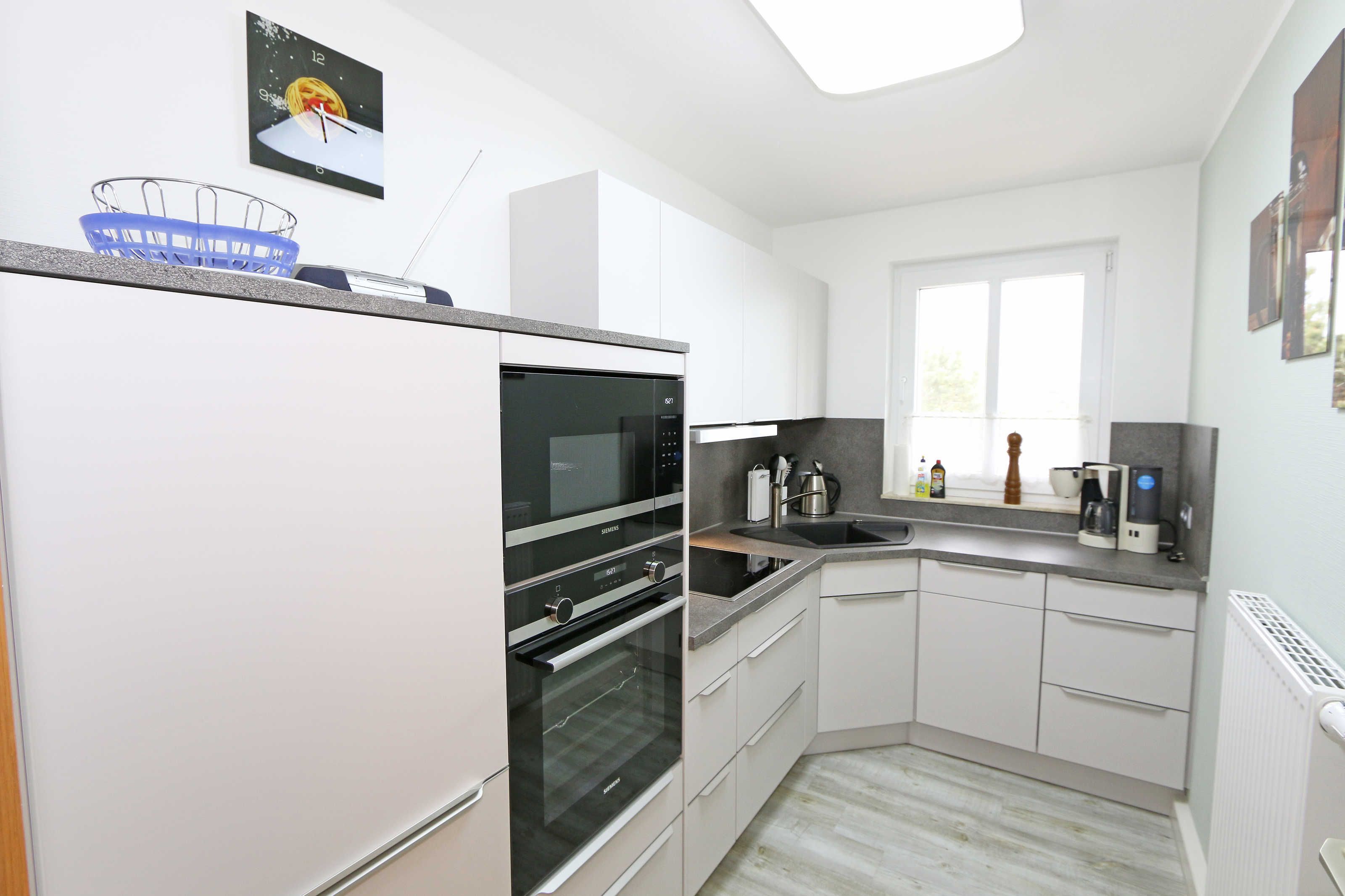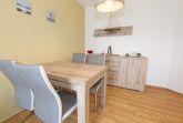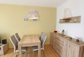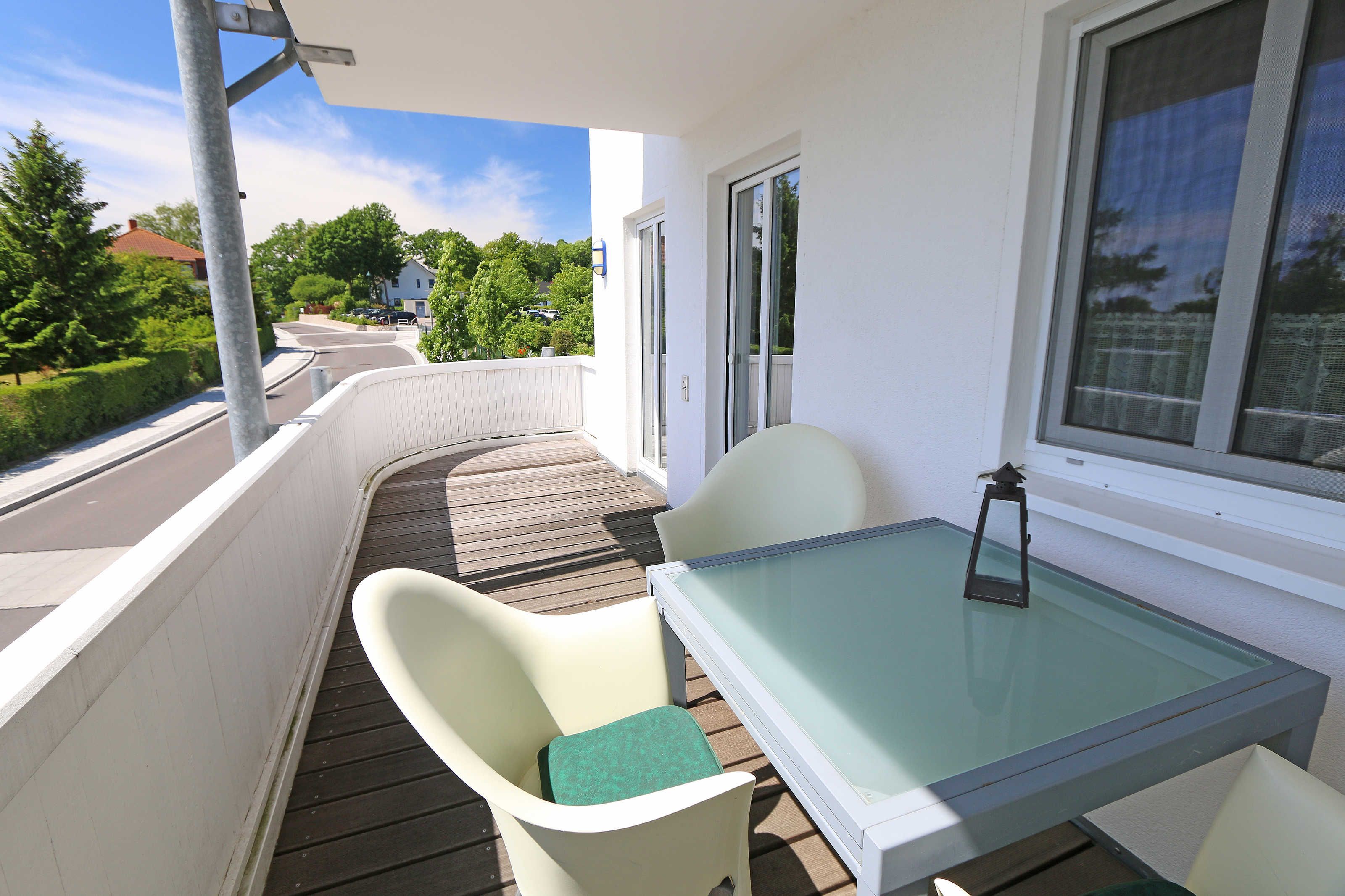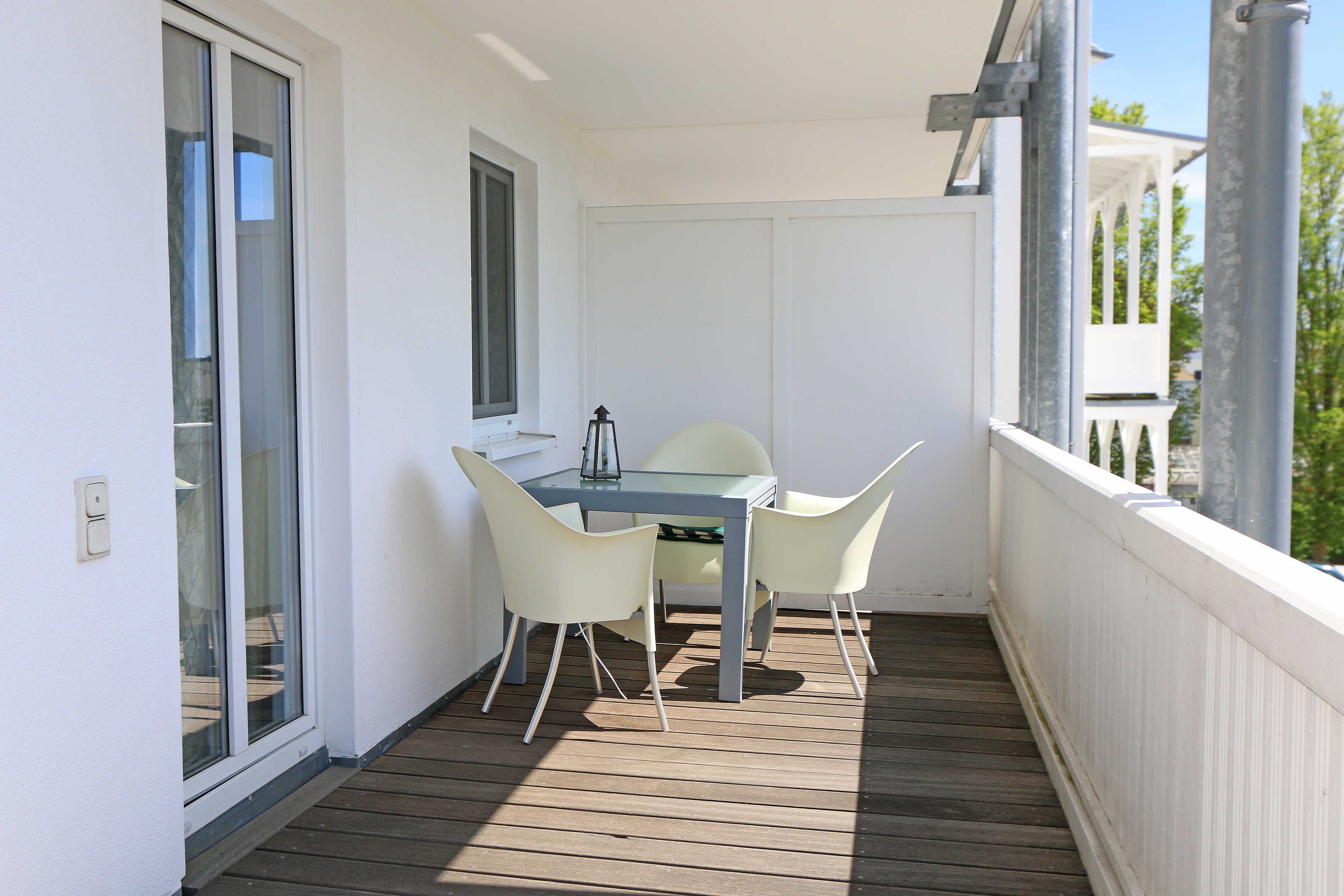 Die gemütliche 2-Zimmerwohnung (Nichtraucher) befindet sich im modernen Anbau der Villa Vineta im 1. Obergeschoss. Die Wohnung ist mit einem Bodenbelag in Holzoptik sowie hellen Wohnzimmermöbeln ausgestattet. Mit ihren ca. 56 qm bietet Ihnen die Wohnung ausreichend Platz für 2 bis 4 Personen. Der Wohnbereich wird durch eine hochwertige Schlafcouch (1,60 m x 2,00 m, Aufbettungsmöglichkeit für 3./4. Person) mit Couchtisch, Leselampe, kleinem Sideboard mit Smart-TV mit Sky (Auswahl von Sport, Film, Dokumentation), Blu-Ray-Player und einer Mini-Stereo-Anlage mit CD-Player und DAB-Radio abgerundet. Auf einen Internetzugang (WLAN) brauchen Sie nicht zu verzichten. Dieser ist inklusive für Sie. Der gemütliche Essplatz mit 4 Stühlen passt sich dem Wohnbereich an. Von hier aus erreichen Sie den teilüberdachten und bestuhlten Südbalkon, von dem Sie einen Meerblick in Richtung Südstrand und der Halbinsel Mönchgut haben. Die separate neu renovierte Küche ist komplett mit Backofen, Induktionsfeld, Mikrowelle, Geschirrspüler, Kühlschrank mit Gefrierschrank, Kaffeemaschine, Toaster, Wasserkocher und diversen Küchenutensilien ausgestattet. Das ruhig nach Norden gelegene Schlafzimmer verfügt über ein Doppelbett (1,80 m x 2,00 m) mit verstellbaren Lattenrosten, Nachttischkonsolen sowie einem Kleiderschrank und ein Smart-TV (nur Internet TV möglich). Ein Kinderreisebett kann hier aufgestellt werden. Das Schlafzimmer und der Wohnbereich sind mit Verdunklungsplissees versehen. Das geflieste Tageslichtbad ist mit einem Waschtisch, Kosmetikspiegel, Fön, WC und Dusche ausgestattet. Ein PKW-Stellplatz (Nr. 12) gehört zur Wohnung und befindet sich hinter dem Haus. 1x Hochstuhl und 1x Kinderreisebett (ohne Zusatzmatratze, ohne Bettinlett) sind für unsere kleinen Gäste inklusive. Für Ihre geliehenen oder auch mitgebrachten Fahrräder stehen Ihnen ein Fahrradständer sowie ein Fahrradkeller zur Verfügung. 1 Haustier ist gegen eine Gebühr ein gern gesehener Gast. Die Erstausstattung eines Wäschepaketes (komplette Bettwäsche, 1 Duschhandtuch, 2 kleine Handtücher) können Sie bis 14 Tage vor Anreise gegen einen Aufpreis dazu buchen oder durch eigene ergänzen. Ab 2 gebuchten Paketen erhalten Sie einmalig 1 Geschirrhandtuch und 1 Duschvorleger hinzu.
