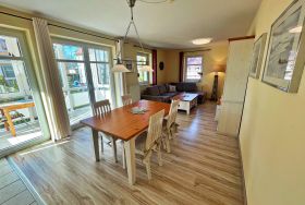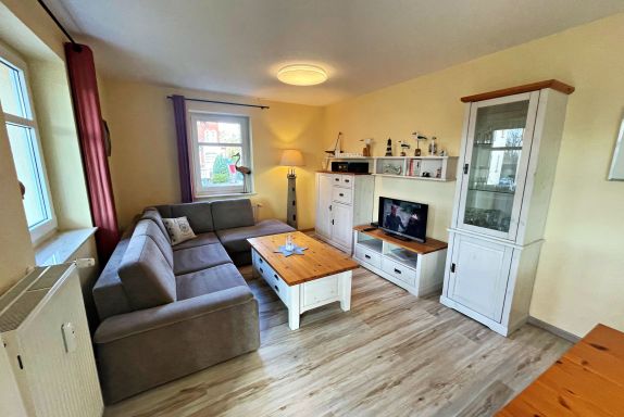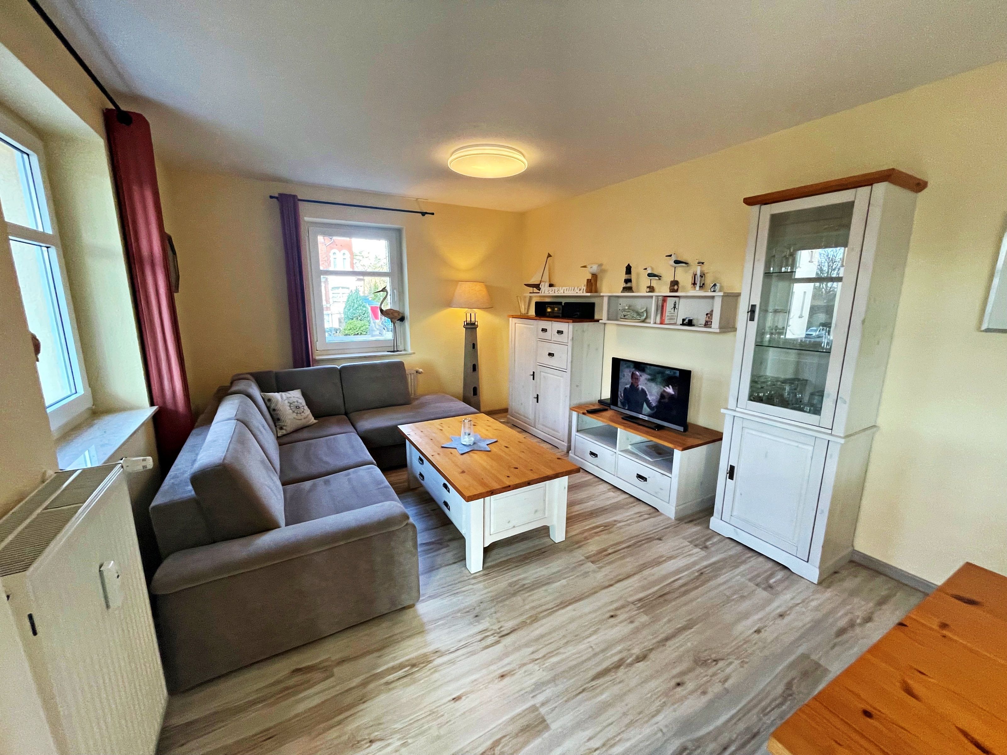 Herzlich willkommen in der komfortablen 2-Raum-Ferienwohnung im Haus Karavelle! Diese einladende Unterkunft befindet sich im 1. Obergeschoss und bietet Ihnen alles, was Sie für einen entspannten Aufenthalt benötigen. Von der Diele aus gelangen Sie in den großzügigen Wohnbereich, der mit einer modernen Küchenzeile und einem Esstisch für vier Personen ausgestattet ist. Hier finden Sie einen 2-Platten-Herd, einen Kühlschrank, eine Mikrowelle, eine Spüle und Geschirr - ideal für Ihre kulinarischen Kreationen. Das hell möblierte Wohnzimmer lädt mit einer gemütlichen Eckcouch, die Platz für zwei weitere Personen bietet, sowie einem Flachbild-TV und CD-Player zum Verweilen ein. Genießen Sie Ihr Frühstück im angrenzenden Wintergarten oder lassen Sie den Abend bei einem Glas Wein in entspannter Atmosphäre ausklingen. Im Schlafzimmer erwartet Sie ein bequemes Doppelbett und auf Anfrage wird gerne ein Kinderbett und ein Hochstuhl für die kleinen Gäste bereitgestellt. Das Tageslicht-Bad ist mit einer Dusche und WC ausgestattet und sorgt für zusätzlichen Komfort. Ein Pkw-Stellplatz steht Ihnen auf dem umzäunten Grundstück zur Verfügung. Für Ihre Wäsche können Sie gegen Entgelt eine Waschmaschine sowie einen Wäschetrockner im Objekt nutzen. Die Erstausstattung Bettwäsche und Handtücher kann für nur 17,50 € pro Person bei der Buchung hinzugebucht werden. WLAN Zugang ist für ein Gerät kostenfrei, für jedes weitere Gerät werden 10 € pro Woche berechnet.