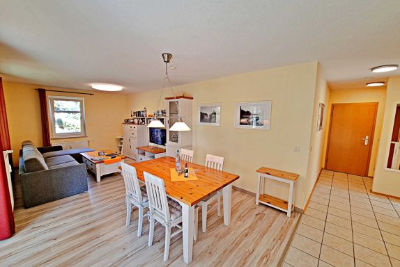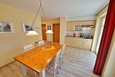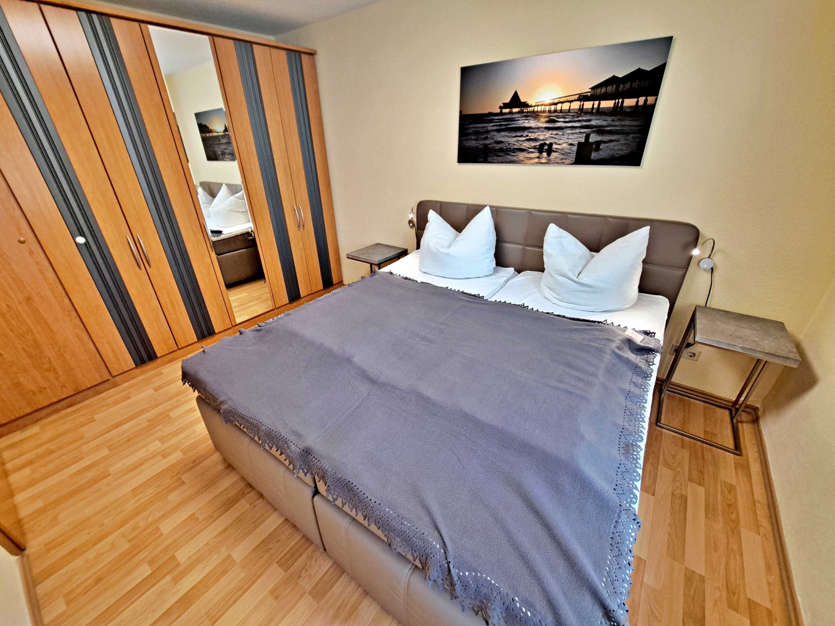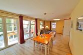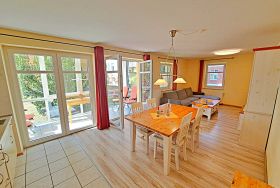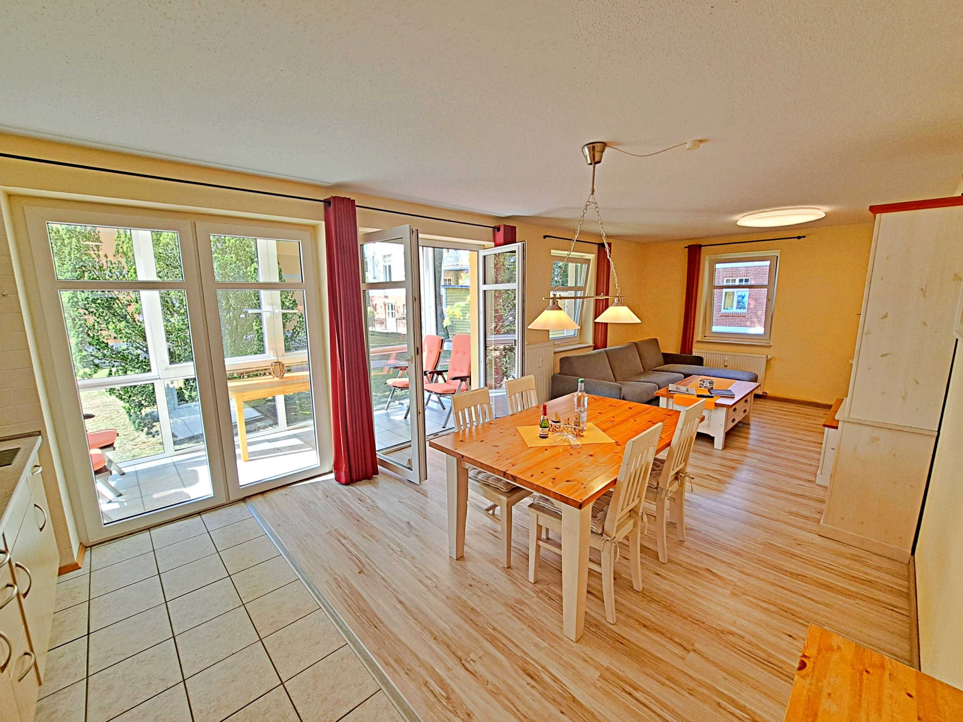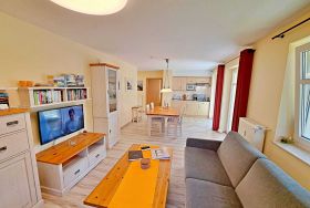 Diese freundliche und einladende Unterkunft im Erdgeschoss im Haus Karavelle bietet Platz für 2-4 Personen und ist ideal für Ihren nächsten Urlaub. Dank der südlichen Ausrichtung genießen Sie im angrenzenden Wintergarten ganztägig die warmen Sonnenstrahlen. In den Sommermonaten sorgen die hohen Laubbäume für angenehmen Schatten und eine erfrischende Kühle. Von der Diele aus gelangen Sie in den großzügigen Wohnbereich, der mit einer modernen Küchenzeile und einem Esstisch für vier Personen ausgestattet ist. Die Küche bietet alles, was Sie benötigen, darunter ein 2-Platten-Herd, Kühlschrank, Mikrowelle, Spüle und Geschirr. Im hellen Wohnzimmer finden Sie eine gemütliche Eckcouch, Flat-TV und CD-Player, die zum Entspannen einladen. Ein separates Schlafzimmer mit einem komfortablen Doppelbett und ein Tageslicht-Bad mit Dusche/WC runden das Angebot ab. Für die kleinen Gäste werden gerne ein Kinderreisebett und einen Hochstuhl kostenfrei zur Verfügung gestellt. Ein Pkw-Stellplatz auf dem umzäunten Grundstück steht Ihnen ebenfalls zur Verfügung. Zudem können Sie gegen Entgelt eine Waschmaschine und einen Wäschetrockner im Objekt nutzen. Die Erstausstattung Bettwäsche und Handtücher kann bei der Buchung der Ferienwohnung für nur 17,50 € pro Person hinzugebucht werden. WLAN-Zugang ist für ein Gerät kostenfrei, für jedes weitere Gerät werden 10 € pro Woche berechnet.