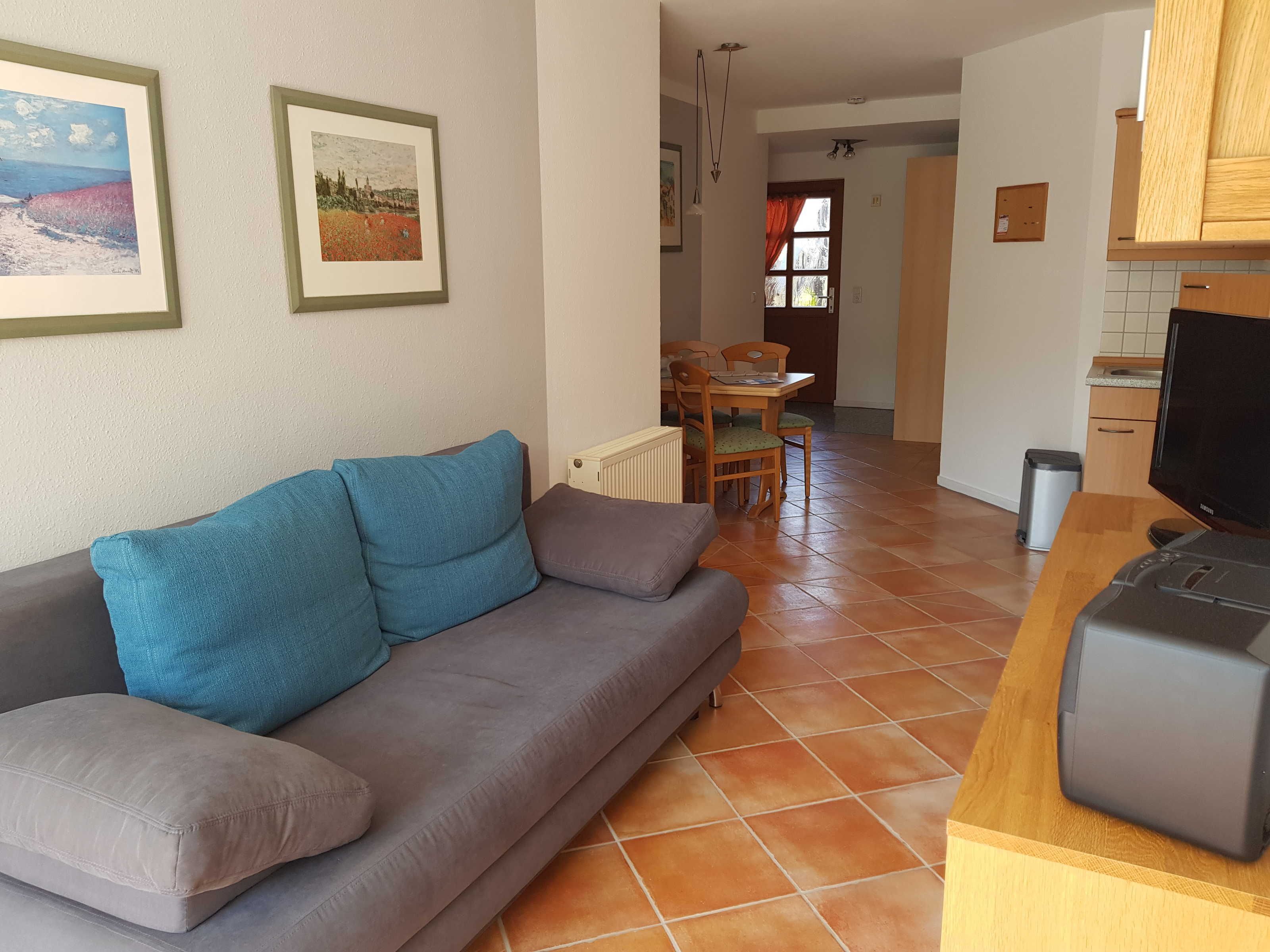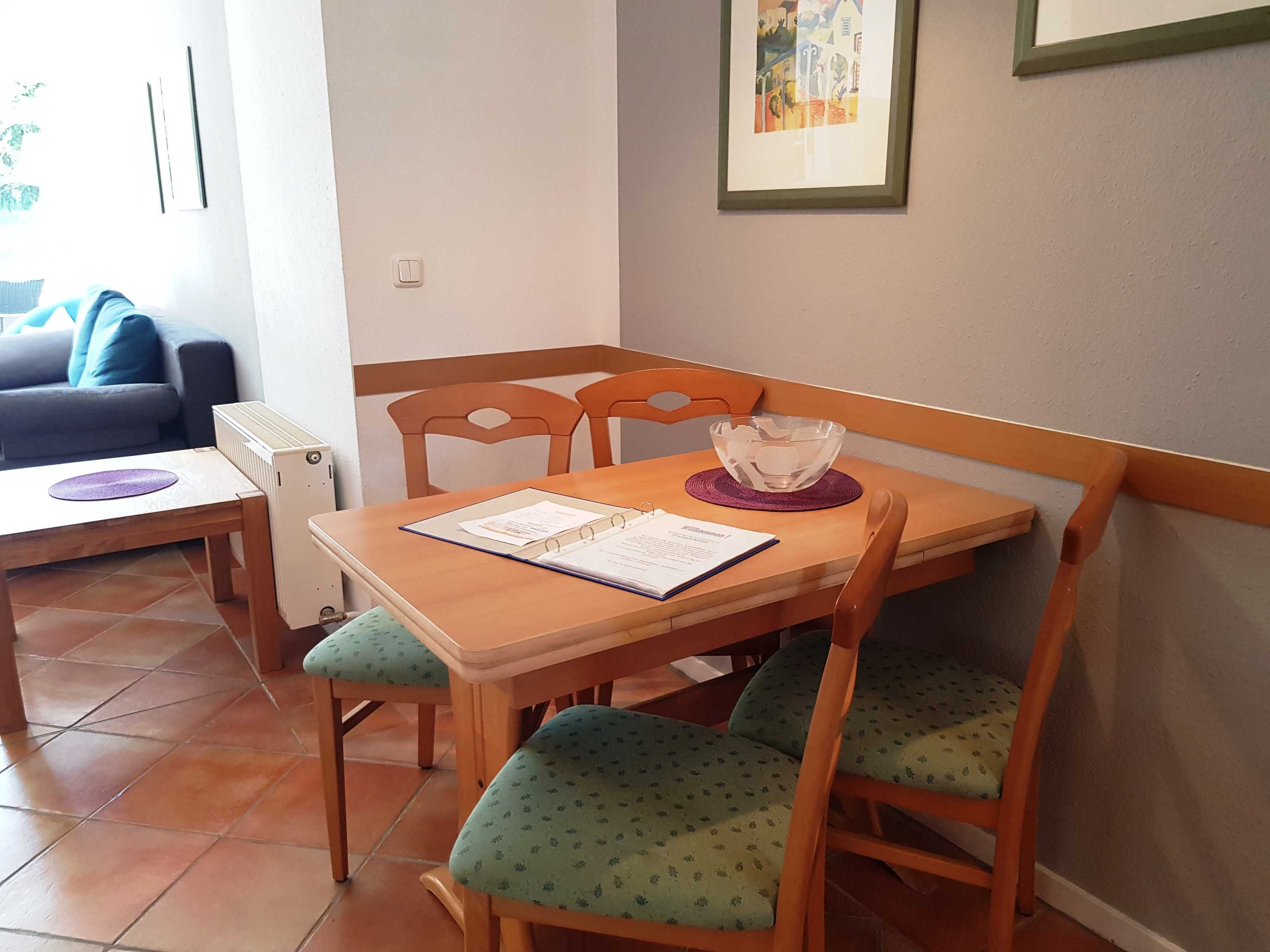 • Wohnzimmer mit Couch und Esstisch für 4 Personen
