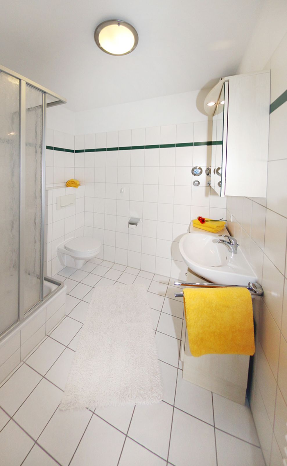 Flachbildschirm und Hifi-Anlage, auf Wunsch WLAN, gehören selbstverständlich zur Wohnungsausstattung, wie ein schönes Badezimmer mit Dusche.