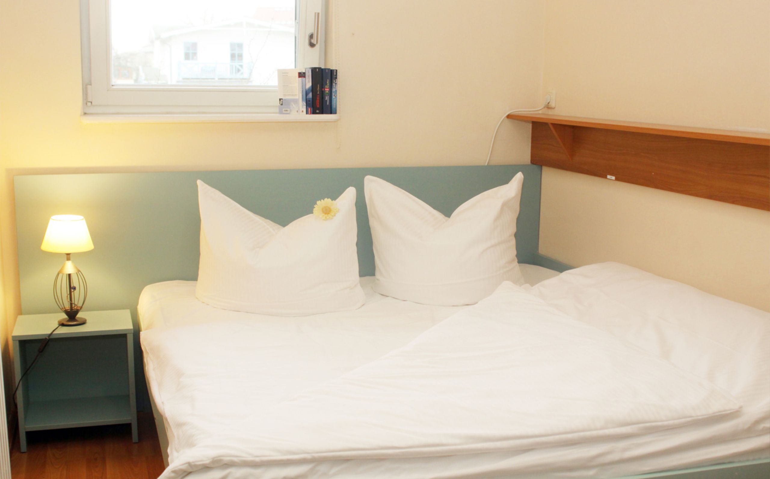 Das Schlafzimmer liegt sehr ruhig, weit weg vom hektischen Treiben und garantiert einen erholsamen Ostseeurlaub.