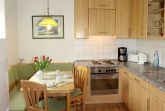 Die Küche ist so ausgestattet, dass man auch mal bei entsprechender Lust und Laune selbst gemütlich kochen kann: Spülmaschine, Kühlschrank, Backofen, Vierplattenherd, Kaffeemaschine, Toaster, Wasserkocher sowie ausreichend Geschirr.