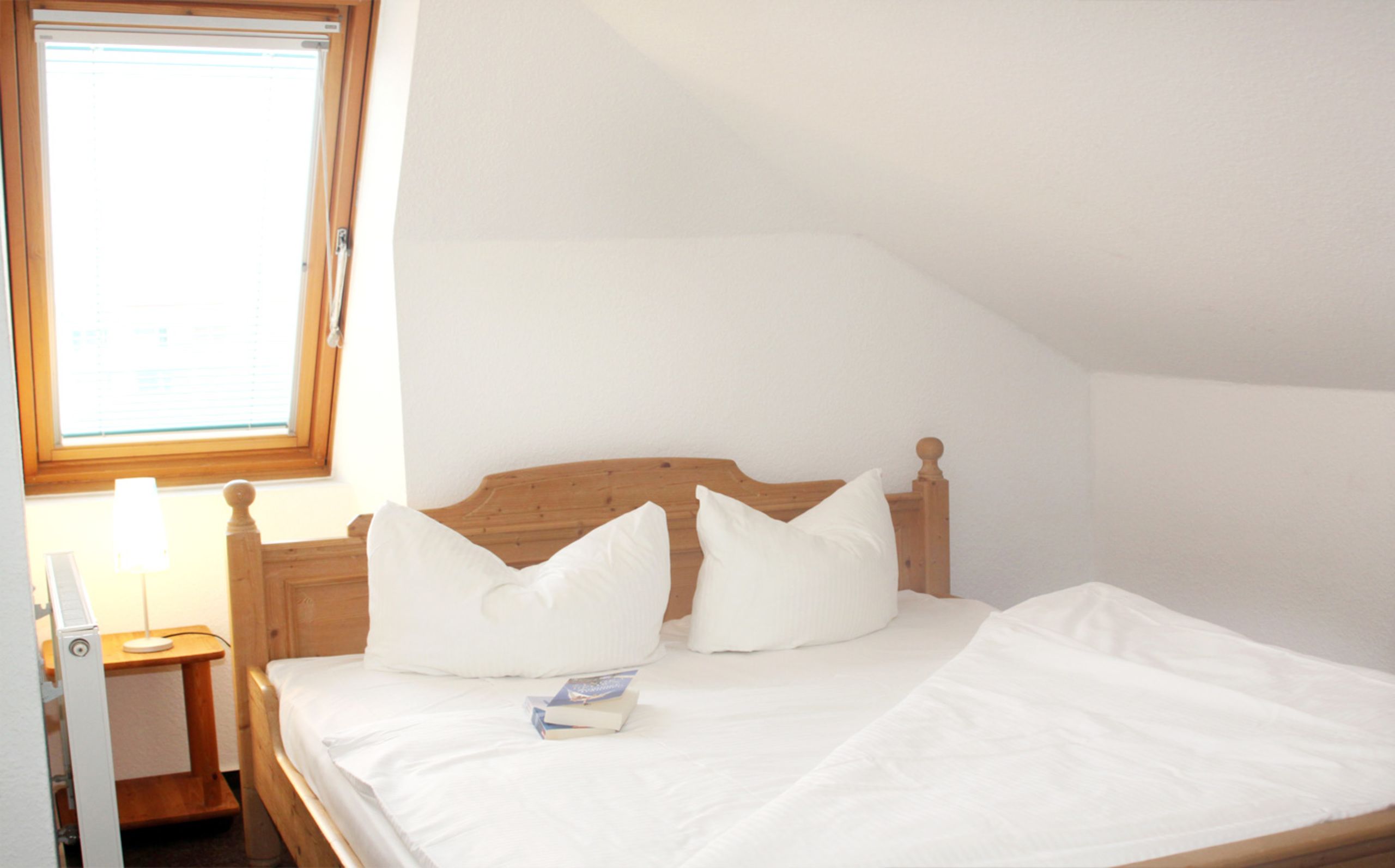 Unsere Ostsee-Ferienwohnung Kleeblatt für fünf Personen und eine Aufbettung, ca. 57 qm groß, erstreckt sich über zwei Geschosse (2.OG und DG) und befindet sich in der Villa Waldfrieden, unserem renovierten Altbau mit den typischen, hohen Räumen und den großflächigen, bunten, denkmalgeschützten Jugendstilfenstern.