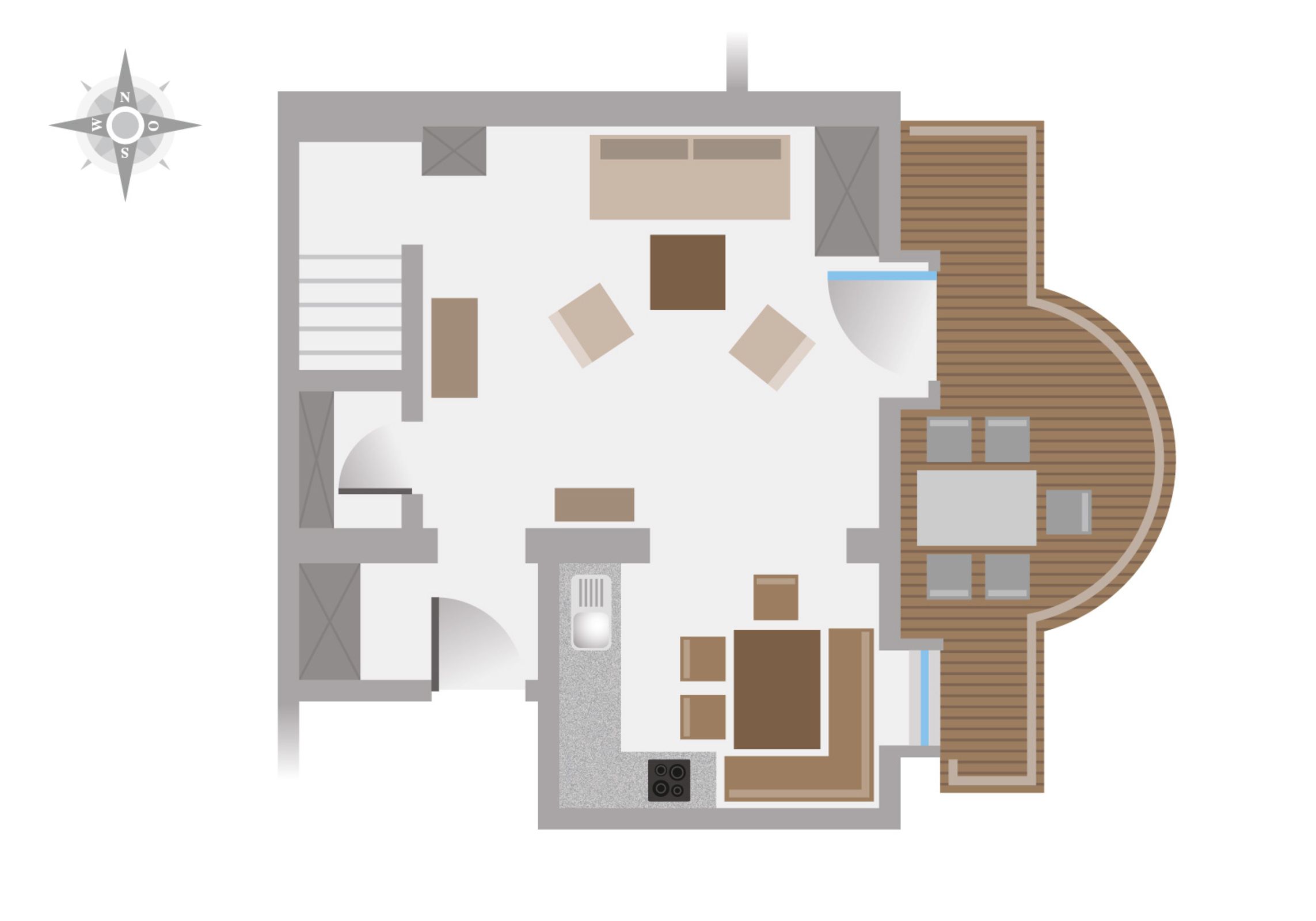 Bereits in den frühen Morgenstunden können Sie die Sonne auf dem großen Balkon genießen. Im unteren Geschoss bieten sich eine Küche mit gemütlichem Essbereich und Eckbank sowie der Wohnraum (mit Doppelbettcouch) zum gemütlichen Beisammensein an.