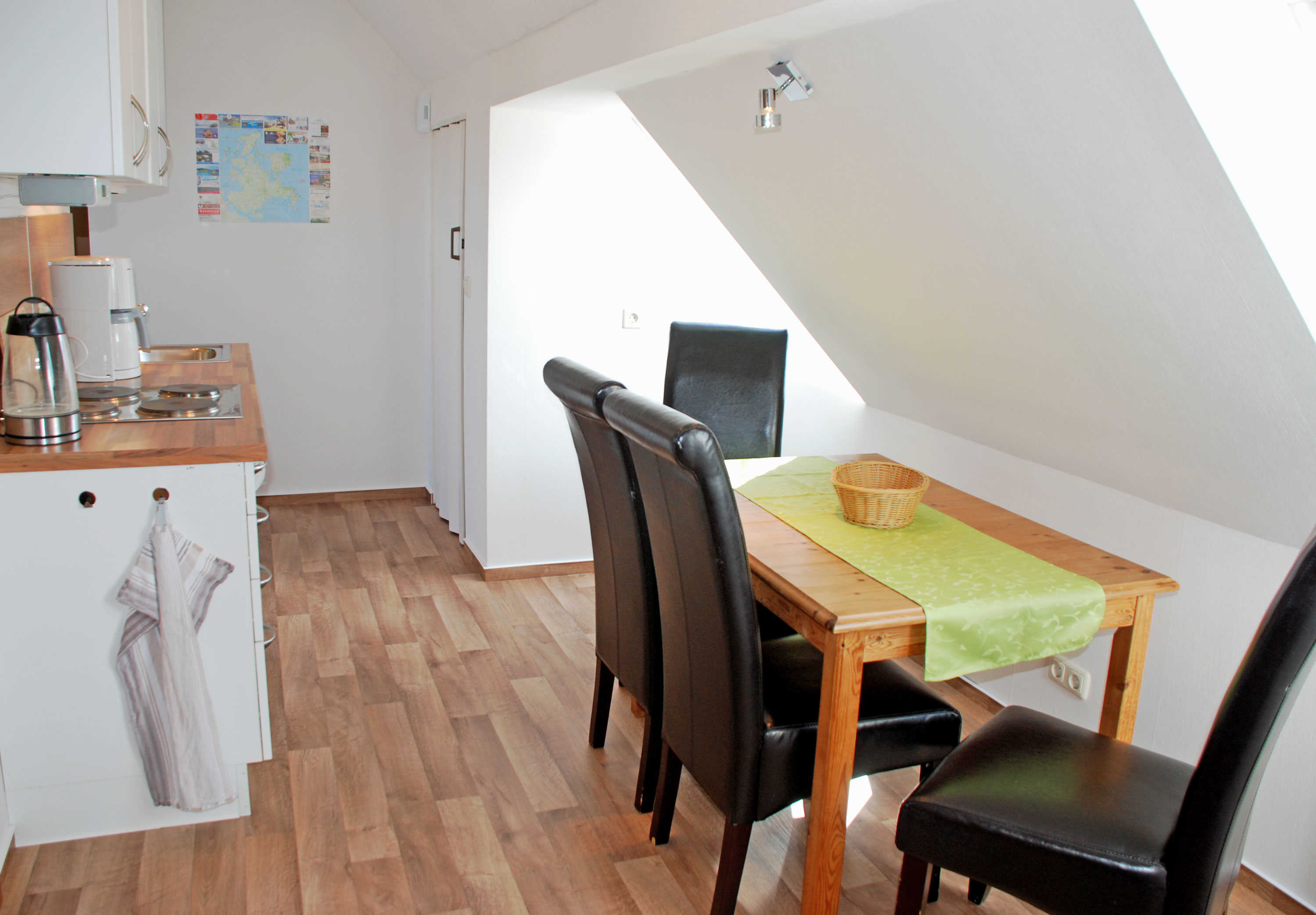 Die Küche ist mit einem Herd, Spüle und Geschirrspülmaschine sowie Kühlschrank mit Gefrierfach, Kaffemaschine, Toaster komplett ausgestattet. Hier finden Sie auch eine Essecke mit Sitzgelegenheiten vor.