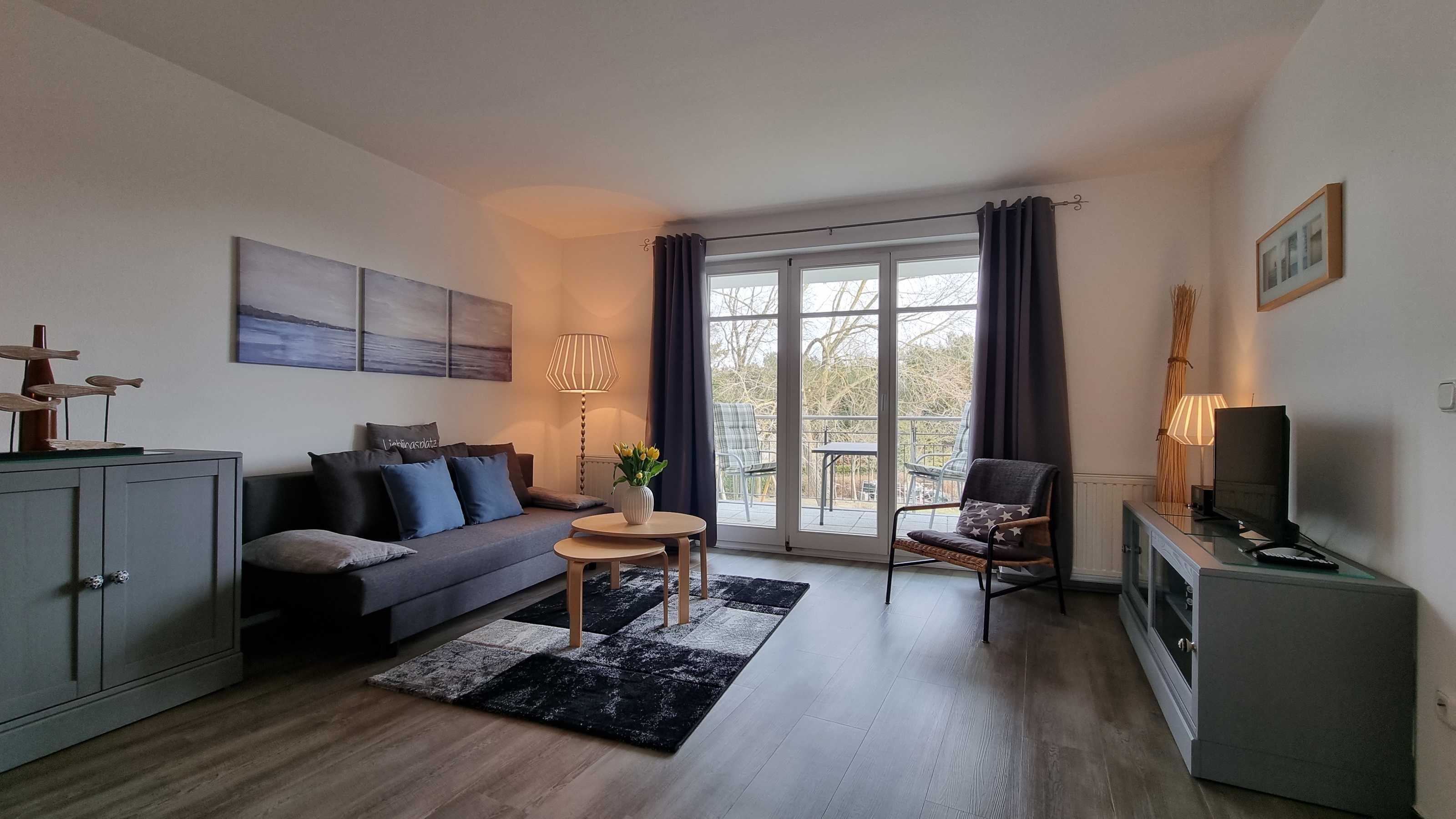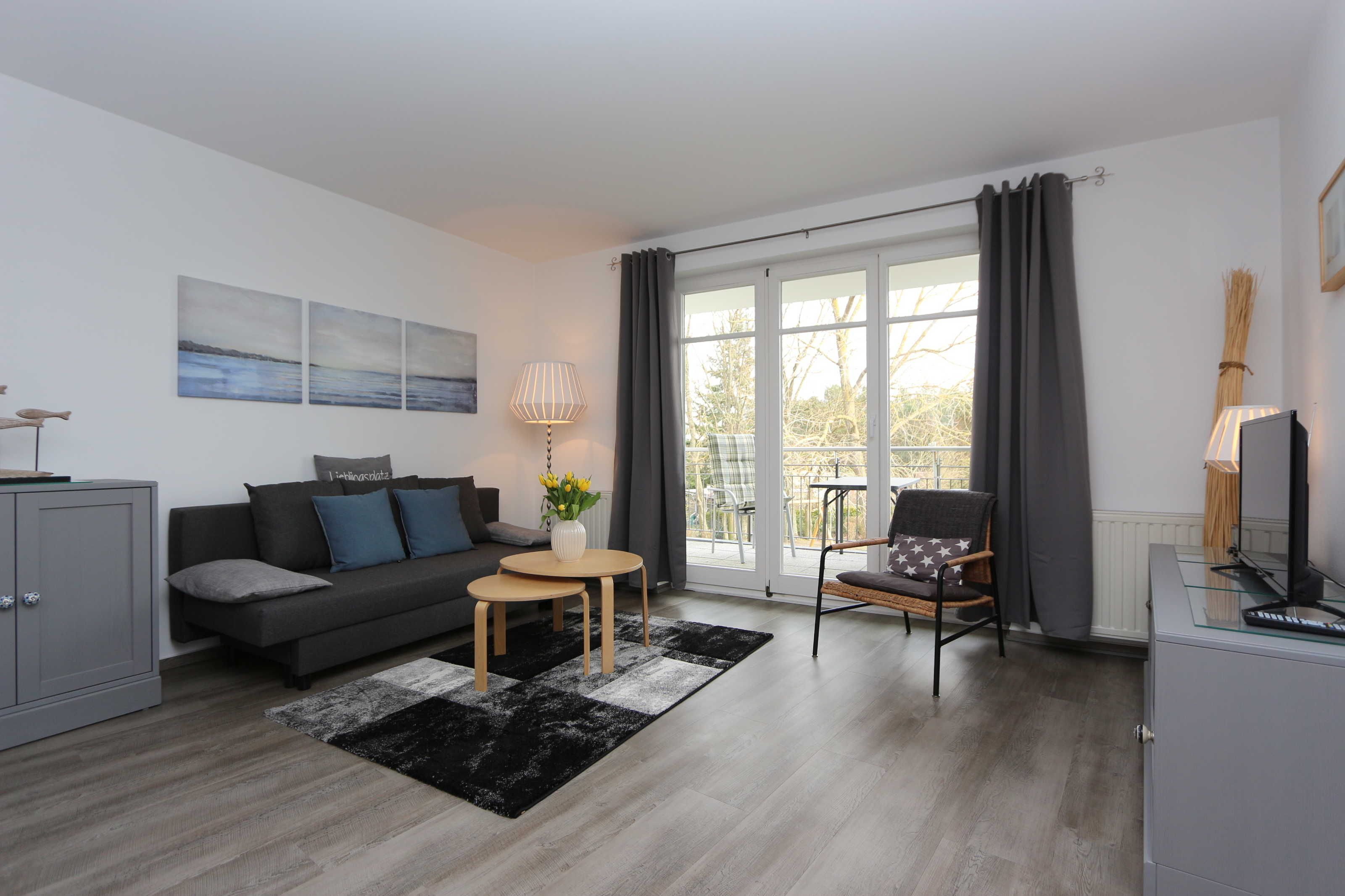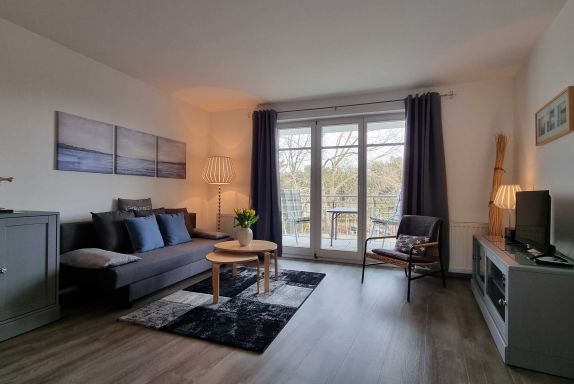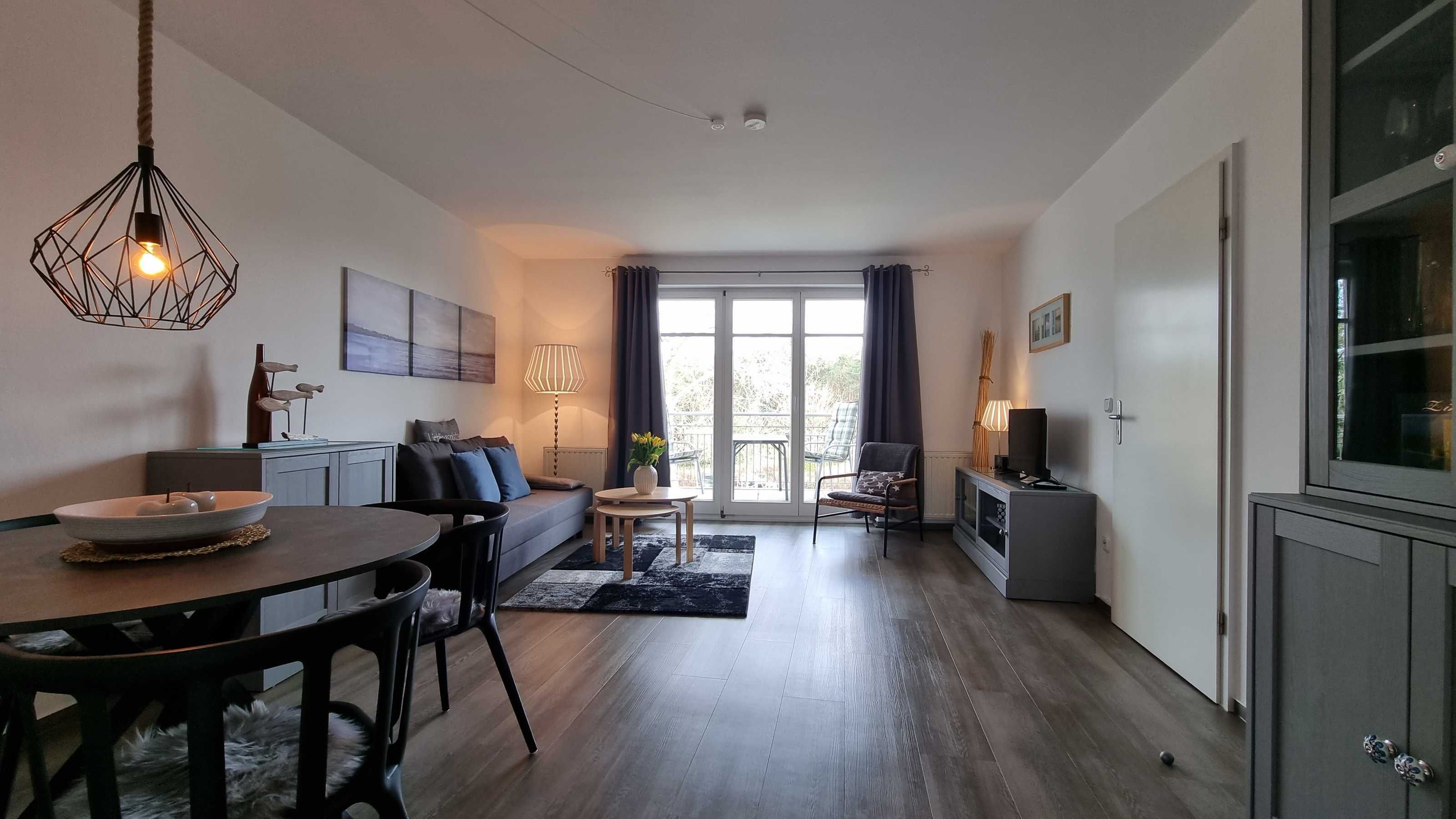Ferienwohnung (Nr. 58) für bis zu 3 Personen zzgl. einem Kleinkind (ca. 57 m²) im 1.Obergeschoss mit Wohn- und Esszimmer, 1 Küche, 1 Schlafzimmer, 1 Bad und 1 Balkon.