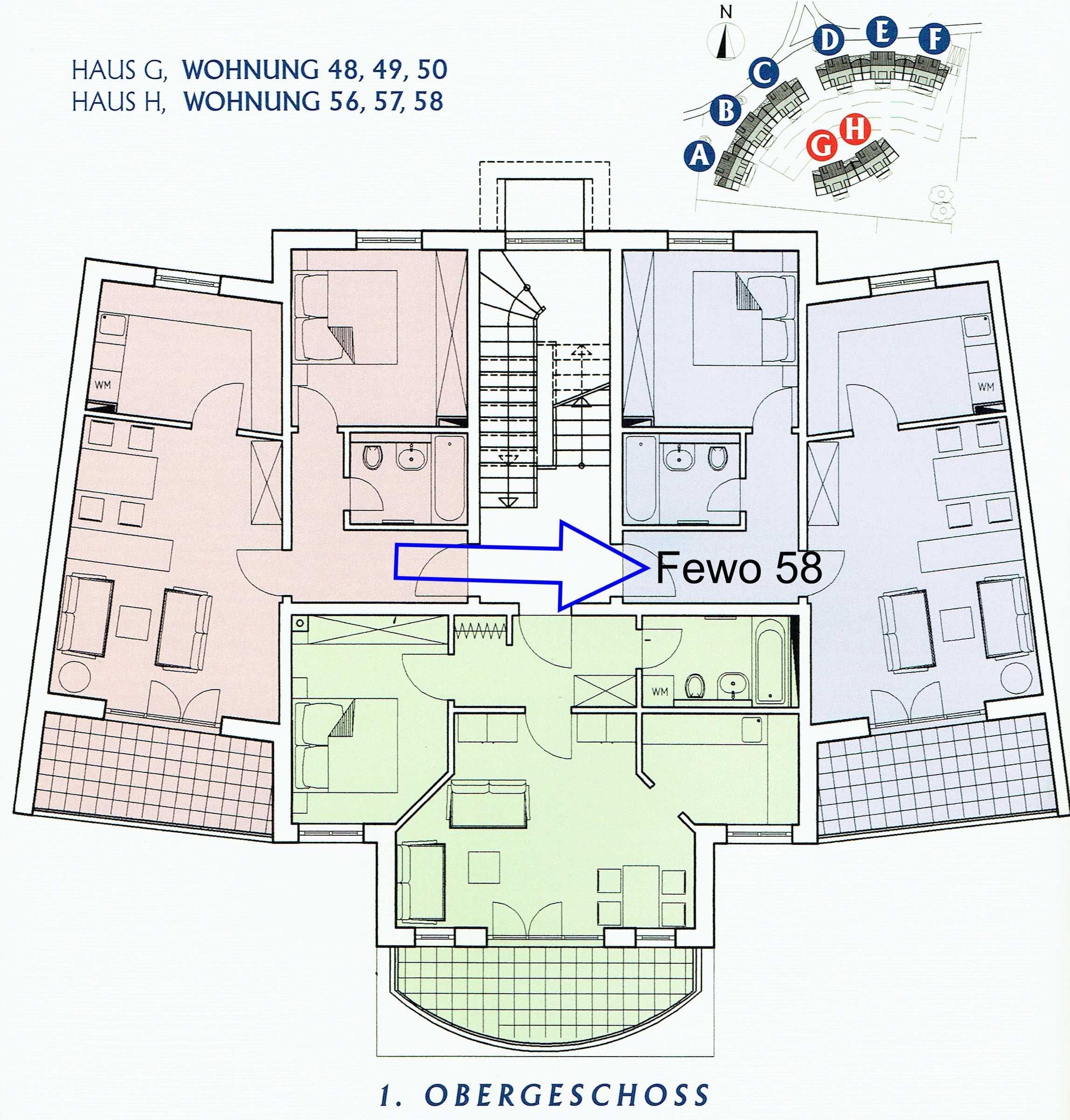 Die Ferienwohnung Nr. 58 ist wie folgt ausgestattet: