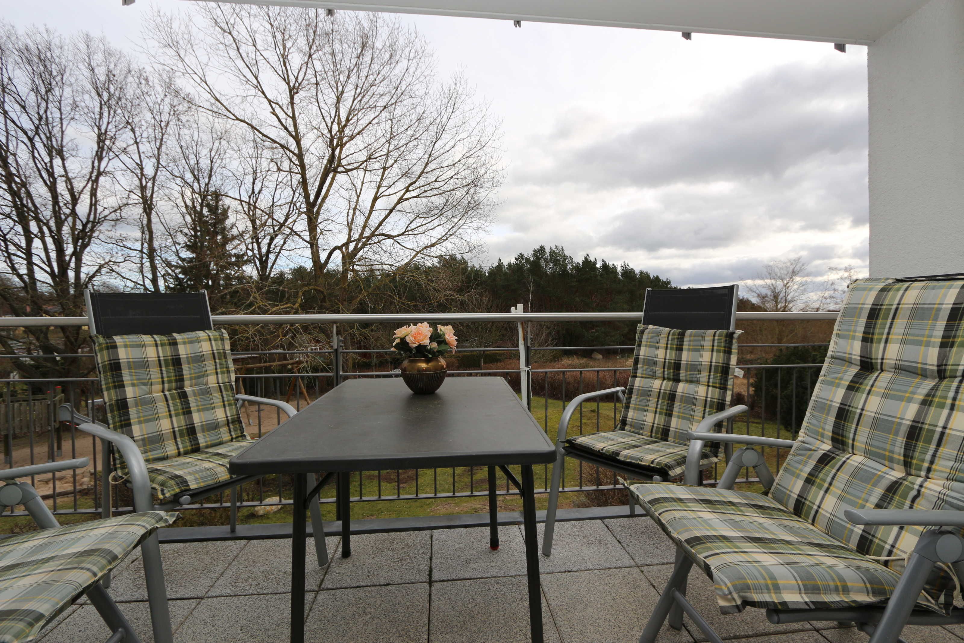 • Der Balkon ist in Richtung Süd-Ost ausgerichtet und ist mit 4 Stühlen und einem Tisch ausgestattet.