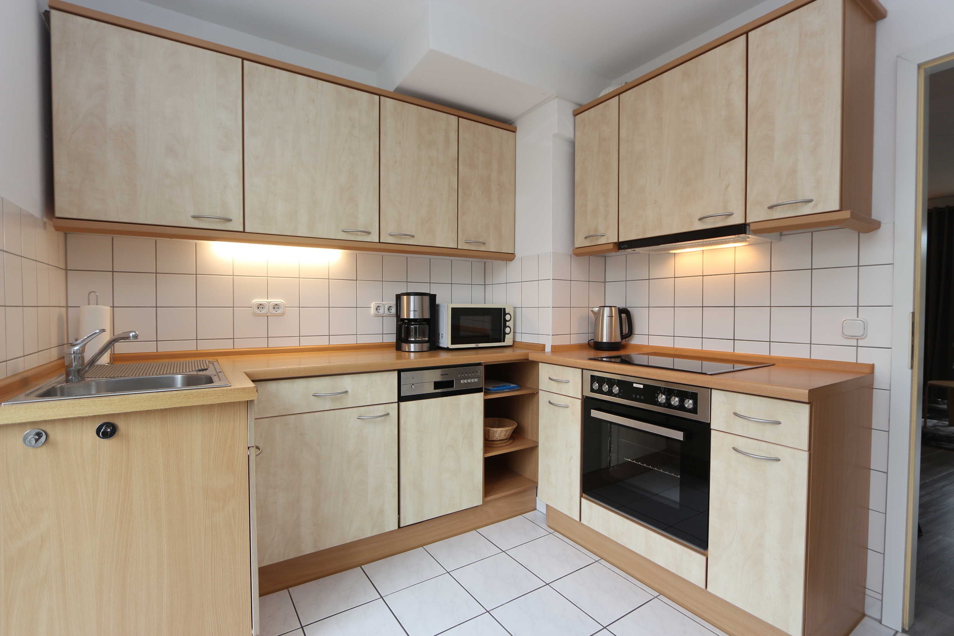 • Die Küche verfügt über eine Einbauküche inkl. Herd, Glaskeramikkochfeld, Spülmaschine, Eierkocher, Toaster, Filterkaffeemaschine sowie einer Nespressomaschine , Wasserkocher, Kühlschrank, Mikrowelle und reichlich Geschirr.