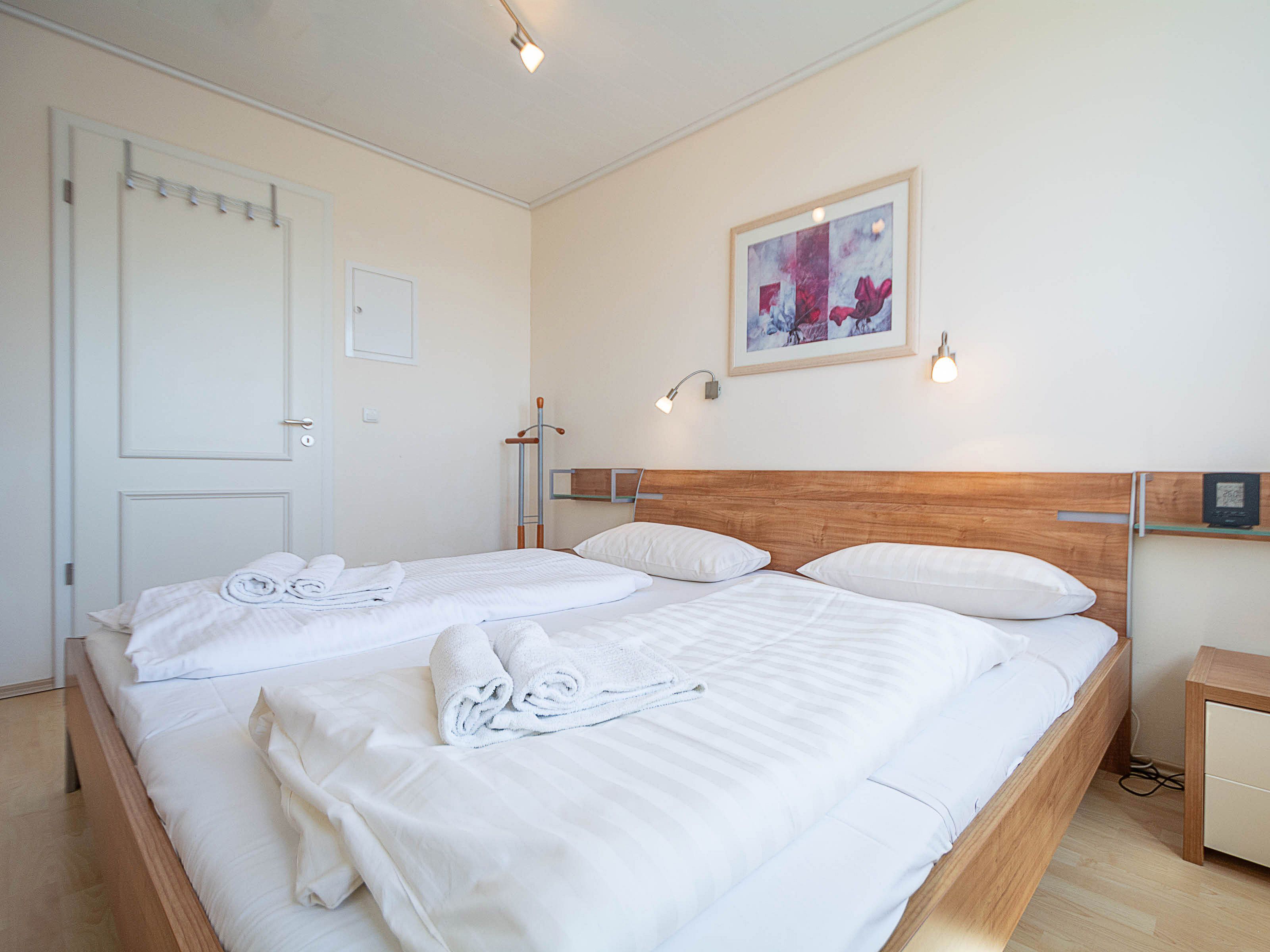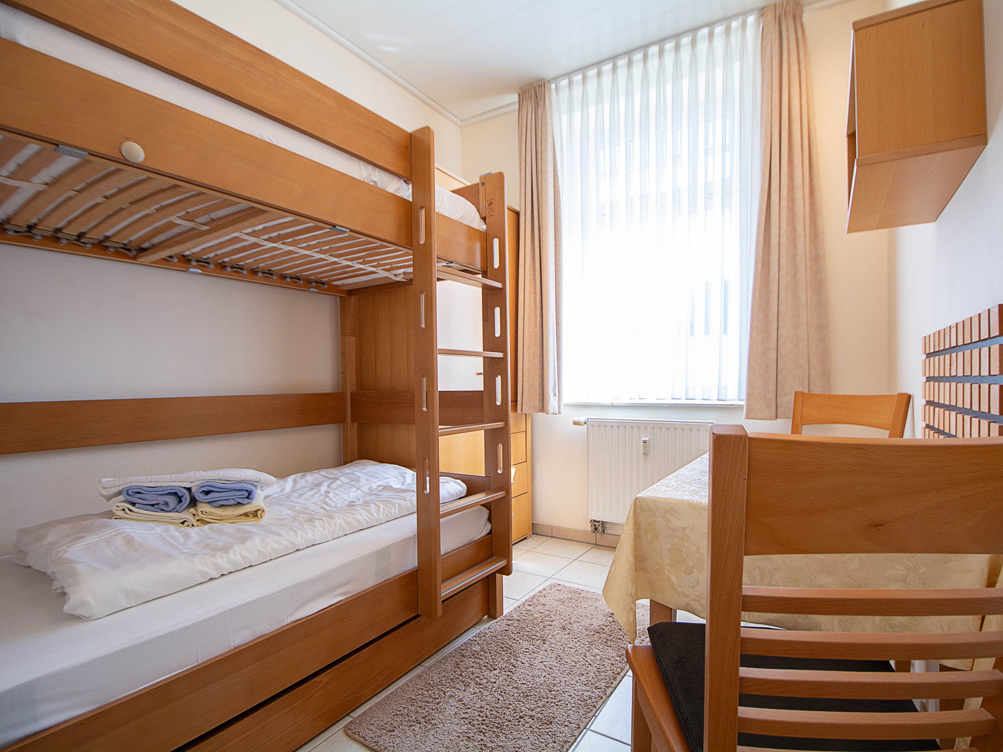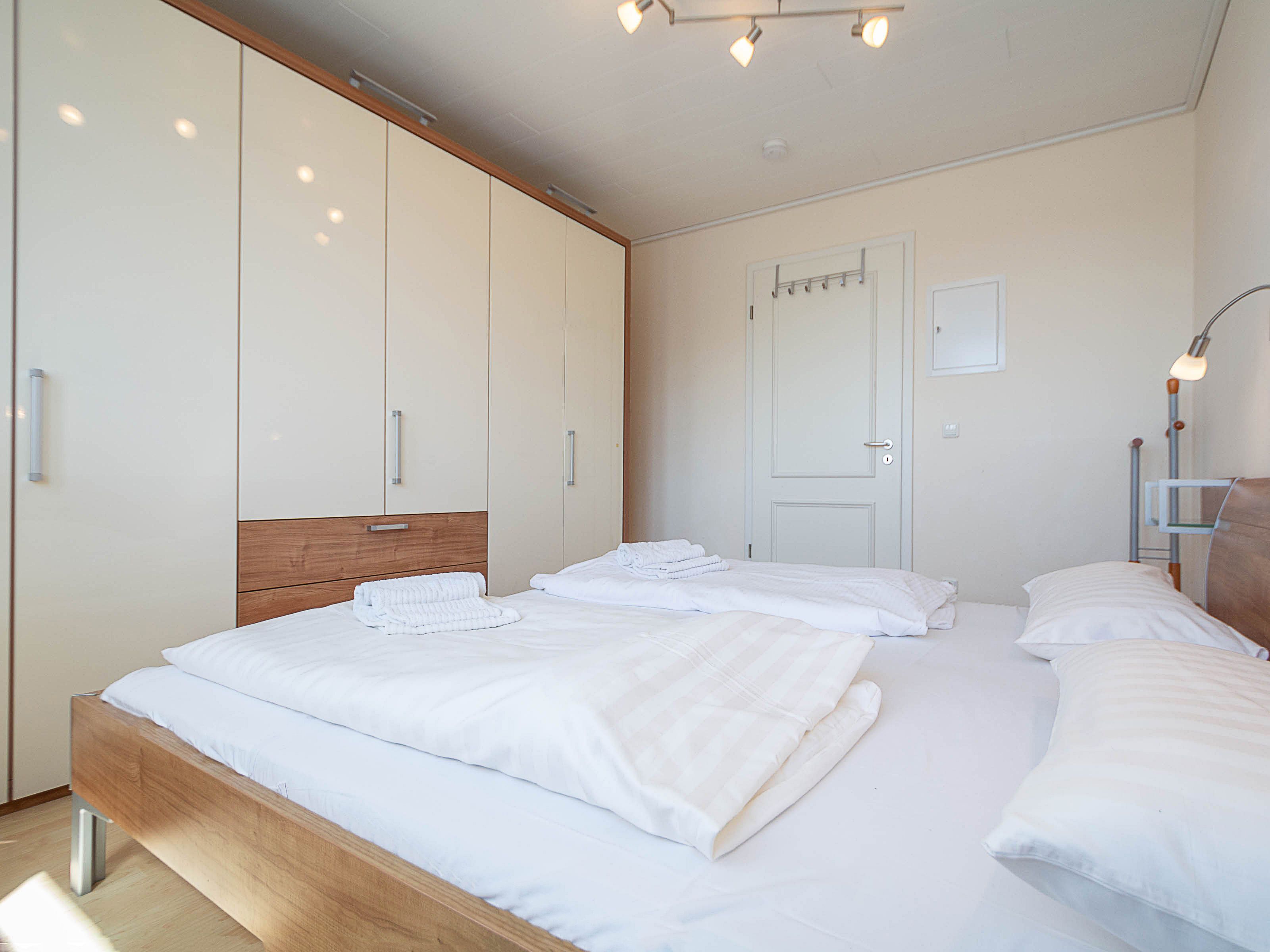 Im ersten Schlafzimmer lädt Sie ein komfortables Doppelbett (2 x 100cm x 200 cm) zur Nachtruhe ein. Der große geräumige Kleiderschrank bietet genügend Platz für Ihre Urlaubsgarderobe. Das zweite Schlafzimmer bietet Ihnen ein Doppelstockbett (2 x 90cm x 200cm), einen kleinen Kleiderschrank sowie eine Sitzecke. Als Sichtschutz bzw. zum Verdunkeln sind in den Schlafzimmern Gardinen und Verdunklungsvorhänge an den Fenstern angebracht.