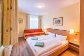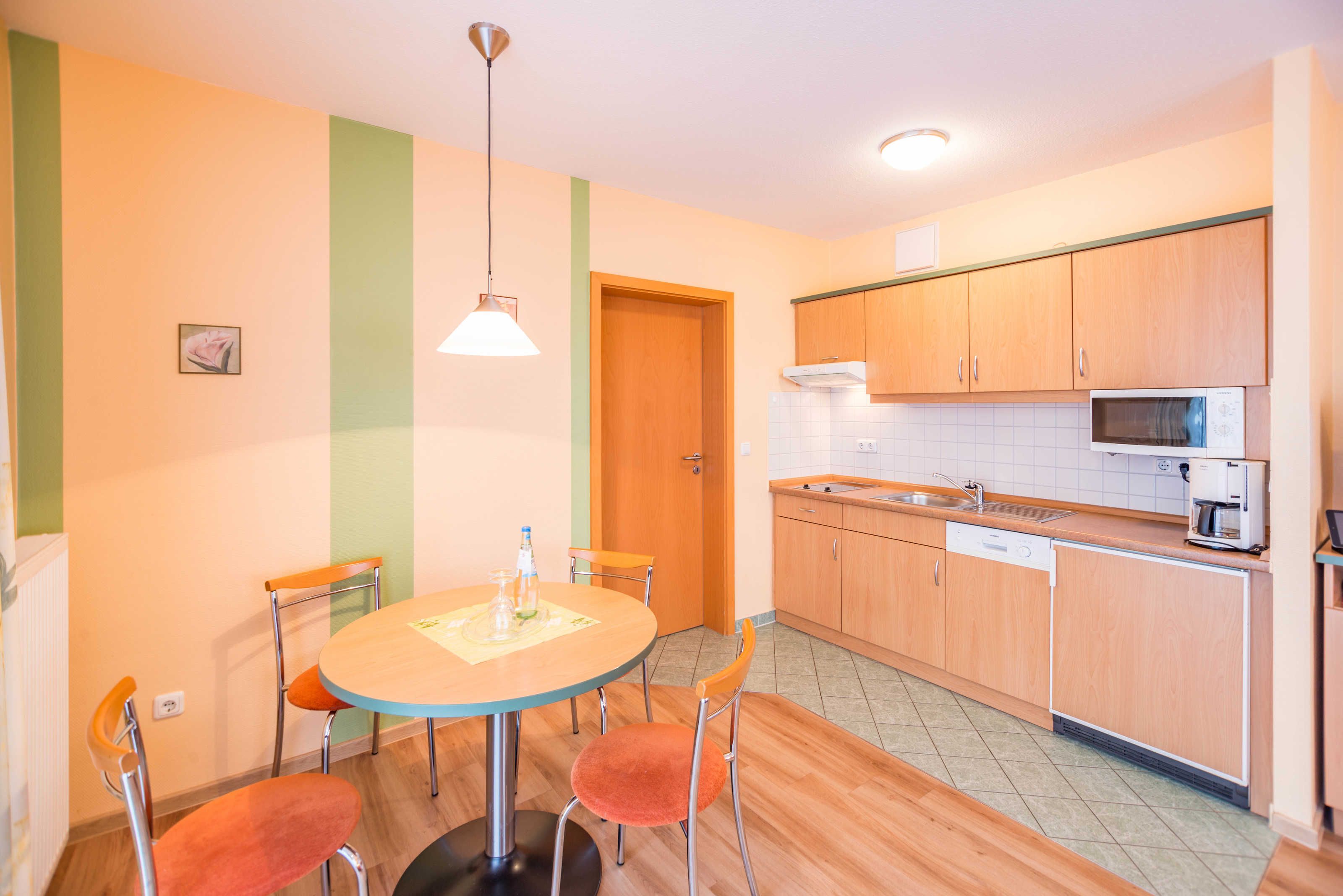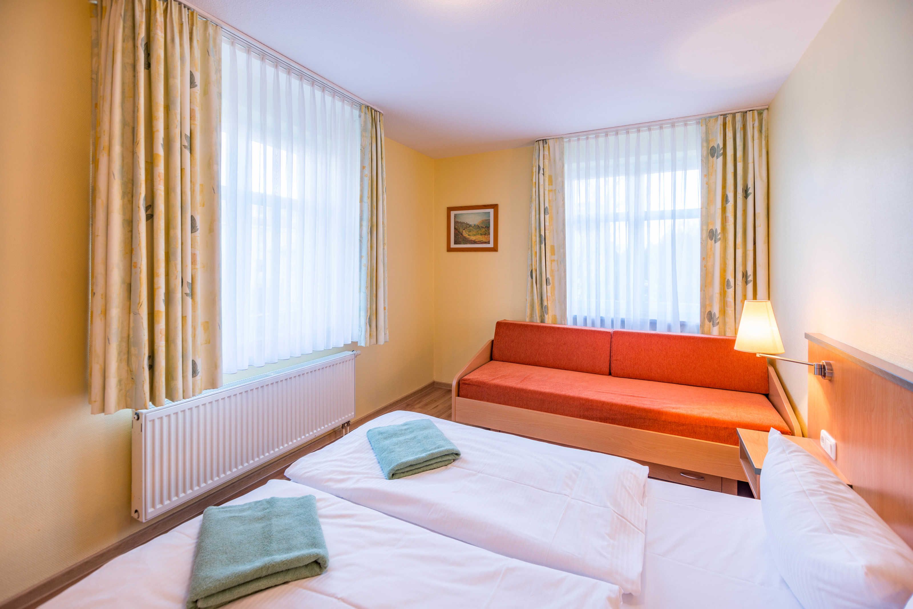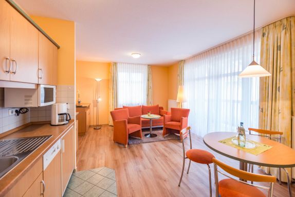 Das 2-Zimmer-Apartment mit Holzoptik-Boden befindet sich in der 1.Etage des Apartmenthauses Waldeck. Mit rund 50 m² Wohnfläche und einem Balkon zur Nordseite, besteht das geräumige Apartment aus einem Wohnzimmer mit Schlafcouch und einer voll ausgestatteten Küchenzeile mit Geschirrspülmaschine, Kühlschrank, Mikrowelle, Zwei-Platten-Cerankochfeld, Kaffeemaschine, Wasserkocher und einem Toaster. Das Schlafzimmer verfügt über ein Doppelbett und ein Einzelbett, darüber hinaus bietet es genügend Platz für ein Kinderbett. Im Badezimmer befindet sich eine Badewanne, ein Fön wird Ihnen zur Verfügung gestellt. Das Apartment ist für maximal 3 Erwachsene und insgesamt 4 Personen geeignet, auch Hunde sind gestattet.