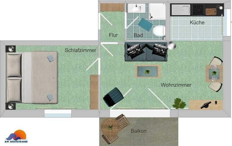 Am Weststrand Apartmenthaus Waldeck - 2-Zimmer-Apartment - B26
