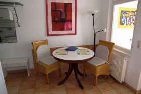 Die Appartements sind alle unterschiedlich in Zuschnitt und Einrichtung. - NICHTRAUCHERHAUS - Rauchen ist ausschließlich außerhalb des Hauses möglich. Auf der Hofseite befinden sich eine Gemeinschaftsterrasse mit Tischen und Liegestühlen sowie eine kleine Grünfläche mit einer Schaukel und Sandkasten für die kleinen Gäste. Eine Grillmöglichkeit steht Ihnen außerdem zur Verfügung, für die Nutzung bitten wir Sie sich mit anderen Mietern abzusprechen.