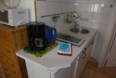 Die Pantryküche ist mit einen 2-Platten-Herd, Spüle, Kühlschrank, Kaffeemaschine, Wasserkocher, Toaster und Geschirr etc.). Badzimmer mit DU/WC.