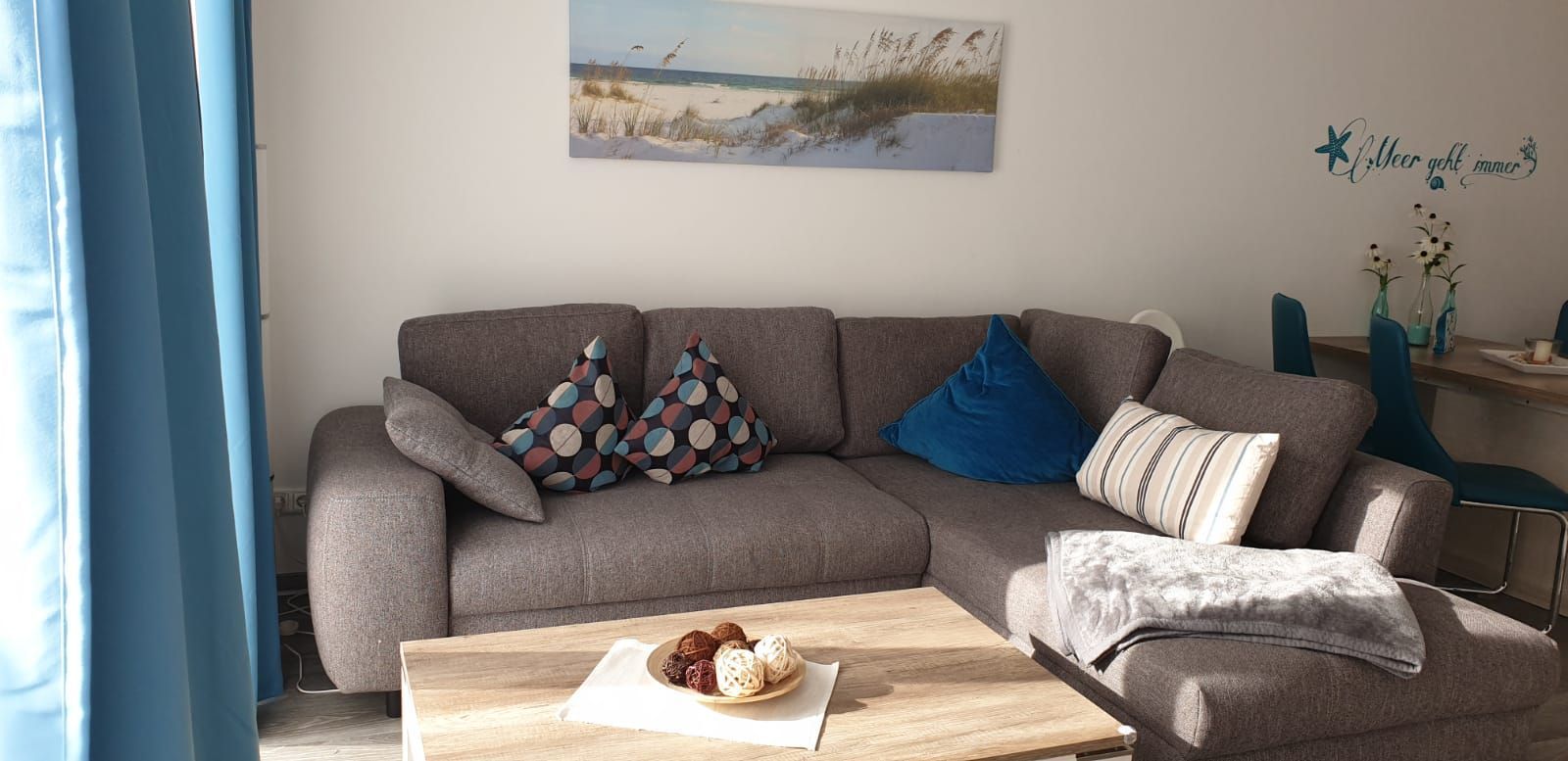 Im Erdgeschoss des Haupthauses befindet sich Ihr Urlaubsziel - Die Ferienwohnung Möwennest. Sie bietet als 3-Raum-Ferienwohnung auf insgesamt 65qm für 1-4 Erwachsene + max. 1 Kleinkind einen Wohlfühlraum, den Sie sich für Ihren Urlaub wünschen und bei uns bekommen.