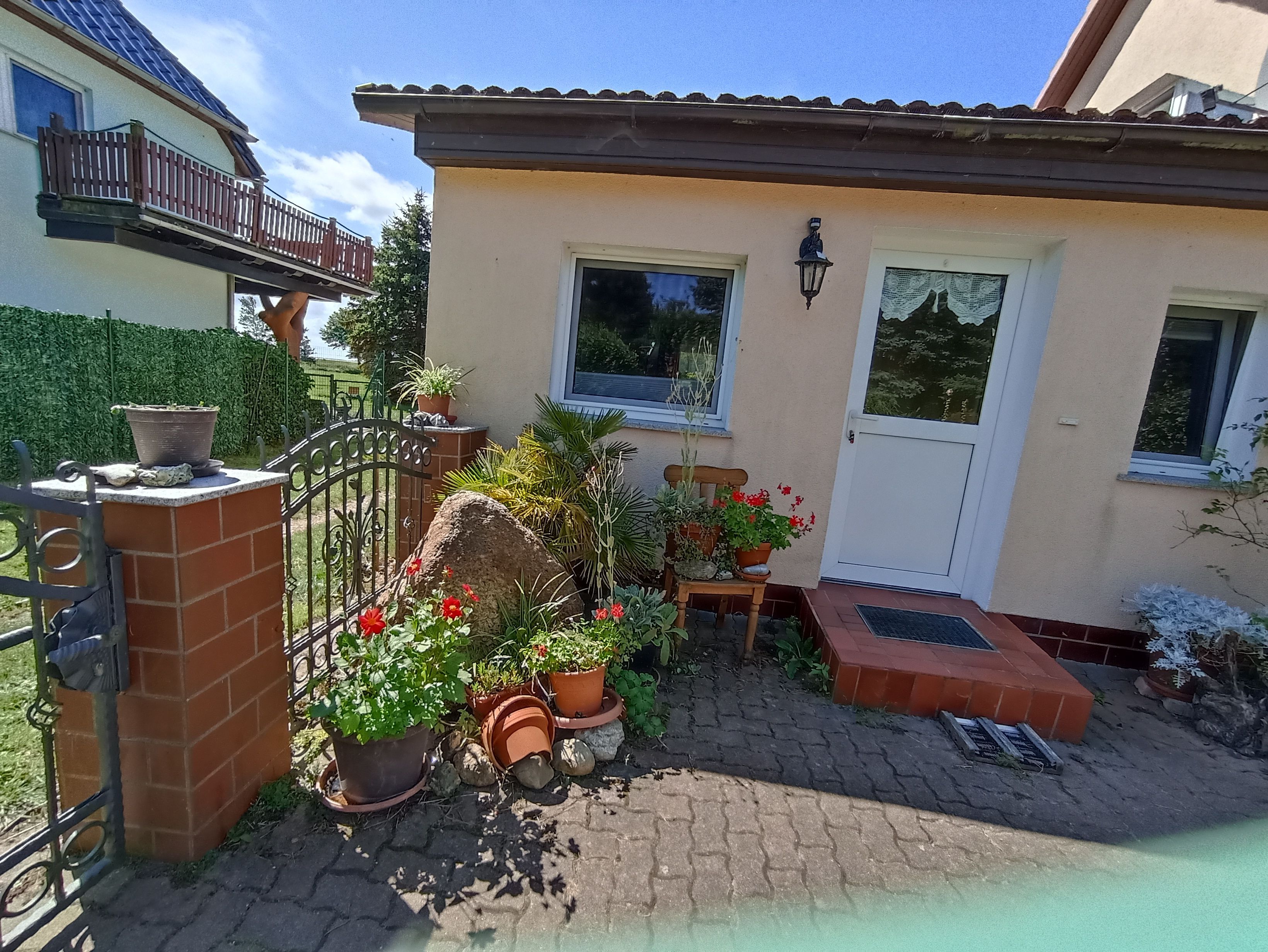 Wir bieten unseren Gästen eine Ferienwohnung (45 qm, ebenerdig, 1 Schlafraum,1 Wohnküche, 1 Bad) und ein Ferienhaus (83 qm, 3 Sterne, 1 Wohnküche, 3 Schlafräume, 1 Bad, 1 sep. Toilette), 1 sep. Dusche) -  ländlich ruhig gelegen mit  teilweisem Blick zum Wasser (ca. 400 m).