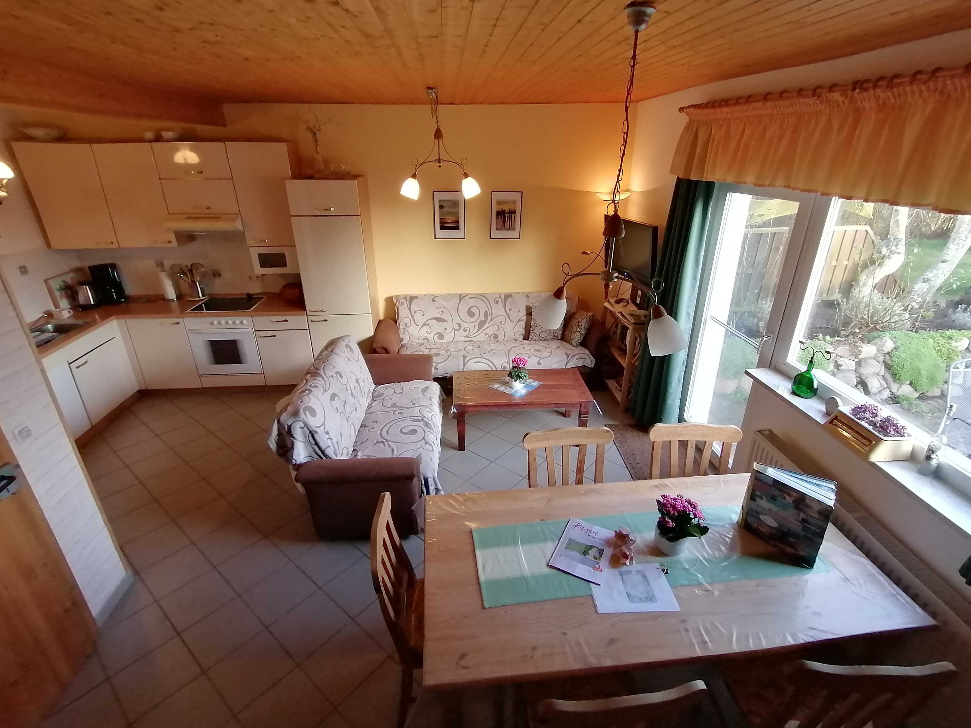 Das Ferienhaus ist gemütlich eingerichtet. Von der Wohnküche aus blicken Sie auf einen großen mit Liebe gepflegten Garten (ca. 350 qm). Hier befinden sich 2 Terrassen mit Grillmöglichkeit als auch ein kleiner Kinderspielplatz. Hier dürfen Ihre Kinder toben.