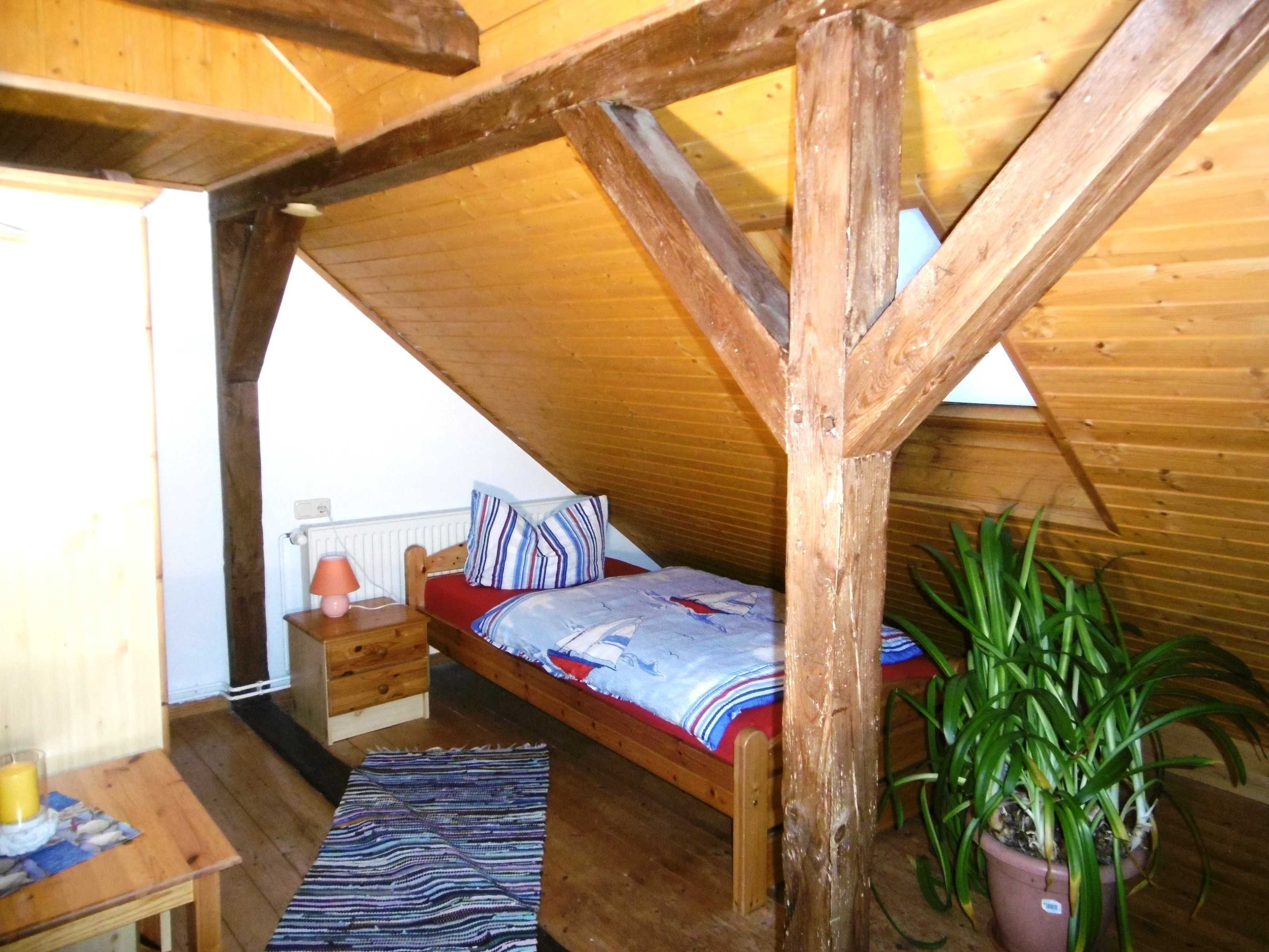 Das Ferienhaus (ca.83 qm) besteht aus 3 Schlafzimmern (ein Schlafzimmer mit einem Doppelbett, zwei Schlafzimmer mit zwei Einzelbetten) in der ersten Etage unter dem Dach. Hierhin führt eine Treppe.