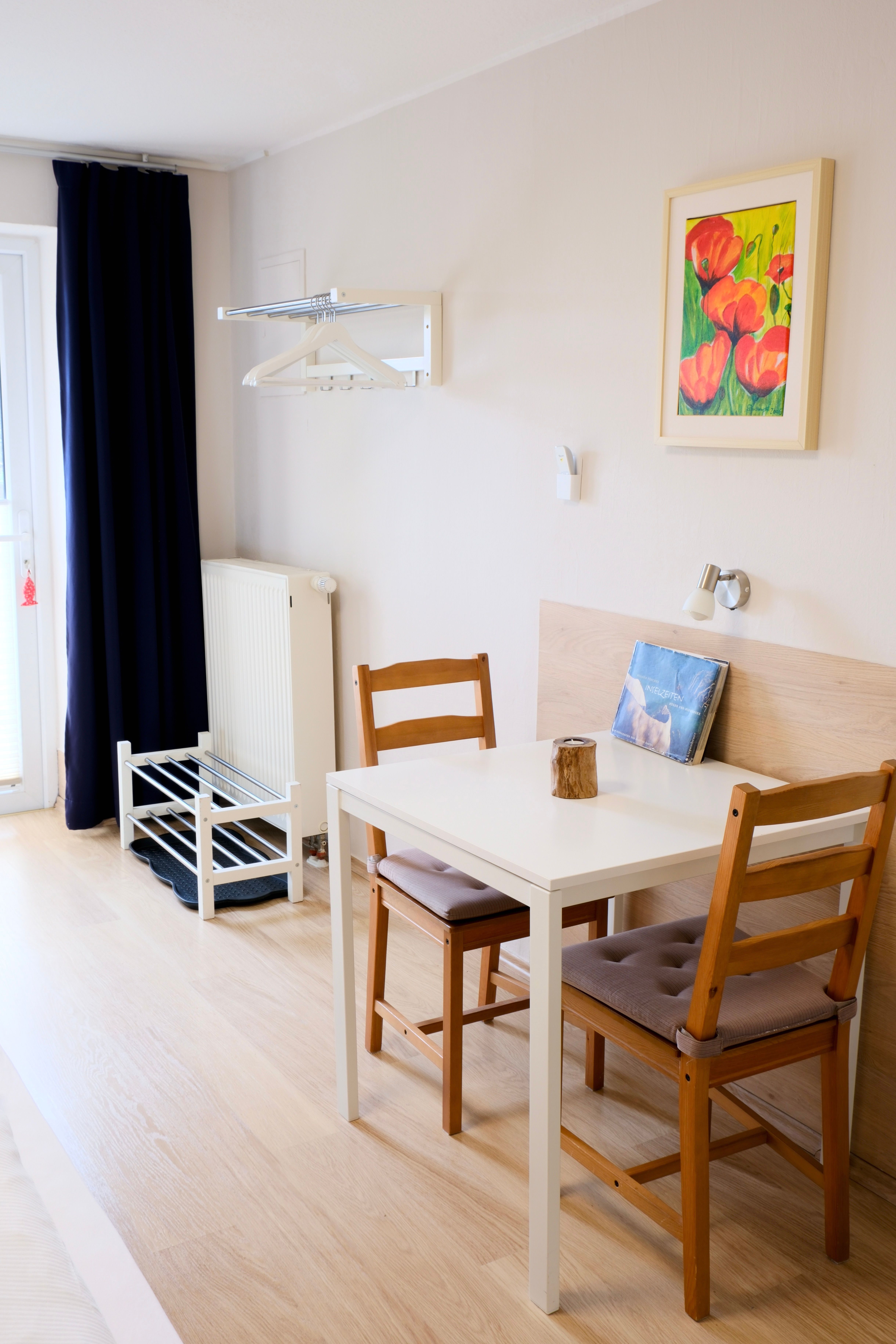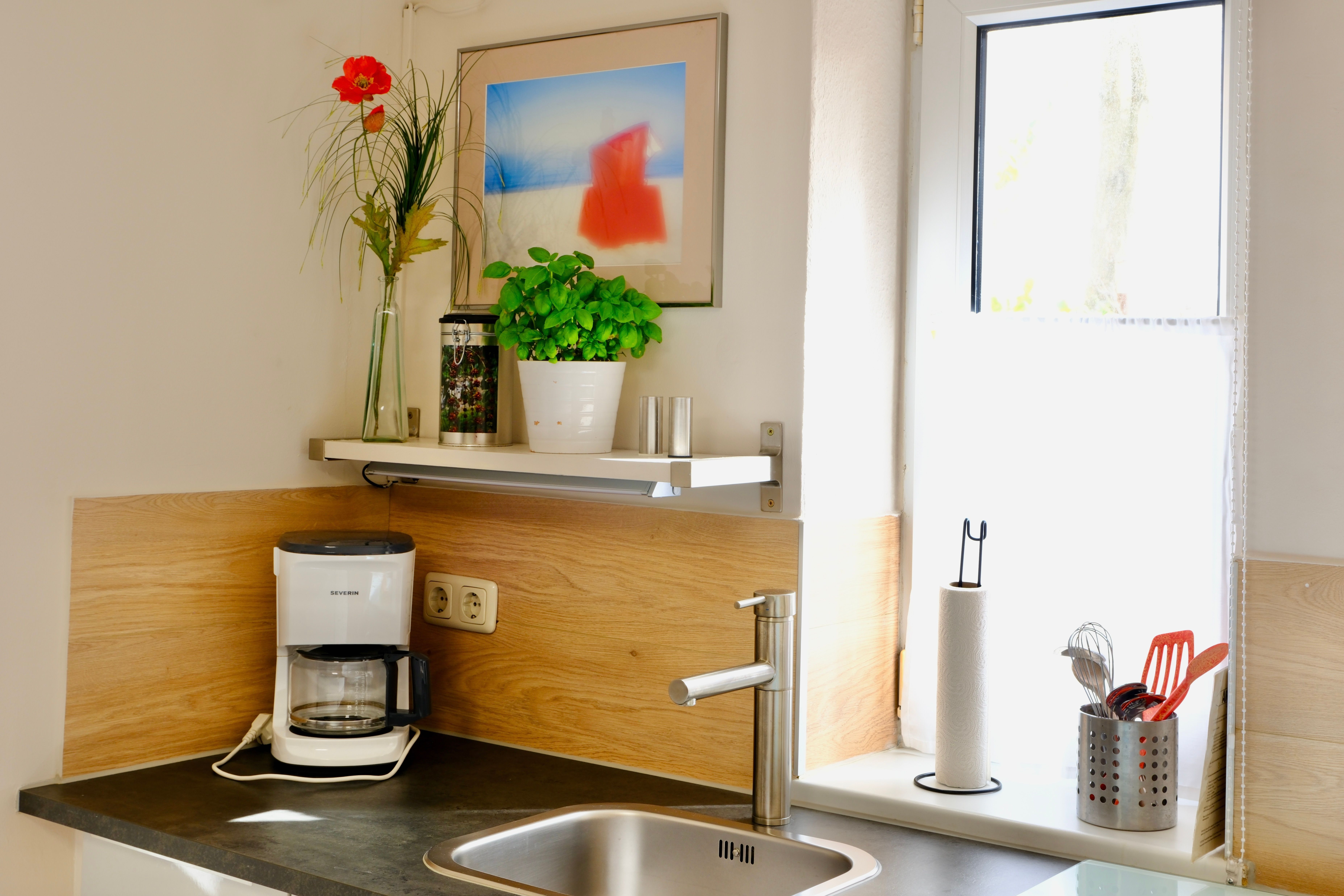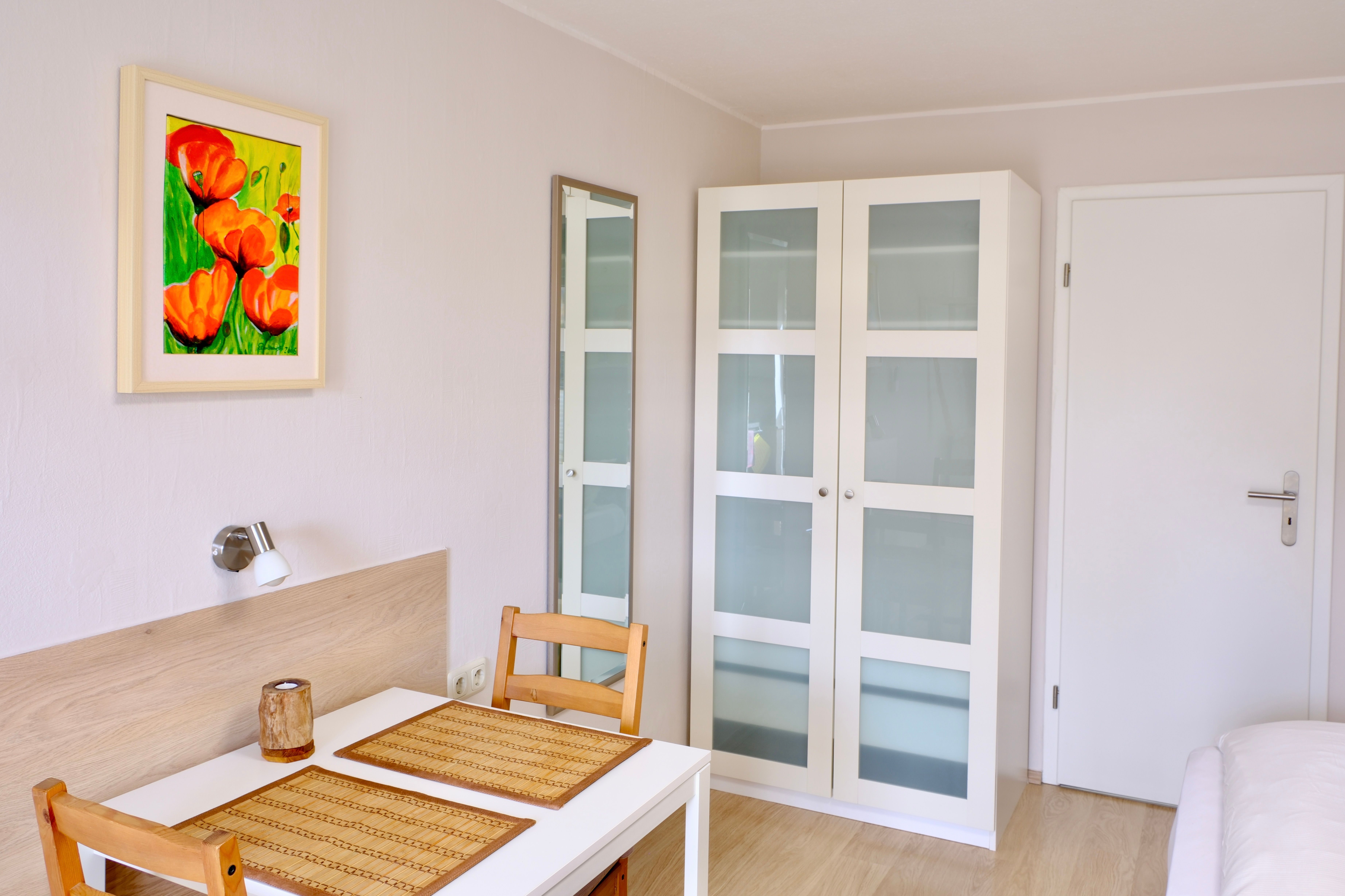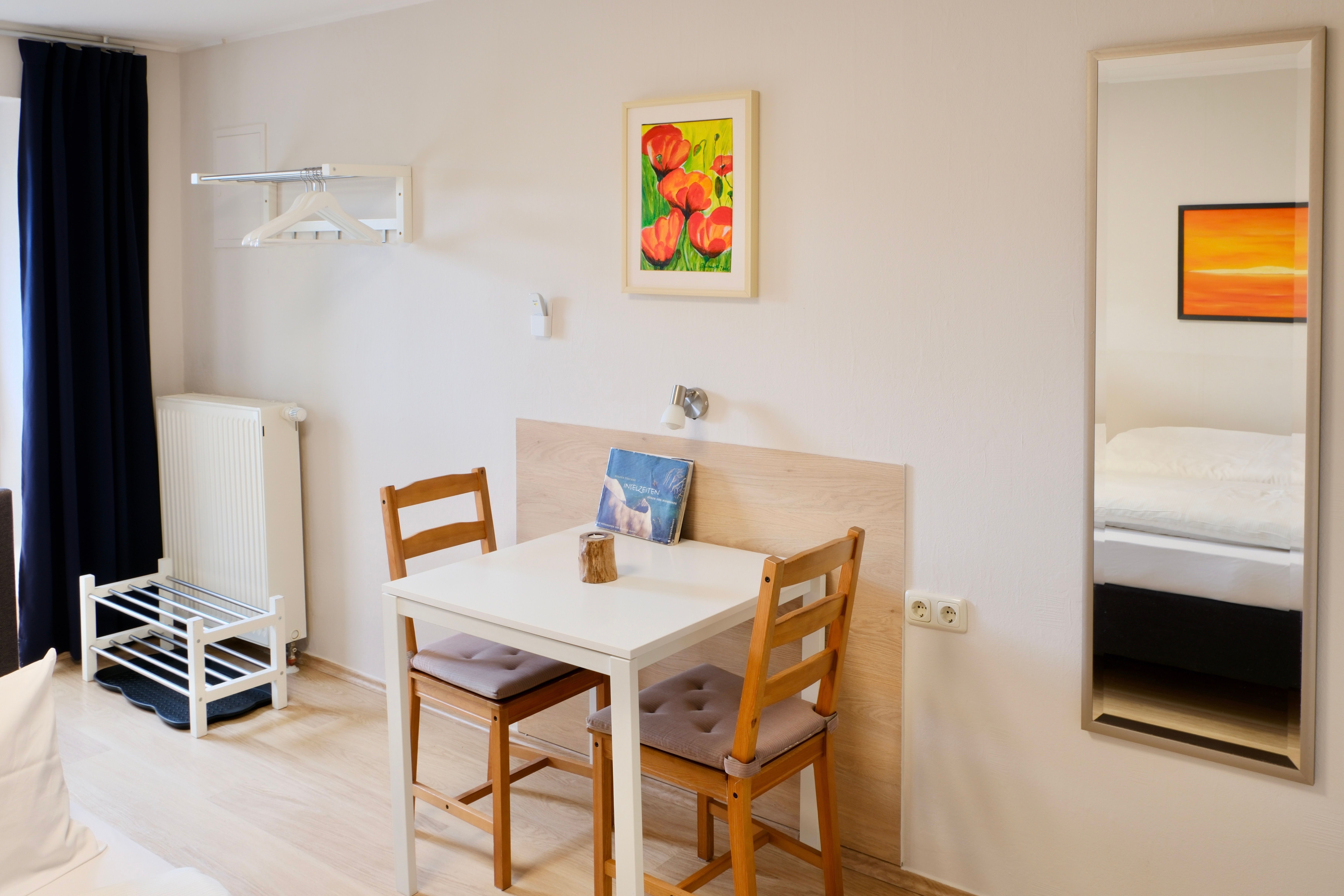 Das Studio Klatschmohn ist eine 20 qm große 1-Raum-Wohnung für 1 - 2 Personen und besteht aus einem kombinierten Wohn-/Schlafraum mit integrierter Küchenzeile, Bad, Terrasse (8 qm).