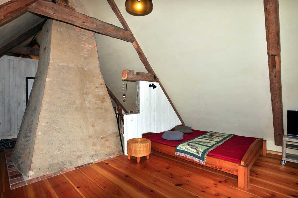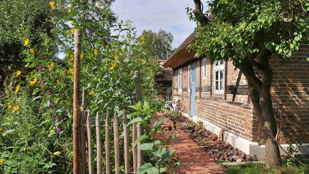 Das Kolonistenhaus aus der Zeit Friedrich des Großen ist zusammen mit Stallgebäude und dem Obstgarten als Ensemble unter Denkmalschutz gestellt und wurde von 2014 bis 2016 mit viel Liebe zum Detail und konsequent baubiologisch saniert. Die Lehm- und Kalkputze an den Wänden, das temperaturausgleichende Reetdach und die Wärmedämmung mit Hanfwolle sorgen für ein sehr ausgewogenes Raumklima.