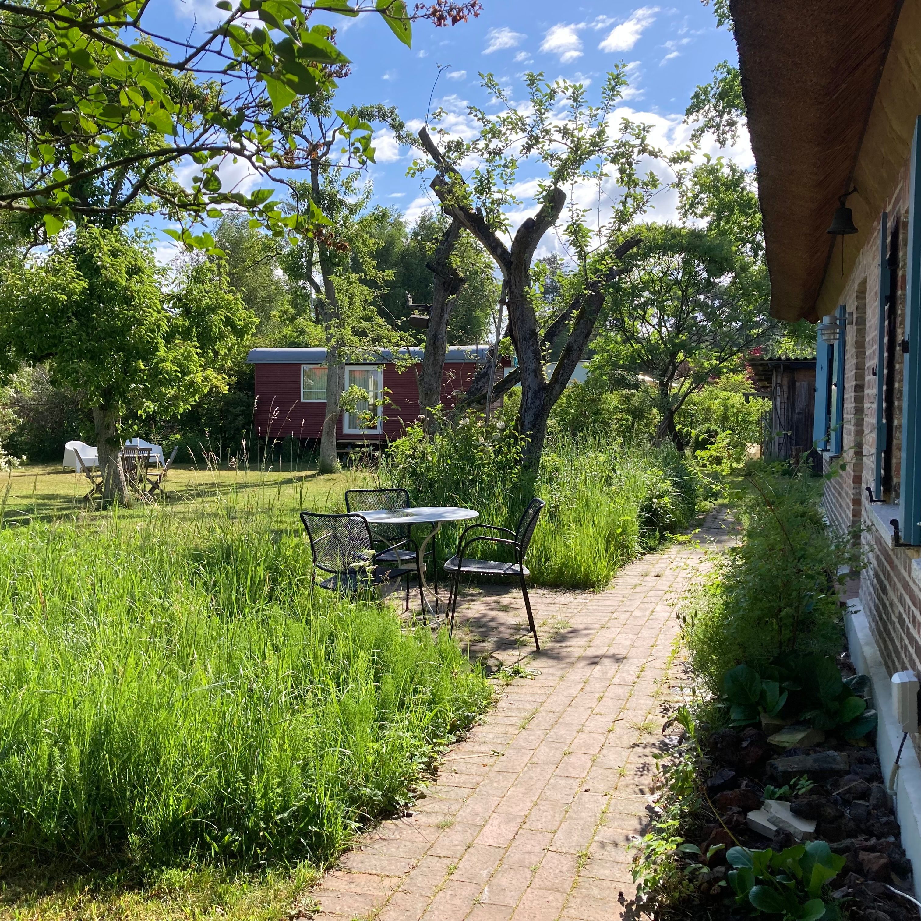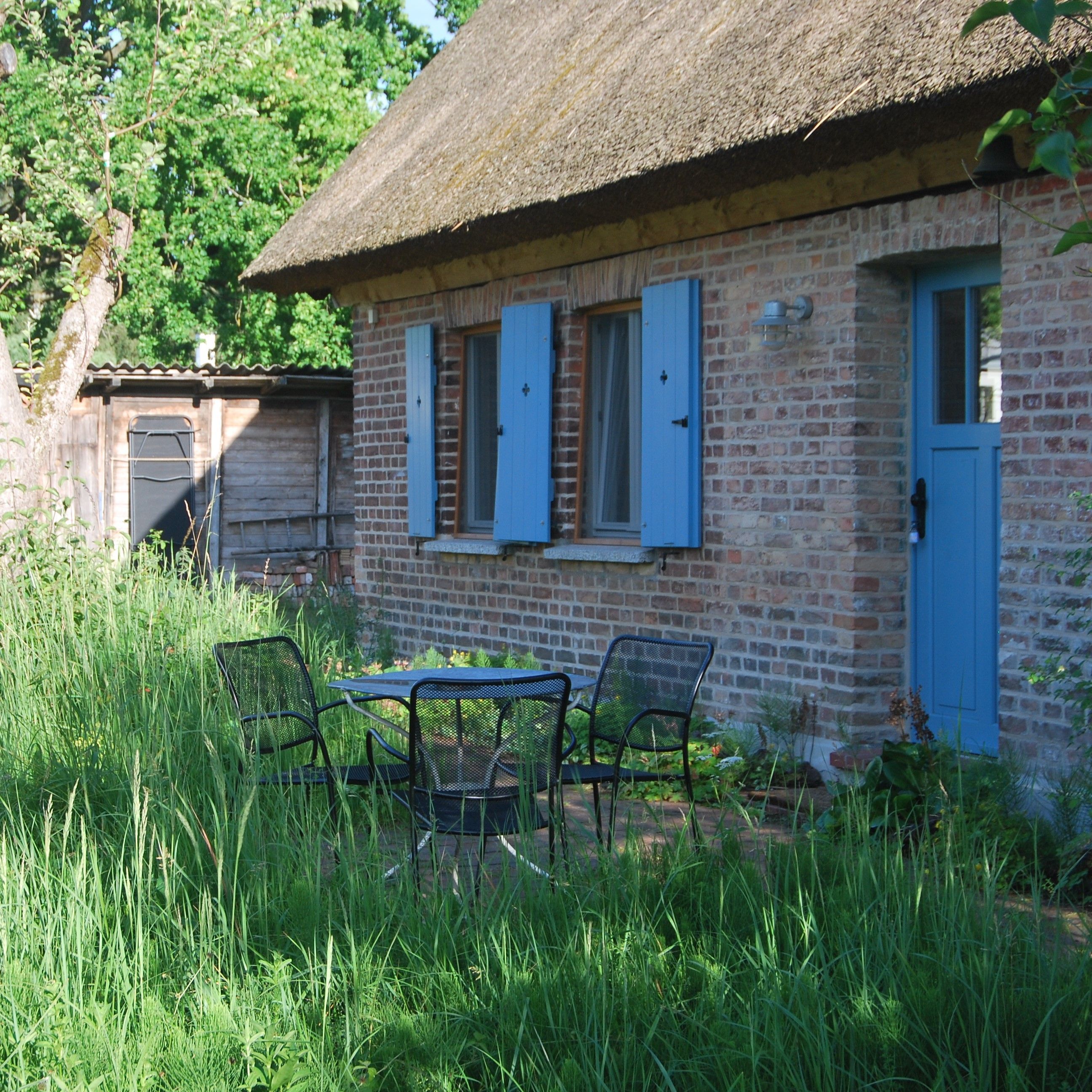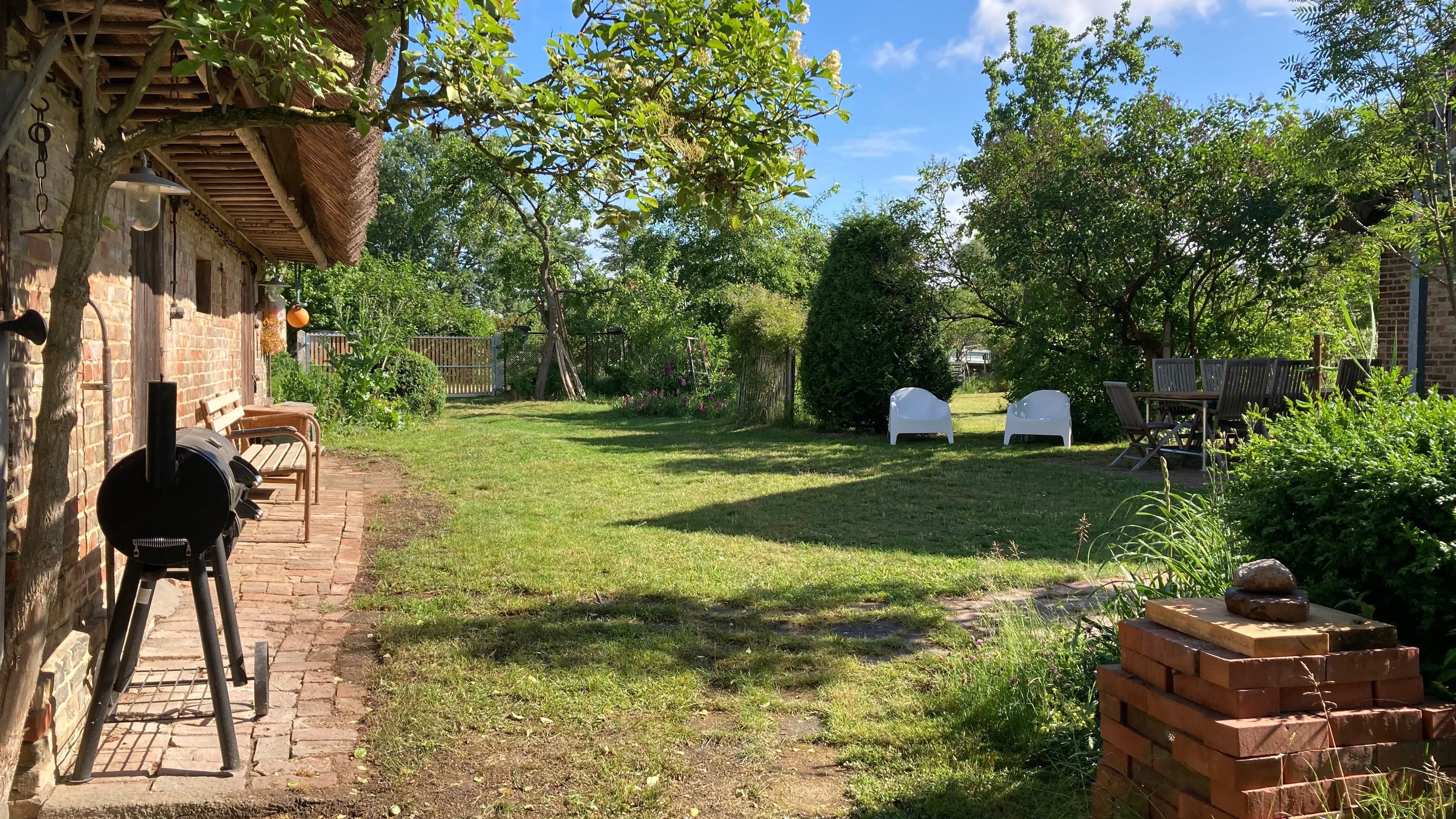 Reetgedecktes Bauernhaus mit großem Obstgarten und direkter Nähe (2 min.) zum Haffstrand. Hier können bis zu 6 Erwachsene und 2 Kinder bis 7 Jahre ihren traumhaften Urlaub verbringen.