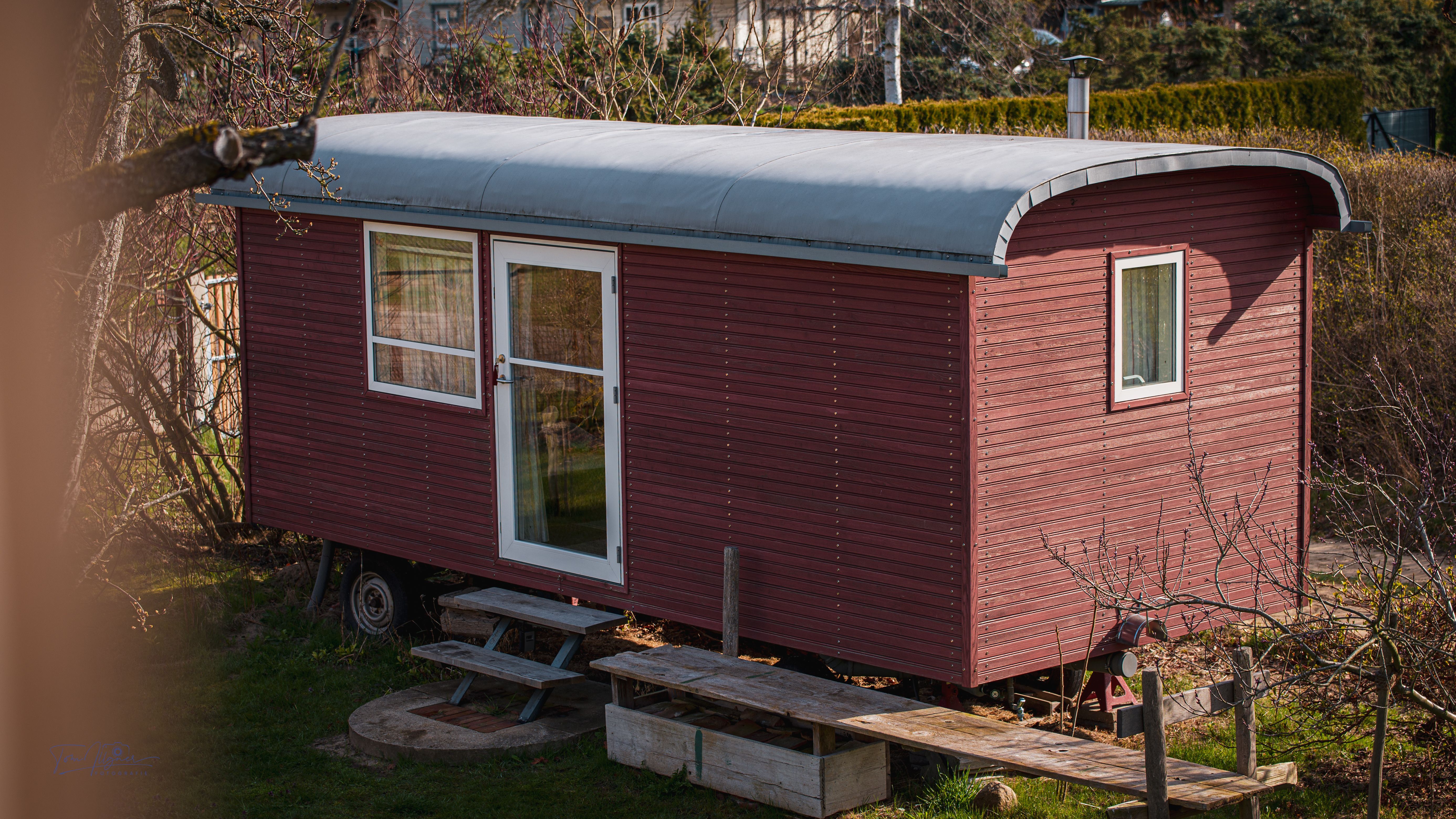 Ergänzend zum Ferienhaus können wir Ihnen noch einen schwedenroten Bauwagen als Übernachtungsmöglichkeit für 1-2 Personen anbieten. Der Wagen ist komplett saniert und steht im Garten unter alten Obstbäumen.