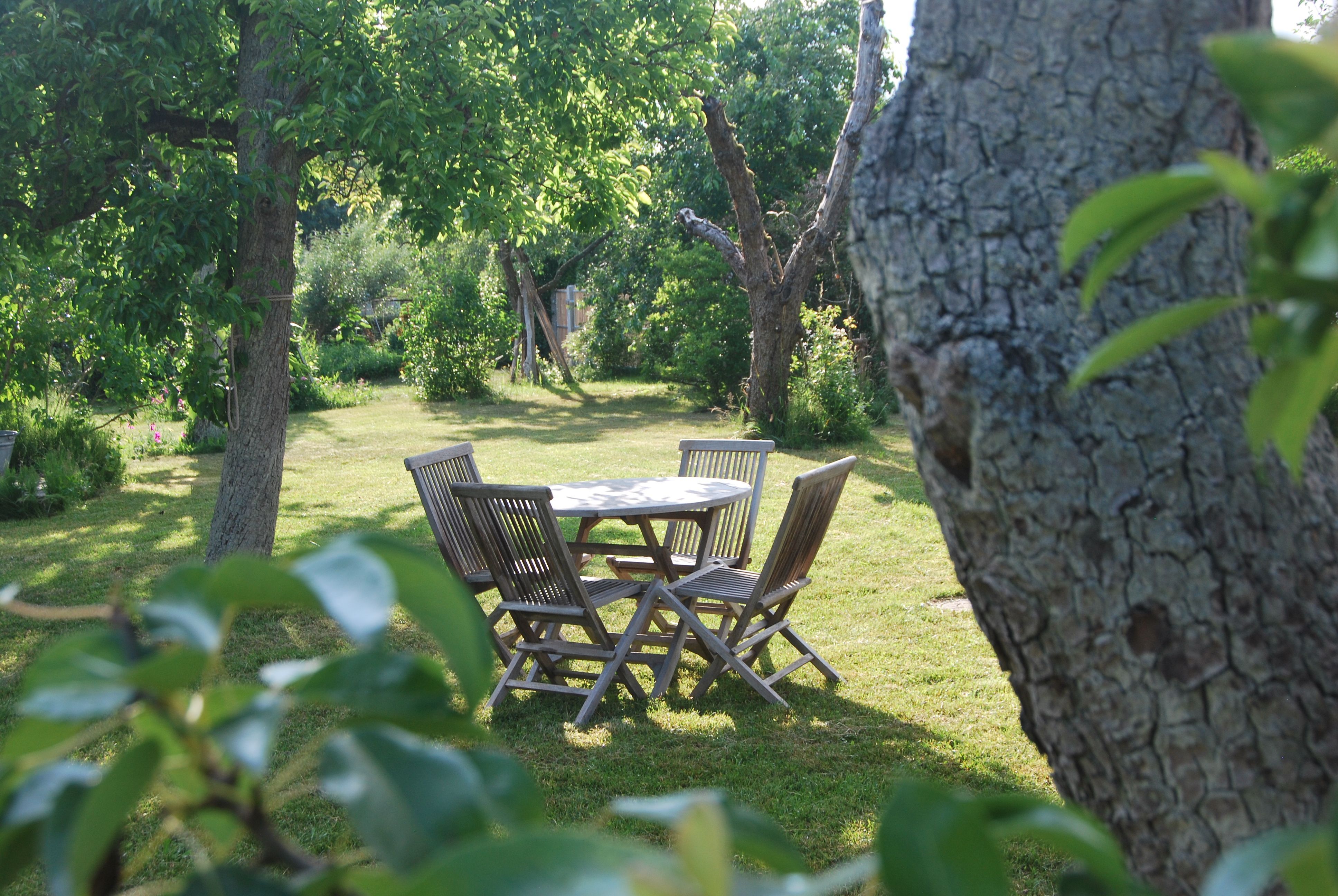 Der Bauwagen ist komplett saniert und steht im Garten unter alten Obstbäumen. Auf 14 qm finden sie allen Komfort: ein Doppelbett (160x200), eine Küchenzeile mit Kühlschrank, Wasserkocher, Doppelherdplatte sowie ein kleines Bad mit Dusche und WC.