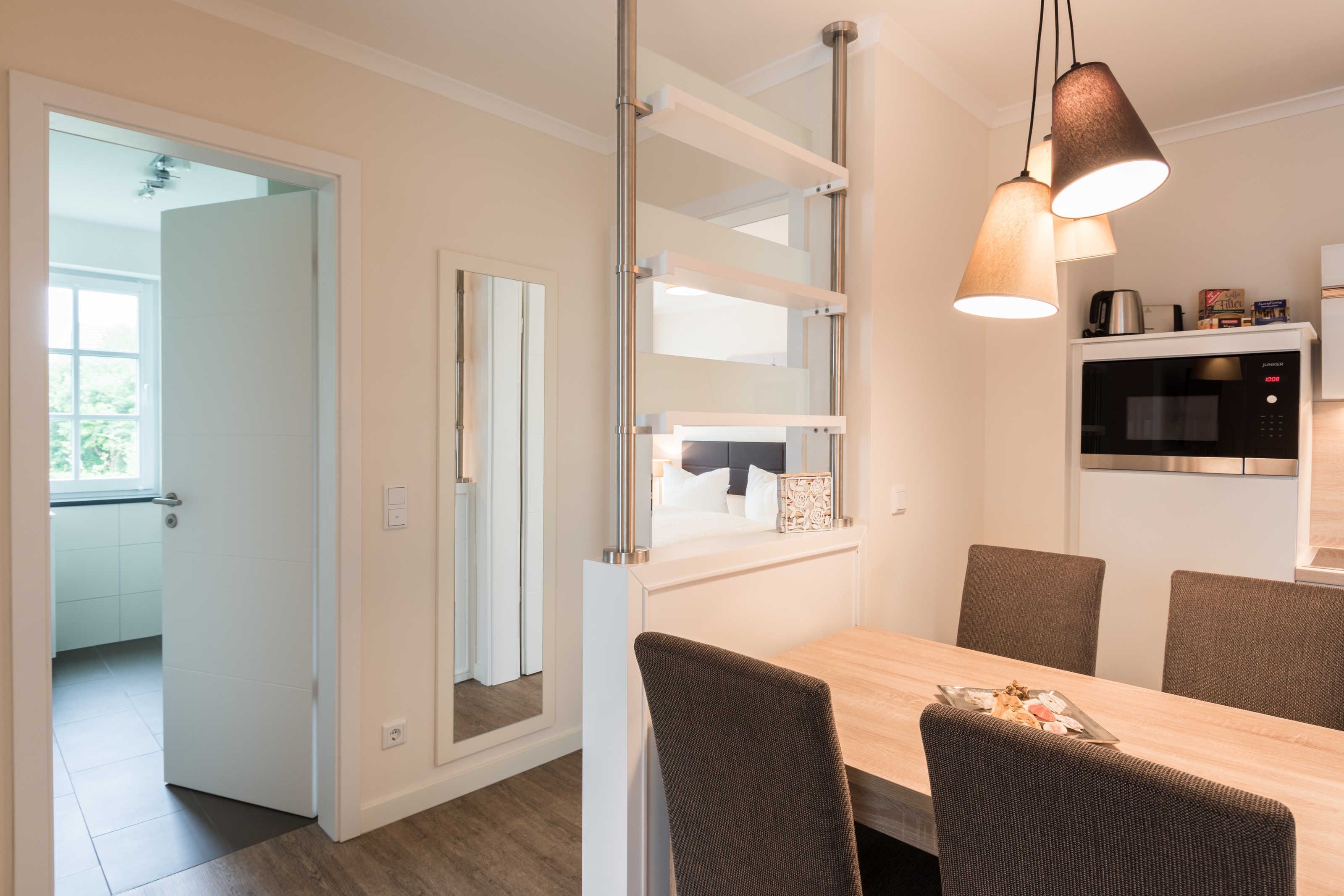 Neubau und Erstbelegung 2017! Die Wohnung bietet für vier Erwachsene ausreichend Platz und befindet sich im Erdgeschoss. Das Apartment verfügt über 1 Wohnzimmer und 2 Schlafräume. Die gut ausgestattete Einbauküche verfügt über einen großen Geschirrspüler, Kühlschrank mit Gefrierfach, Cerankochfeld, und eine Mikrowelle mit Grillfunktion.